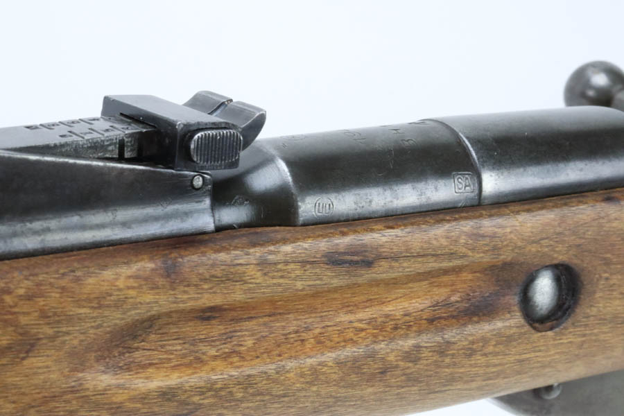 09/18/2024 – For sale is a rare Izhevsk M38 Mosin Nagant that was captured by the Finnish Army during the Continuation War. The M38 rifles were not as prevalent on the front lines and were not captured as much as 91/30 rifles, especially when the front lines of the Continuation War became an entrenched standstill. The carbine is in good condition overall with the metal finish greying with age. The stock had been sanded sometime in its life. The carbine has a Finnish-matched bolt but the magazine and butt plate are original matching to the barrel shank. The bore is fairly bright but is getting darker. The SA in a Box stamp is on the left side of the barrel shank.