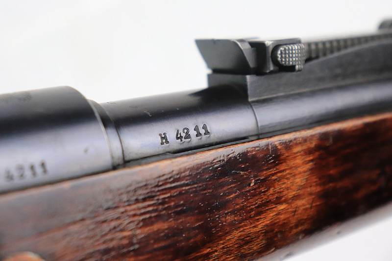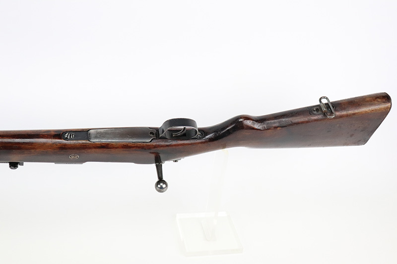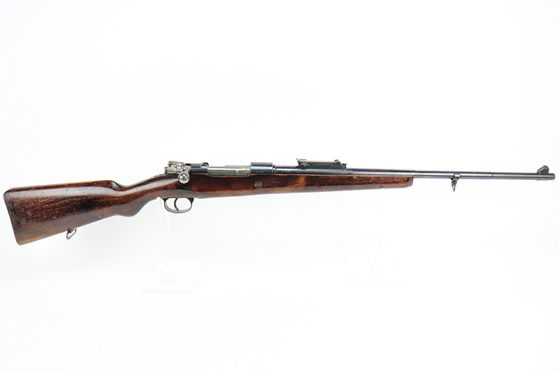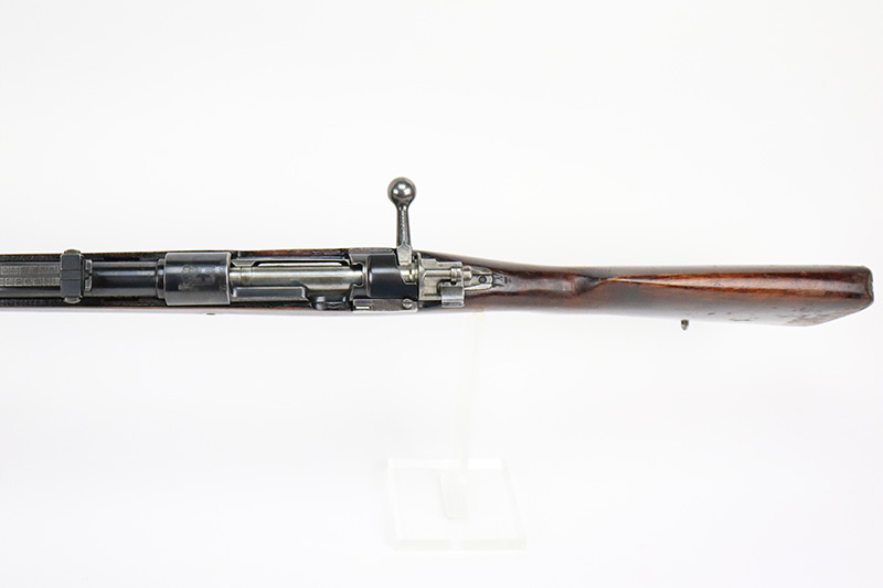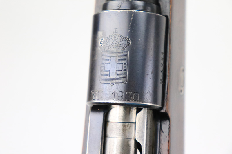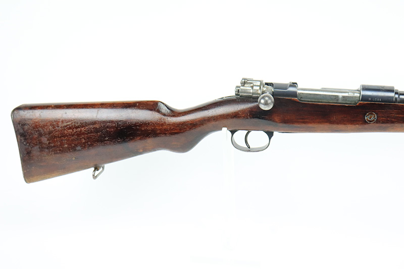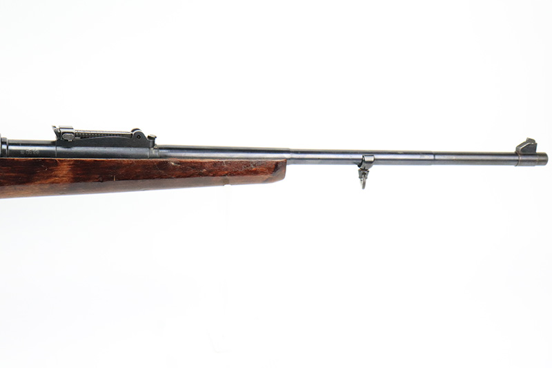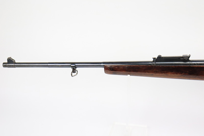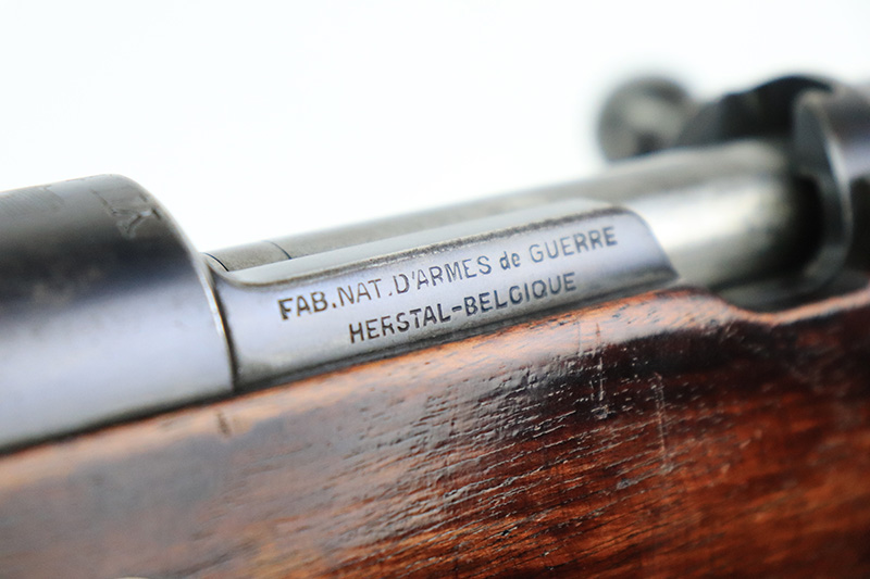 8/29/22 – This is a very nice example of a FN Model 1930 rifle from the Greek contract. After World War I, FN manufactured Model 30 rifles whose design was derived from Mauser 98 style rifles. Due to a need for rifles between the World Wars, Greece ordered approximately 75,000 of these rifles from FN between 1930 and 1939. These rifles then were utilized during the Greco-Italian War, the German invasion, and the Greek resistance. When Germany invaded Belgium, some of the Greek contract model 30’s were captured and utilized before they had been shipped to their final destination. Greek model 30’s were also captured and then utilized by German forces after Germany’s invasion of Greece. These particular rifles are very difficult to find today. This particular example is in very nice condition overall. The blued finish of the barrel and receiver is in very nice condition showing only minor thinning/finish loss here and there. The butt plate, bolt catch, and the top of the chamber are the most notable patches of finish loss. There is minor oxidation throughout, most notably along the barrel near the muzzle, the bolt handle, trigger guard assembly, floor plate, and rear sling swivel. The wooden stock of the rifle has been sporterized, sanded, and treated. There are no identifying markings along the stock and, other than general characteristics being correct, no way of identifying it as the rifles original stock. The stock has handling wear throughout with dings in the wood here and there. The barrel has a swing swivel attachment that was added by a previous owner. The bore shows strong rifling but frosting throughout.