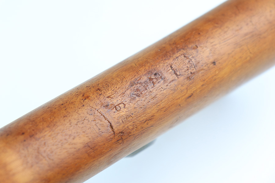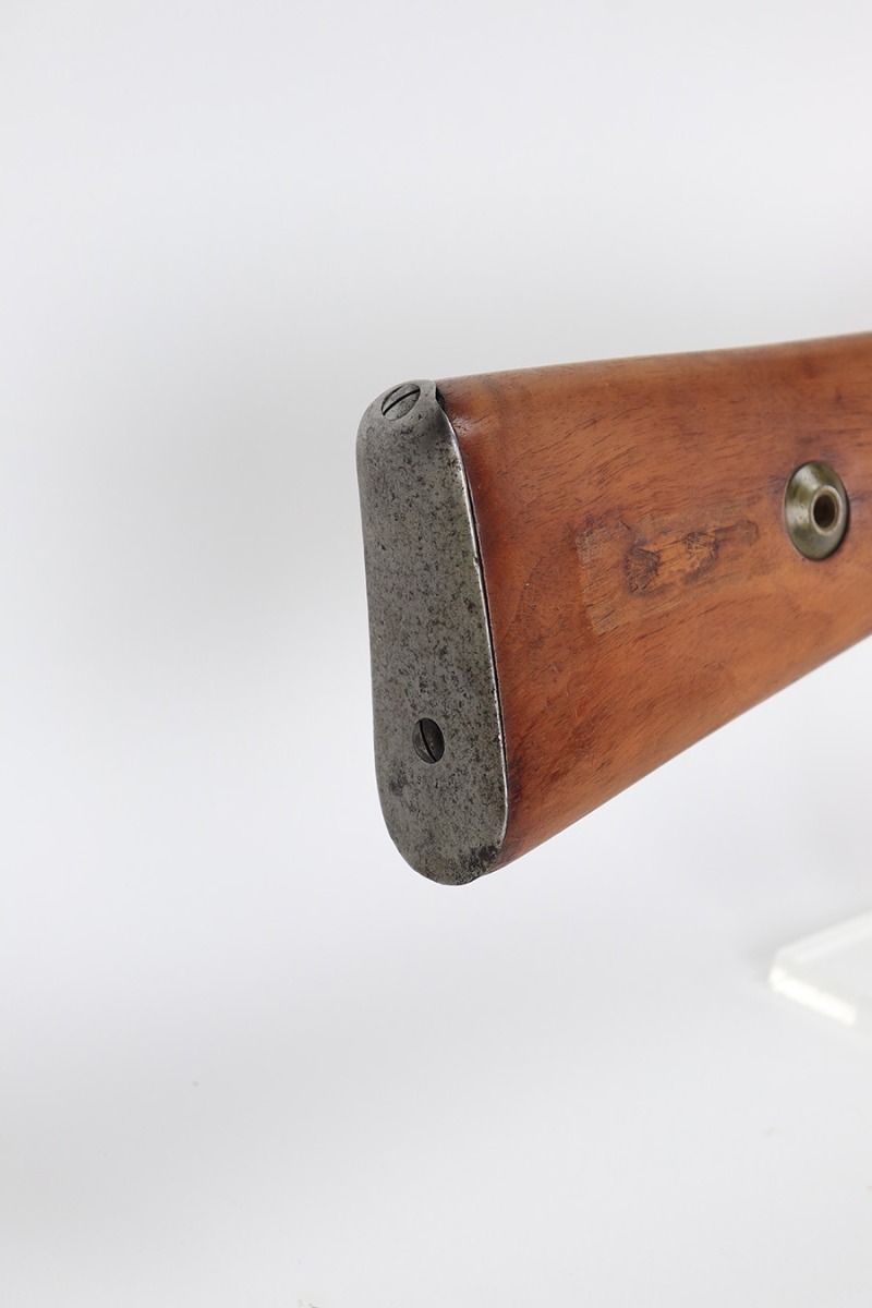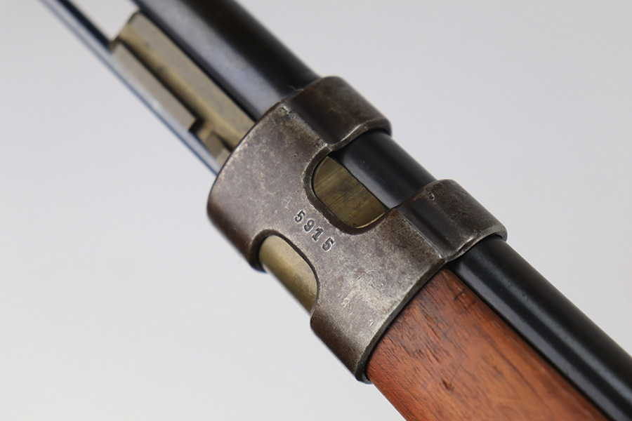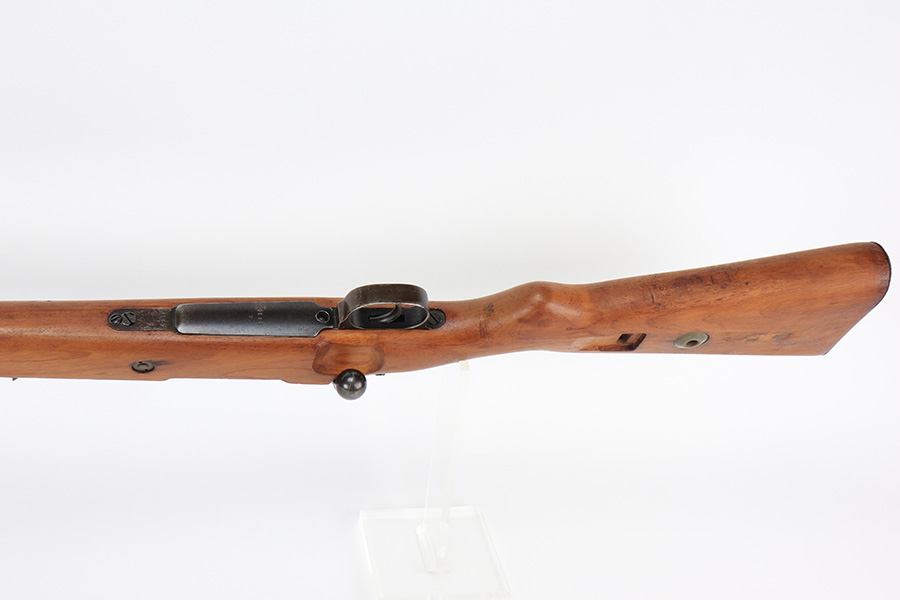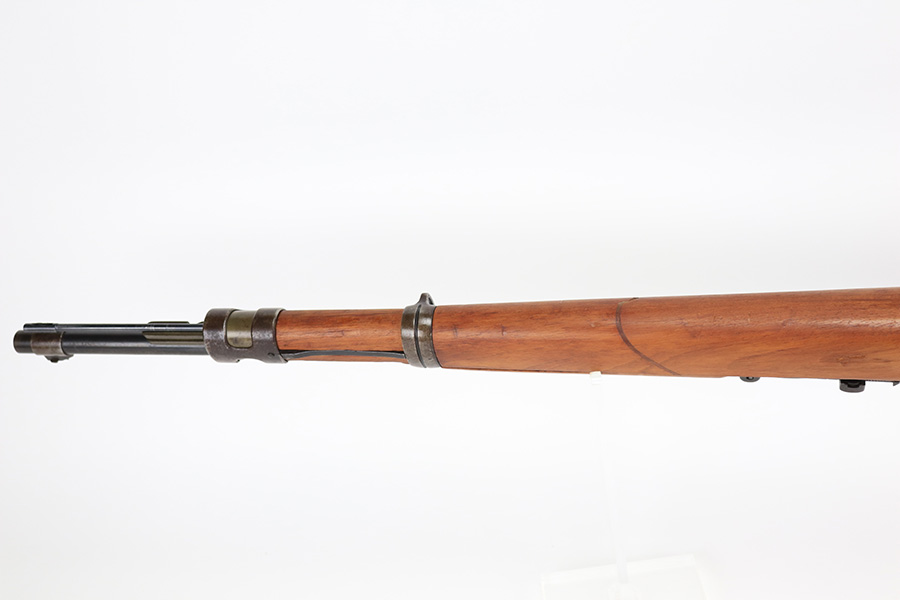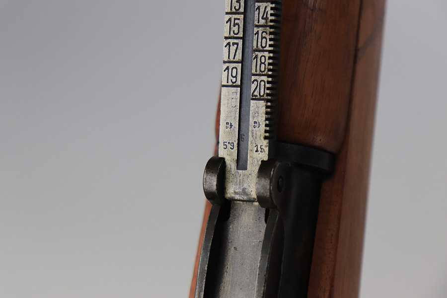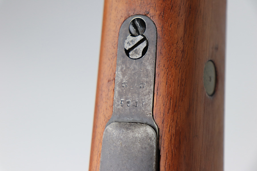 3/22/22 – This is a scarce G Date Mauser K98 rifle from 1935 with S/42G coded receiver. The rifle is matching and original throughout, all the way down to the screws. Matching serial numbers on the stock, buttplate, bands, rear sight, full trigger assembly, follower, full bolt assembly, receiver, barrel, etc. Very good, original bluing on the receiver and barrel, with most of the finish wear on the bands and trigger group. The stock does have a clearly visible armorer’s repair, and has been sanded. Our guess is the sanding was done by a previous collector as they specifically avoided sanding the areas with inspection markings and serial numbers. It’s rough and untouched in those areas, but smooth due to the sanding otherwise. Bore has strong rifling but some frost throughout.