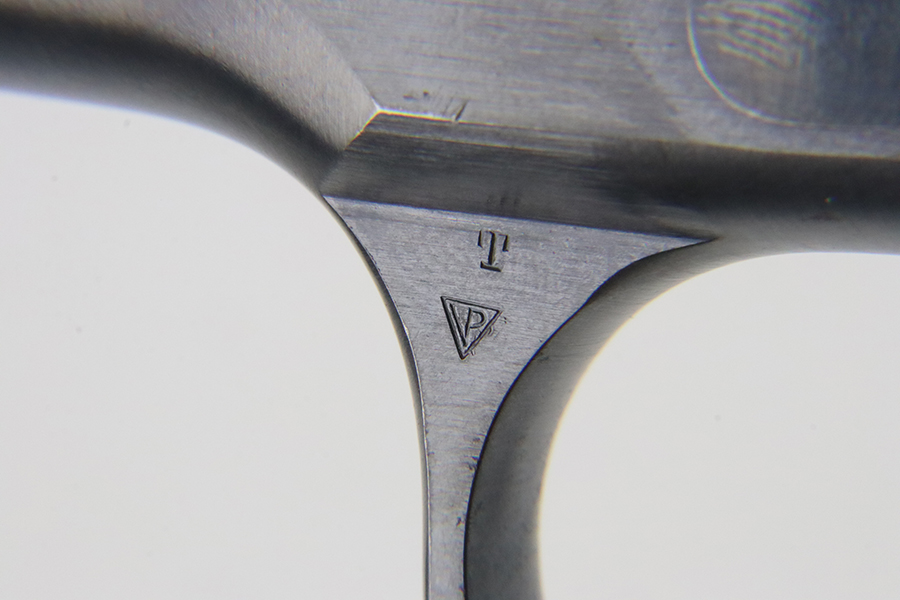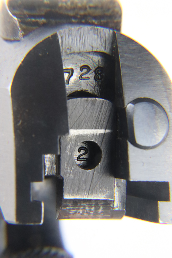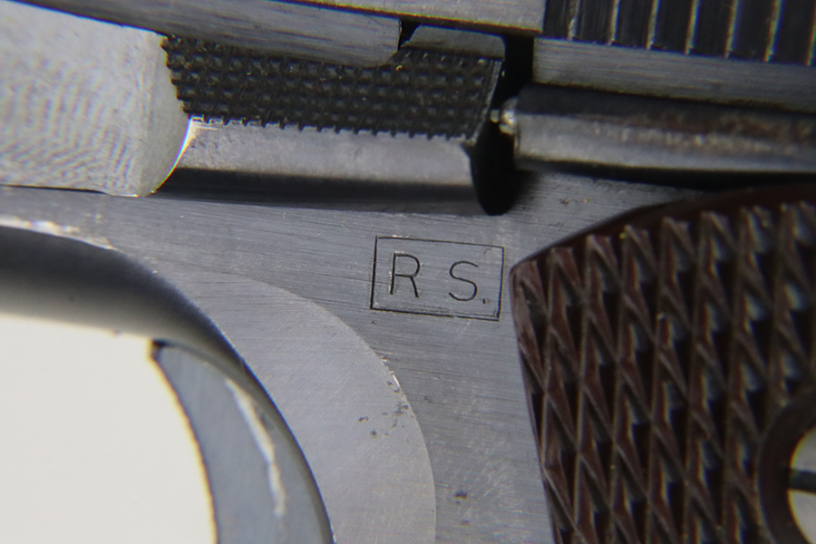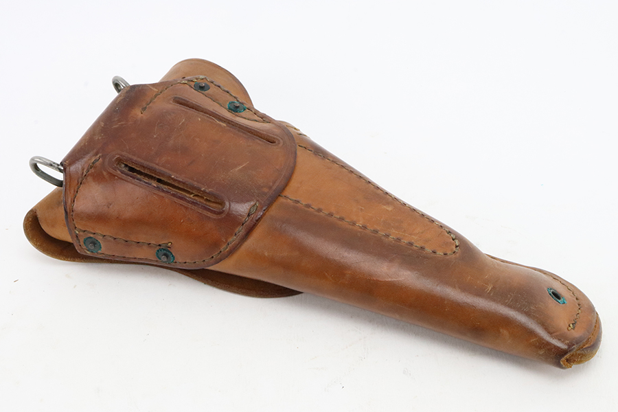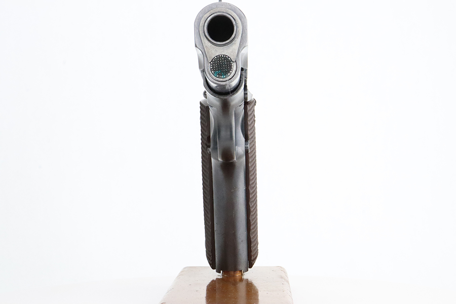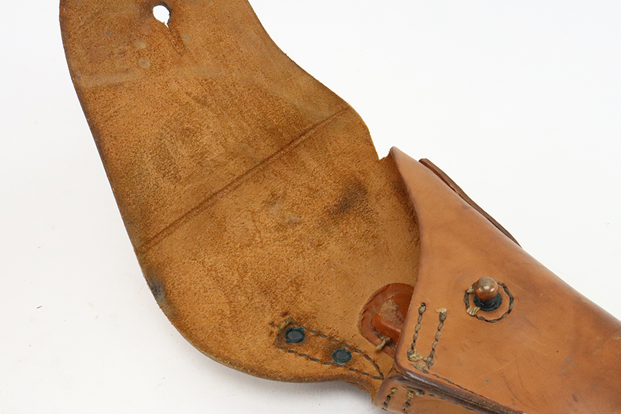 1/29/24 – This is one of the finest examples we’ve offered of a blued Colt 1911A1 from 1941. The pistol is matching and original with 98+% of the polished Colt blue remaining. Just a hint of holster wear on the front high edges of the frame and around the muzzle. Slide is serialized and matching to the frame. Proper Colt barrel with large ‘G’ marking. Fantastic profile view in general with vibrant blue. Excellent grips with sharp checkering. Barrel has minor hints of frost and signs of usage. Scovill mag. Comes with a minty Graton & Knight wartime holster.