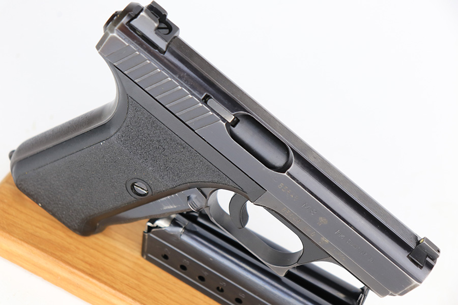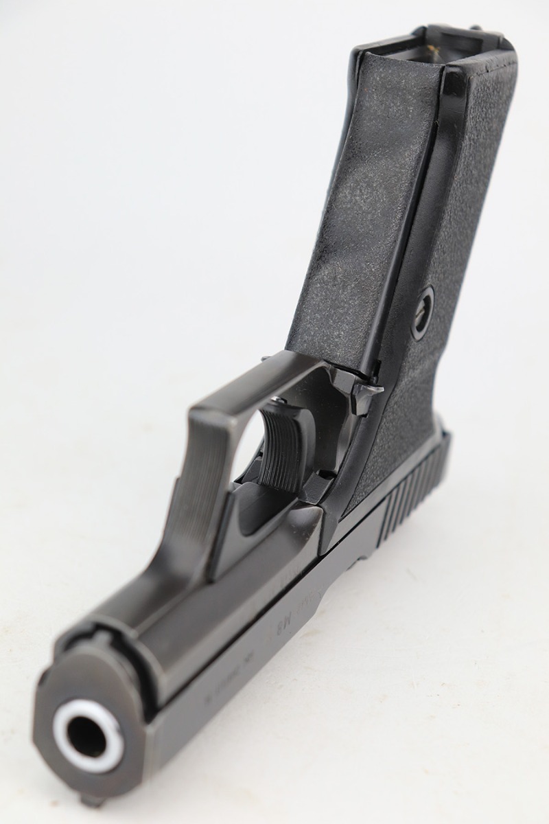 4/5/23 – This is an excellent example of a scarce H&K P7 M8 with an early Chantilly, VA import mark. The “IE” date code indicates the gun was manufactured in 1984. All matching with the proper West German proofs. Comes with two proper magazines, a multitool, and an owners manual. The gun itself has retained about 96-97% of its original finish with just minor wear around the muzzle and on the high edges in general. Excellent black plastic grips. Mint bore.