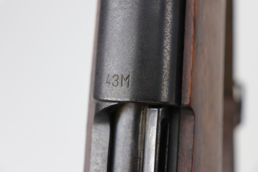 11/2/21 – This is a rare FEG 43M rifle, which became the Hungarian military rifle toward the latter parts of World War II. Largely based off the 35M, which was designed after World War I to use the rotating bolt mechanism rather than a straight-pull Mannlicher. It also featured a longer barrel and a new safety design. The 43M was further updated to use the 7.92×57 cartridge, and featured an angled bolt handle and bayonet socket. It was essentially a G98/40 with the Hungarian 35M-style barrel band, sling swivels and bayonet lug. This particular rifle is an early example, made in the first year of production. It’s all matching and original except for the bolt, which is mismatched, though only 20% of 43M production features matching bolts. Matching numbers include the buttplate, rear sight, receiver and trigger group. Original blue throughout which does show some general oxidation and patina. Stock is in terrific shape with only minor handling wear. Bore has good rifling but is frosted throughout and does require a thorough cleaning as it is currently dirty throughout. Comes with a worn period original sling.