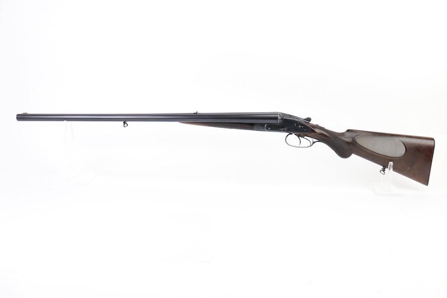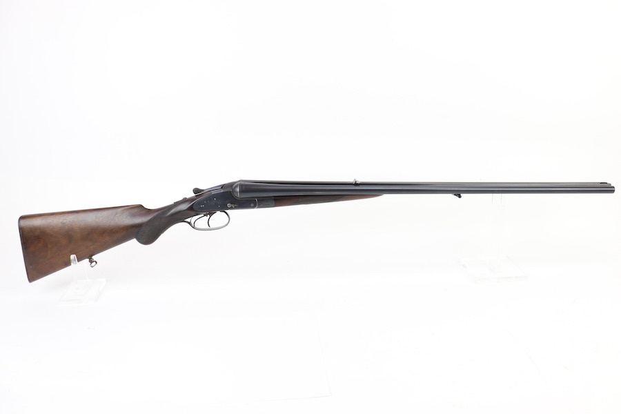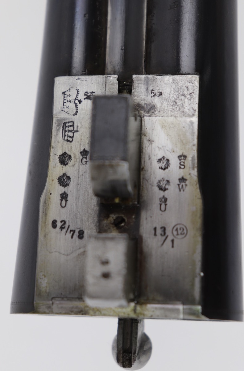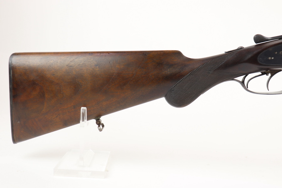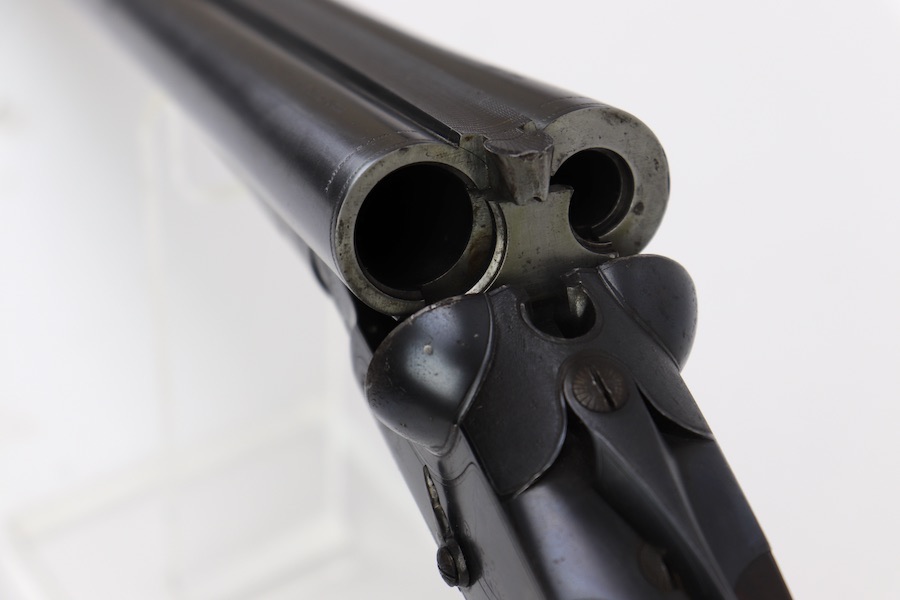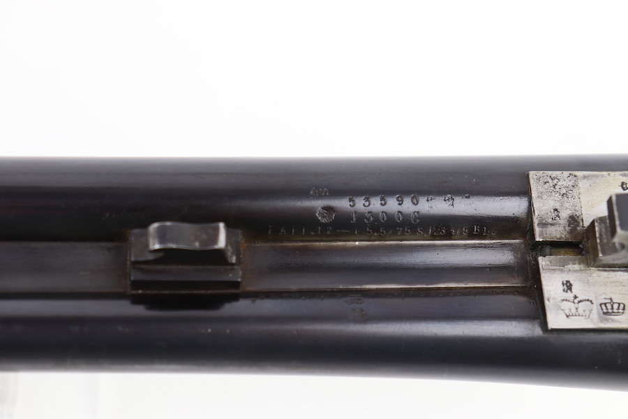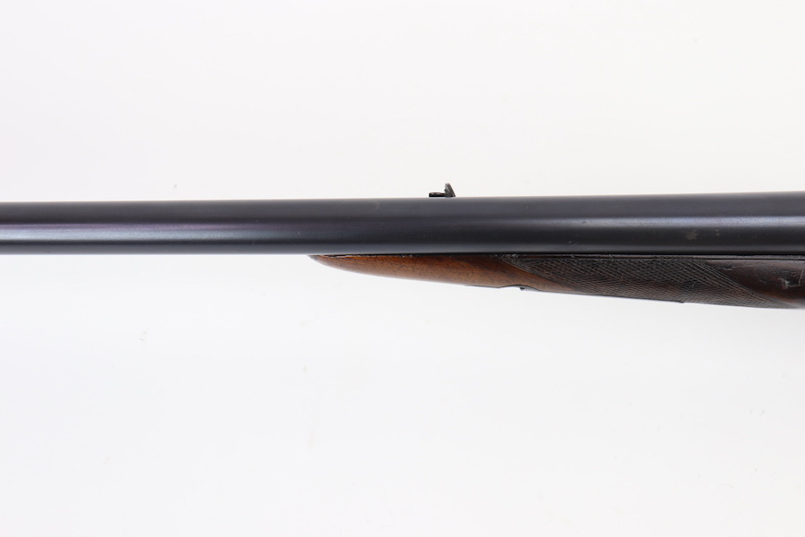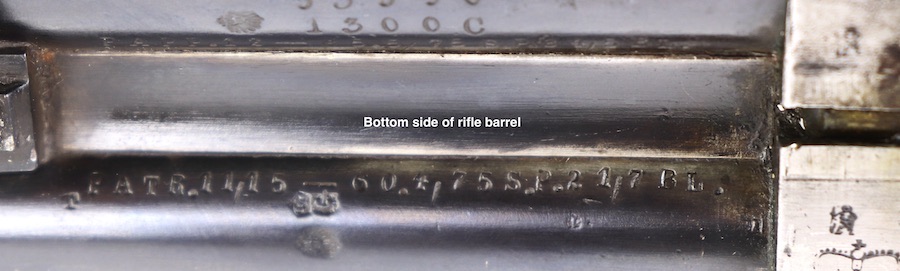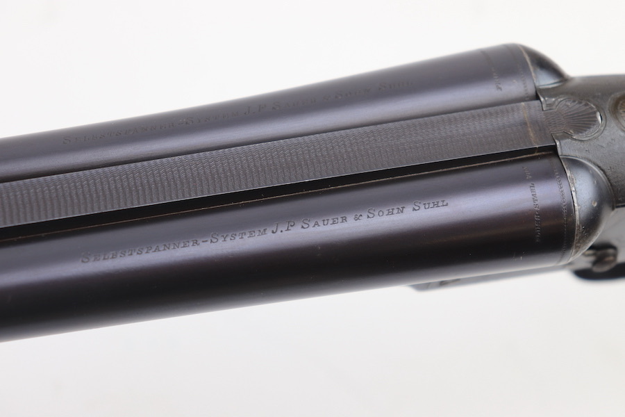 12/11/23 – This is combination cape gun was manufactured by JP Sauer & Sohn in the early 1900’s. J.P. Sauer is a first rate German maker, and encountering a cape gun by this manufacturer is a rare find. This double barrel is chambered in 12 gauge shotgun on the left and 11mm Mauser on the right. Cape guns were popular among African colonists because the smoothbore allowed use of bird shot, buck shot, or slug/round ball loads. The rifle barrel was good for most soft skinned plains game. This piece retains about 95+% of its original finish with mild patina on the sides. Honest use wear shows around the engraving, but it is still very presentable. Features left and right loading indicators that are horizontal before opening/cocking. Once opened, the indicators rotate upward about 60 degrees. They return to the horizontal position when the trigger is pulled. The wood stock shows minimal wear with no cracks. The shotgun barrel has a clean, mirror bore while the rifle bore shows strong rifling with minor frosting within the grooves. Overall, it rates a strong 9 of 10. The firearm features Krupp fluid steel (Fluss Stahl) barrels, which are much more desirable than twist or Damascus steel. The meaning of all the proof marks is an elusive task, but all the marks are shown in the photos. There are no import marks and this is C&R eligible.