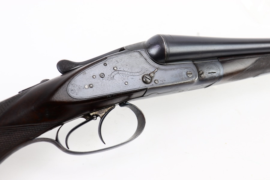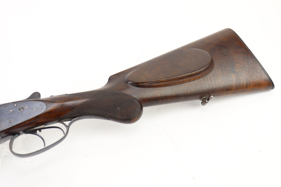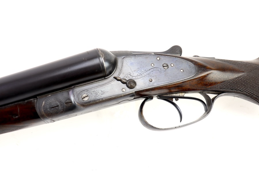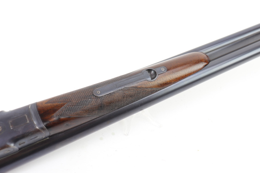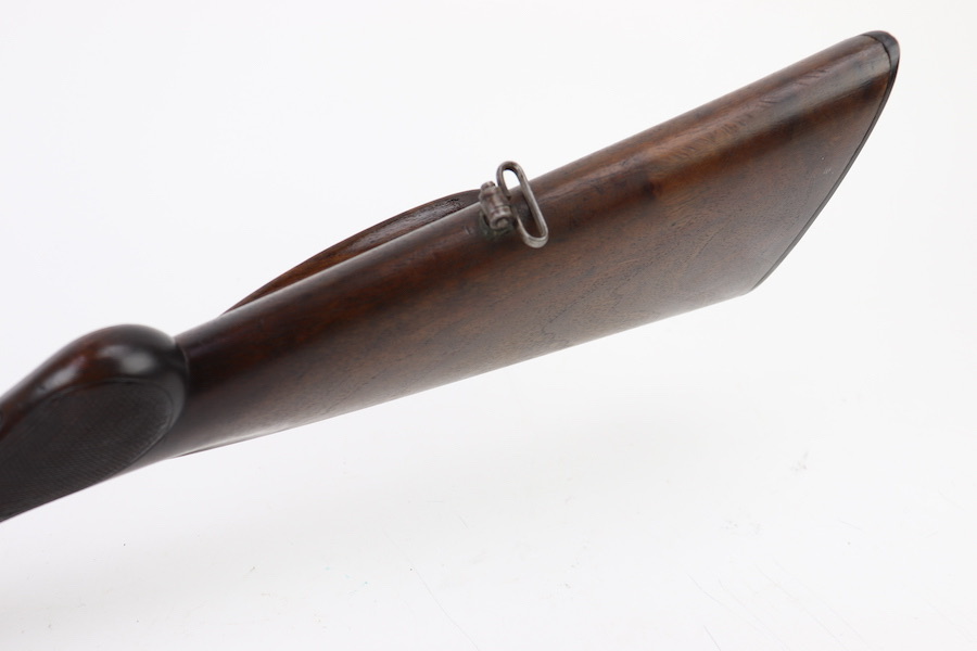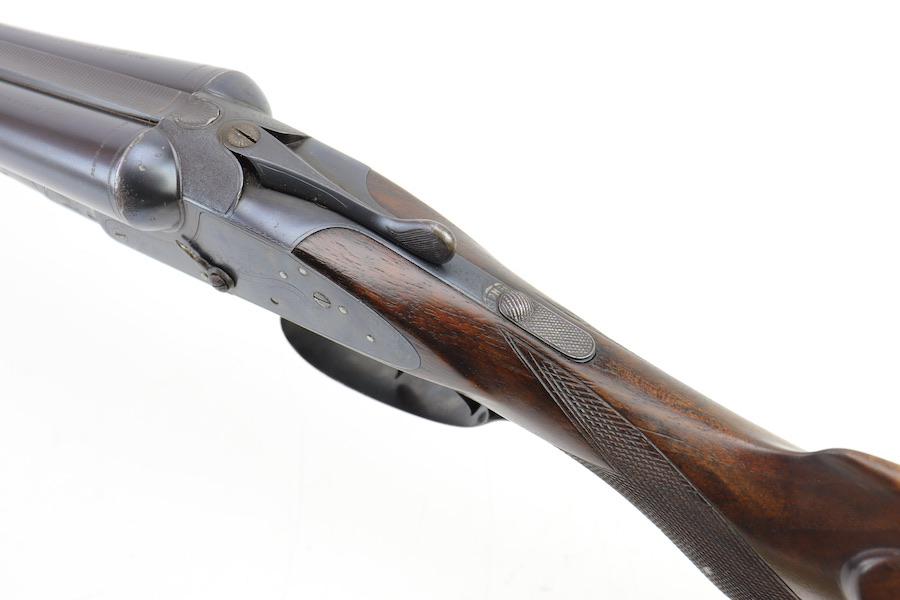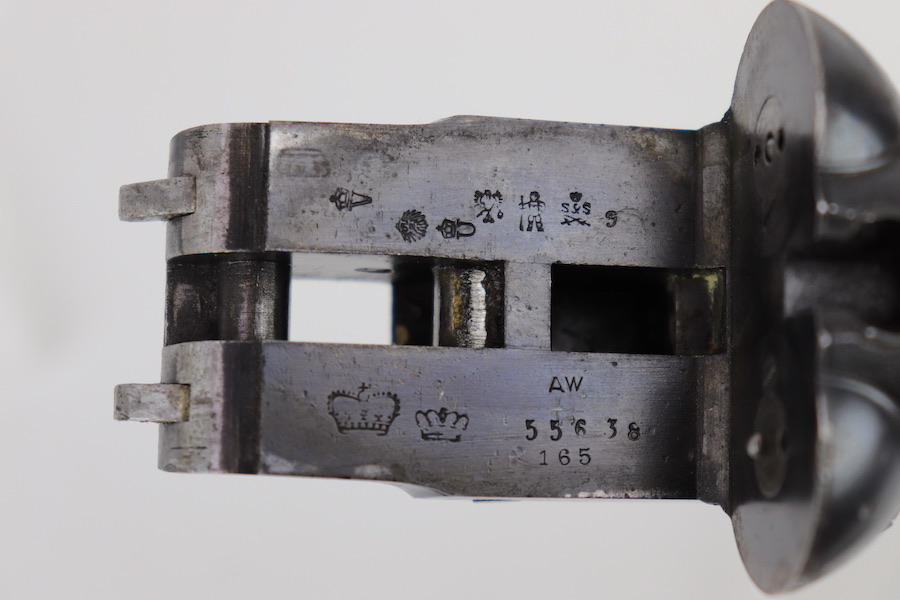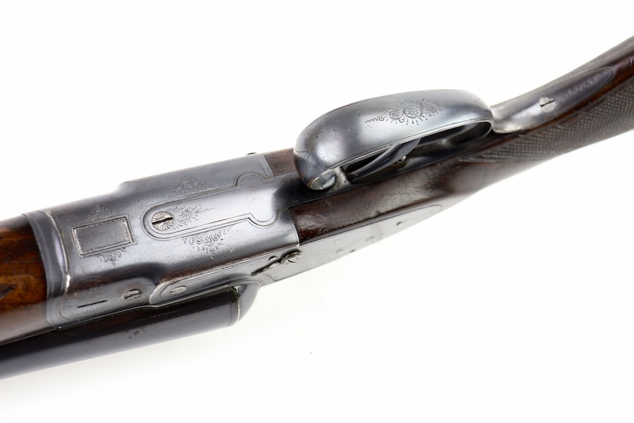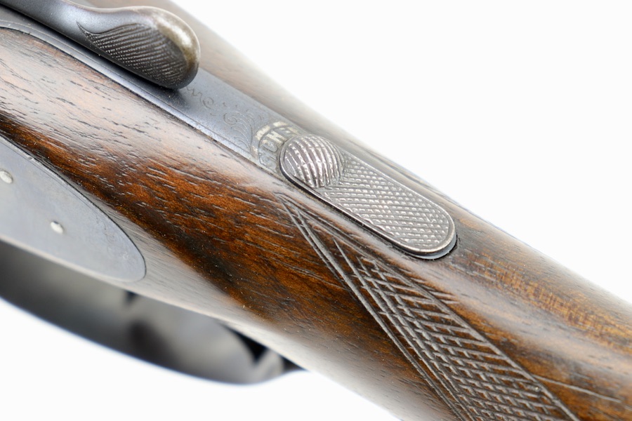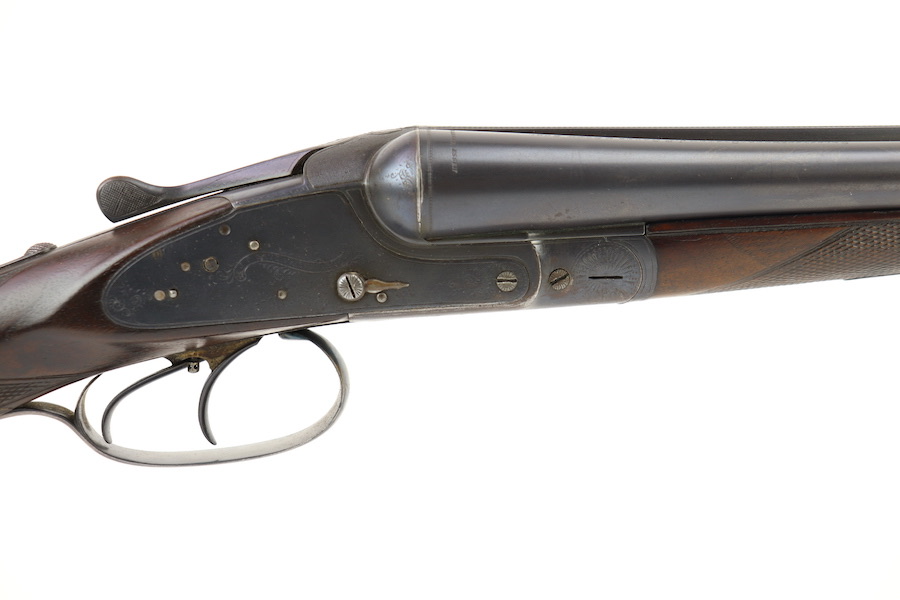 12/11/23 – This is combination cape gun was manufactured by JP Sauer & Sohn in the early 1900’s. J.P. Sauer is a first rate German maker, and encountering a cape gun by this manufacturer is a rare find. This double barrel is chambered in 12 gauge shotgun on the left and 11mm Mauser on the right. Cape guns were popular among African colonists because the smoothbore allowed use of bird shot, buck shot, or slug/round ball loads. The rifle barrel was good for most soft skinned plains game. This piece retains about 95+% of its original finish with mild patina on the sides. Honest use wear shows around the engraving, but it is still very presentable. Features left and right loading indicators that are horizontal before opening/cocking. Once opened, the indicators rotate upward about 60 degrees. They return to the horizontal position when the trigger is pulled. The wood stock shows minimal wear with no cracks. The shotgun barrel has a clean, mirror bore while the rifle bore shows strong rifling with minor frosting within the grooves. Overall, it rates a strong 9 of 10. The firearm features Krupp fluid steel (Fluss Stahl) barrels, which are much more desirable than twist or Damascus steel. The meaning of all the proof marks is an elusive task, but all the marks are shown in the photos. There are no import marks and this is C&R eligible.