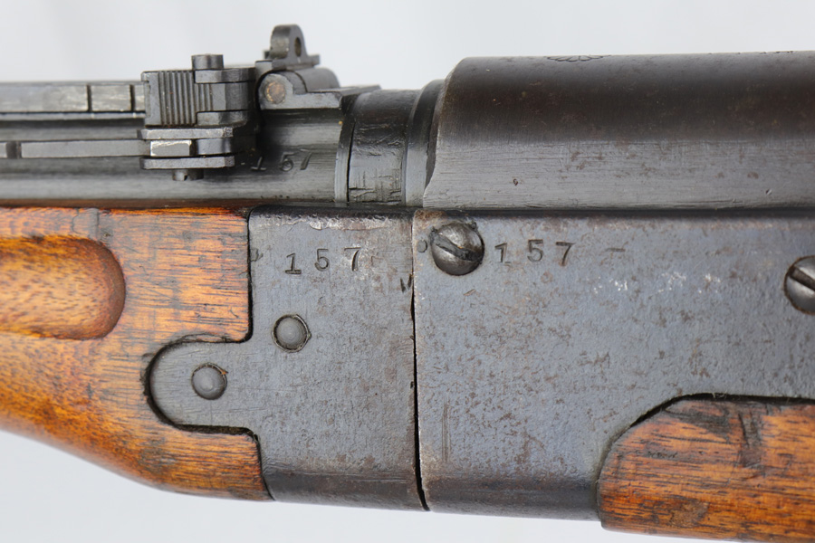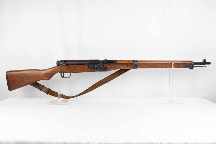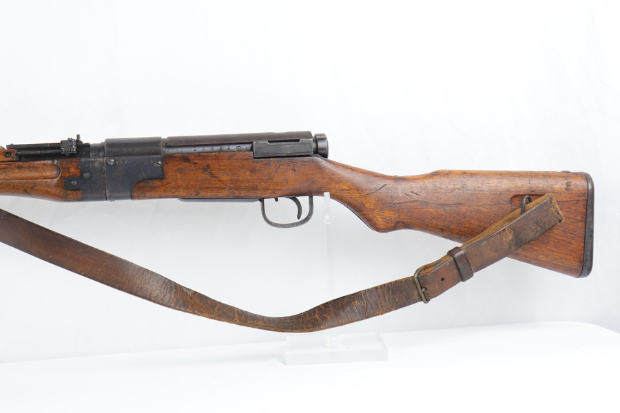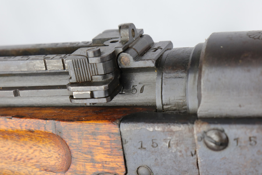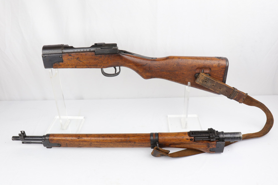 3/5/19 – This is a scarce and highly desirable Japanese Paratrooper rifle from World War II. Exclusively made at Nagoya Arsenal, the rifle is all matching and original and in excellent condition. The chrome-lined bore is near-mint, and there is only minor finish loss to the metal parts, mostly on the barrel. The mum is completely intact, and the original dust cover is present. The takedown mechanism is also all matching, and correctly not matching to the serial of the receiver as these were numbered separately. Receiver also features Kani denoting it is a “Type II” rifle. Original sling, cleaning rod and aircraft sights are present. The inside of the action and magazine assembly are excellent, indicating it was shot very little. The stock shows numerous dings and nicks but no cracks or major issues with the wood. There were only an estimated 19,000 of these produced, but finding them in such excellent, original condition is very difficult.