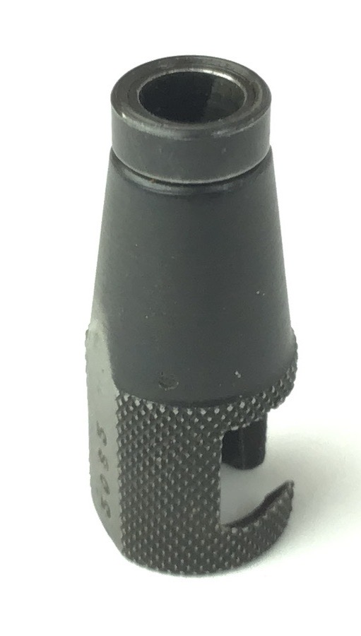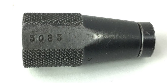 7/15/24 – This is an original, excellent condition Luger cleaning rod guide / muzzle protector. Also used for the 4mm conversion barrel. In the Weimar era and early WW2, these cleaning rod guides were issued with Lugers (mostly police Lugers). These are often seen with police lugers and were made with the intention of protecting the muzzle from being damaged by the cleaning rod. This piece is serial number stamped, and has small imperial stamp. No rust or pitting, wonderful condition and original.