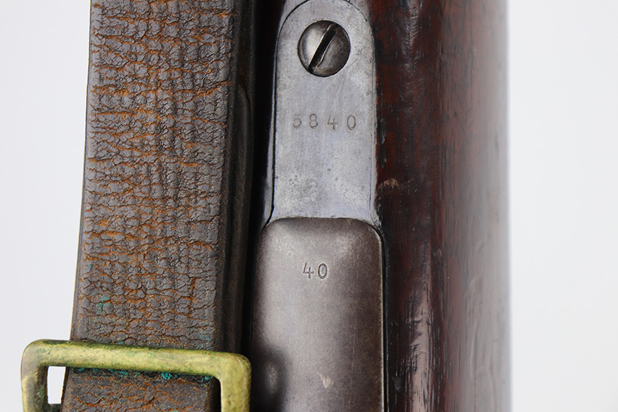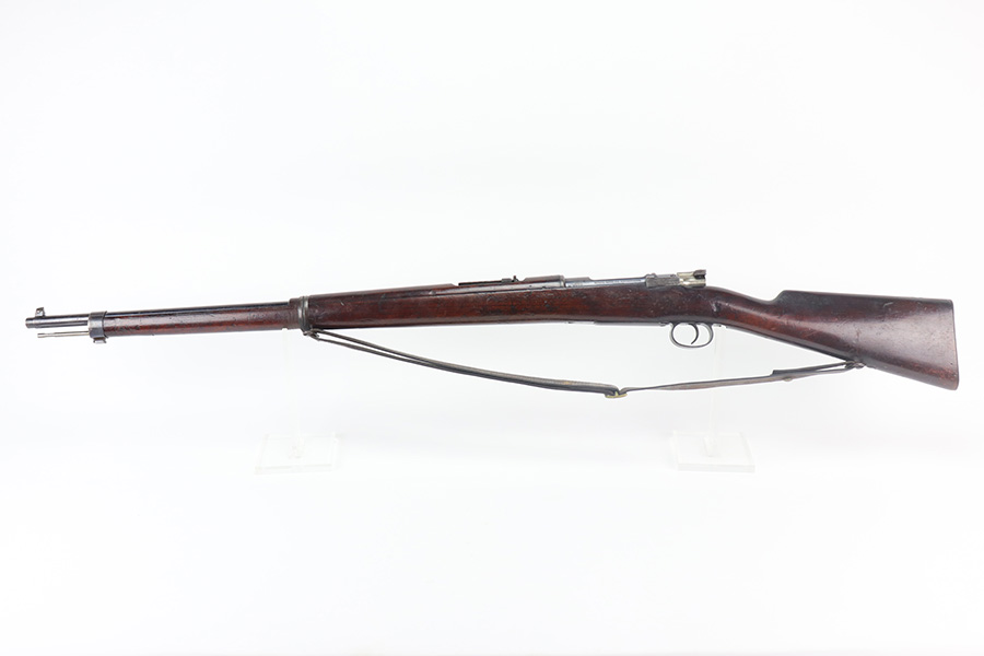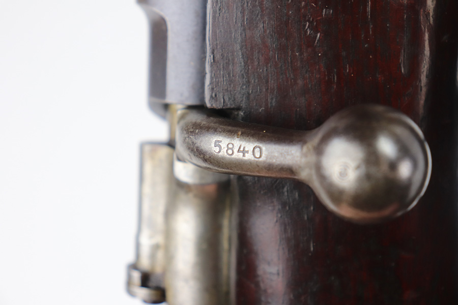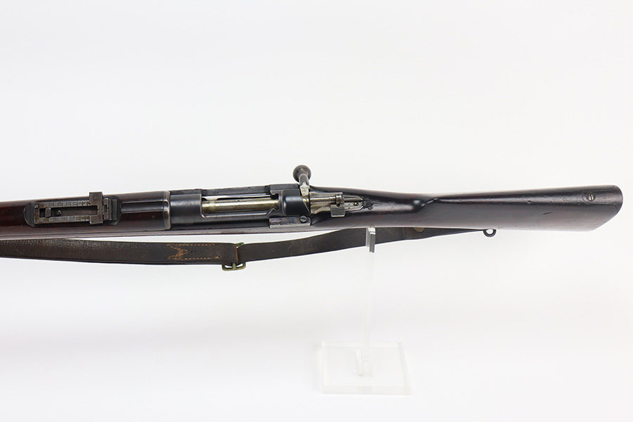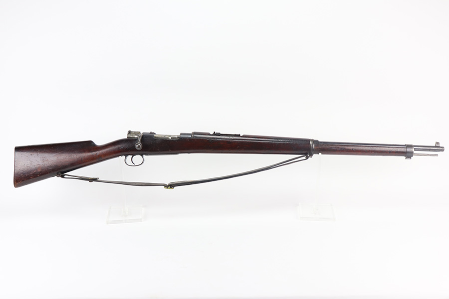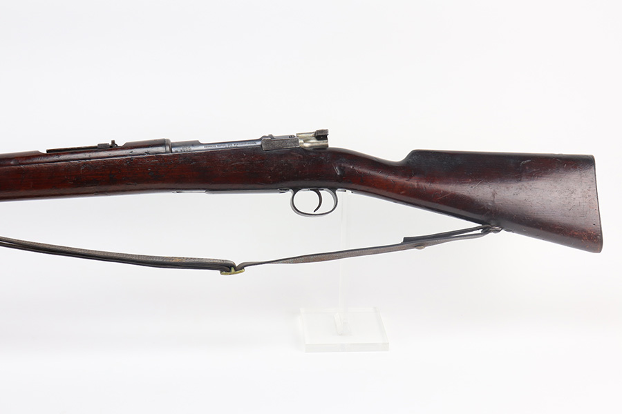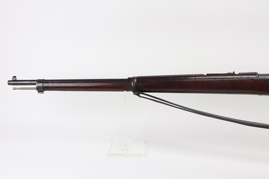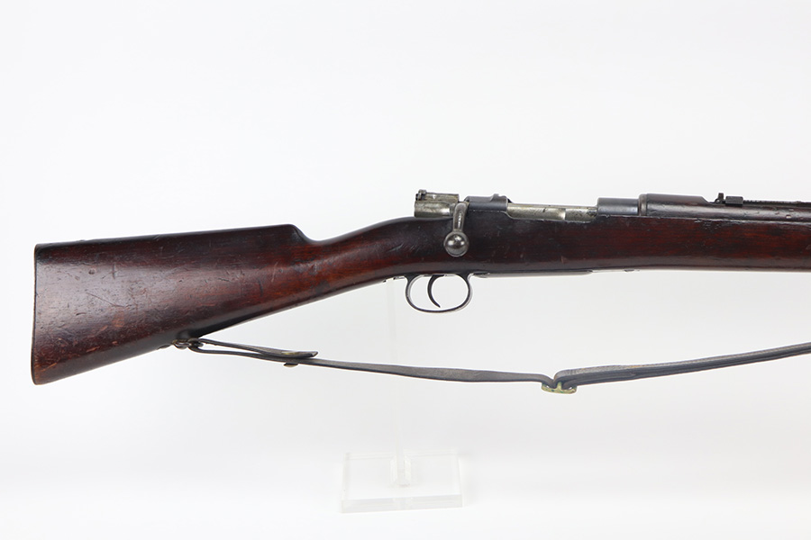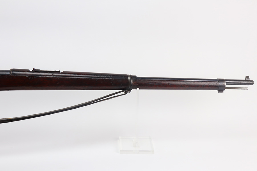 6/9/21 – This is a rare Mauser 1893 that is marked ‘O.V.S.’ on the stock and receiver for “Oranje Vrij Staat”, which translates to Orange Free State. These rifles were used in the Boer Wars as they were issued to the Boer military at the turn of the 20th century. This example has all matching numbers, including stock, receiver, bolt, trigger group, rear sight, and even the matching cleaning rod. Original blue shows minor thinning in most areas, but some oxidation on most of the rifle. Includes period sling. Bore has strong rifling but is heavily frosted.