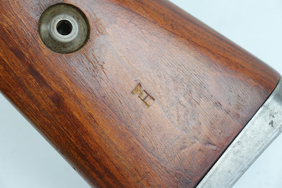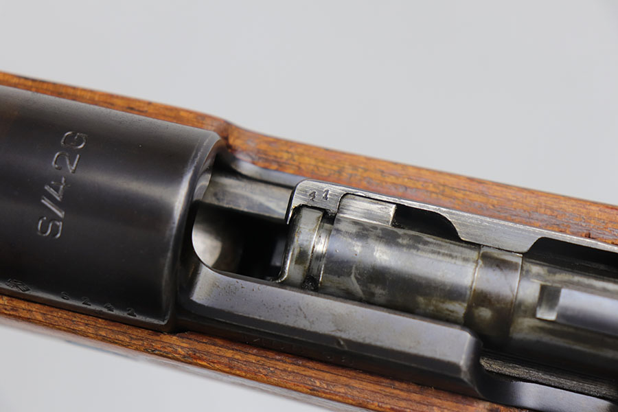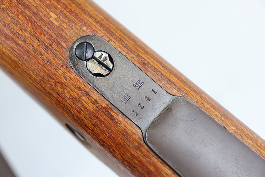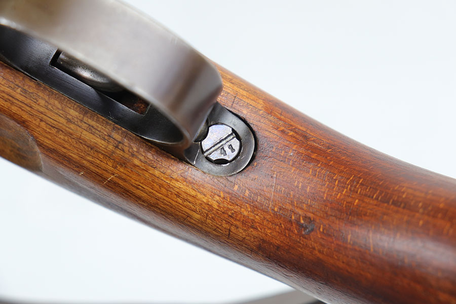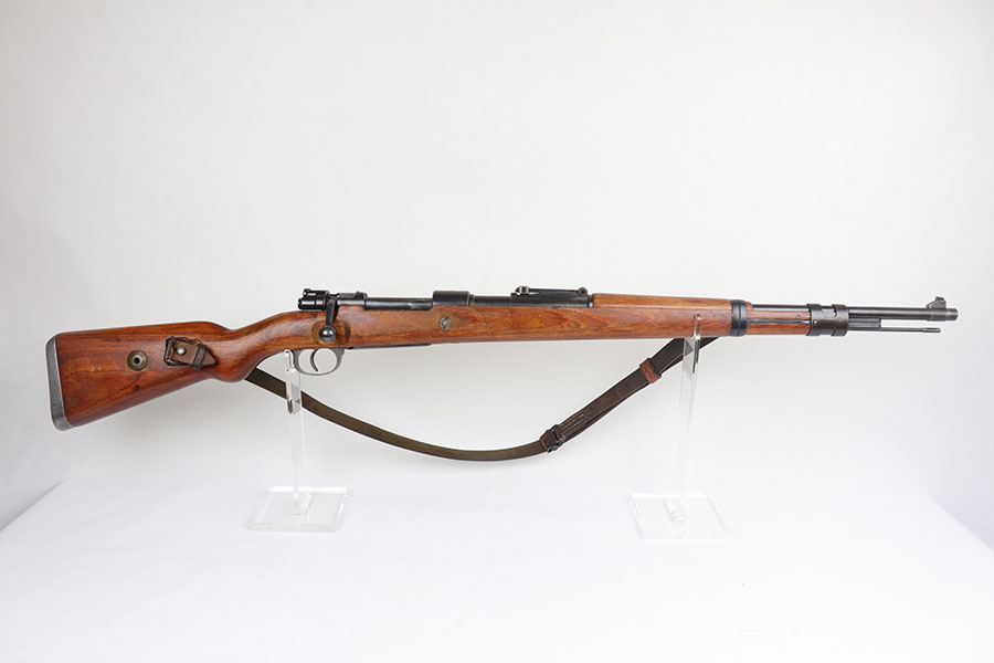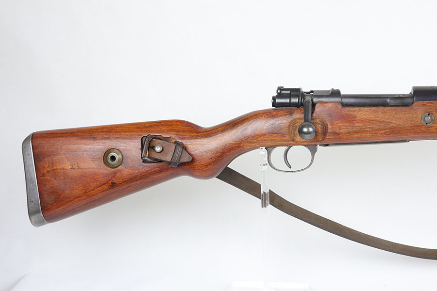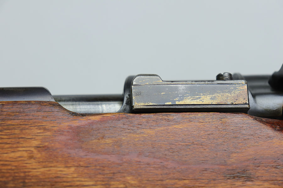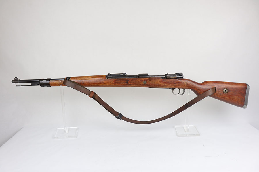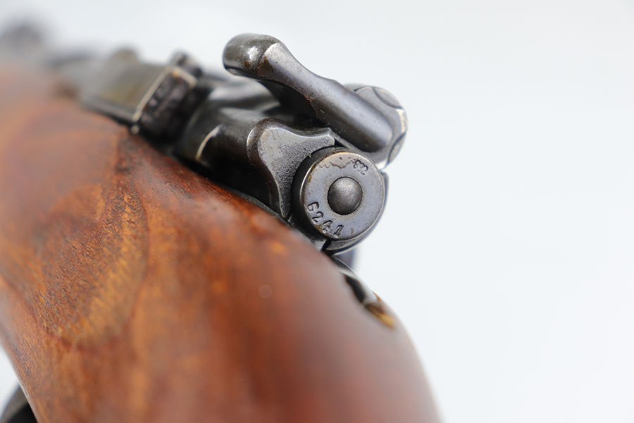 7/24/20 – This is a rare G Date Mauser K98, manufactured in 1935 and featuring all matching numbers and original finish. Introduced during the early years of the Nazi Party’s dominance of Germany, the code system was intended to obscure the scale and speed of German re-armament, and all correct G Date K98s are seldom available to the collector market. The original finish rates at about 80-85% with thinning on the trigger guard, front band and muzzle. There is also a general patina to certain areas, especially the trigger group. The receiver has excellent blue which is uncommon as these early K98s were heavily used. All numbered parts match the receiver, including the hand guard, as well as the stock (internally numbered). The only part we believe to be incorrect on the rifle is the front barrel band. Stock is gorgeous with sharp Heer Army proof on the right side. Loads of early acceptance proofs adorn this rifle as well. Comes with an original sling and cleaning rod. The rod is an early example and numbered ’71’, as opposed to the ’41’ of the rifle. Terrific bore.