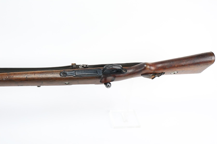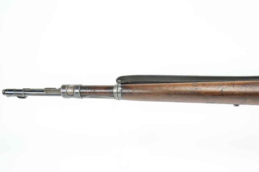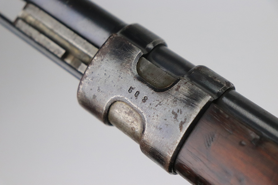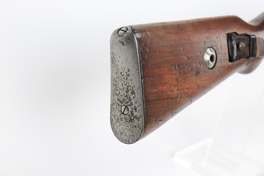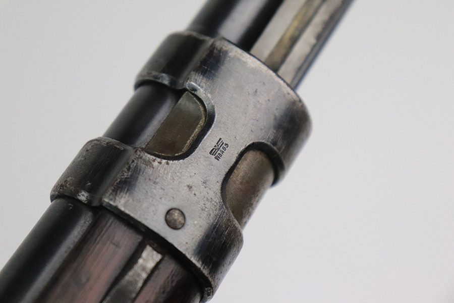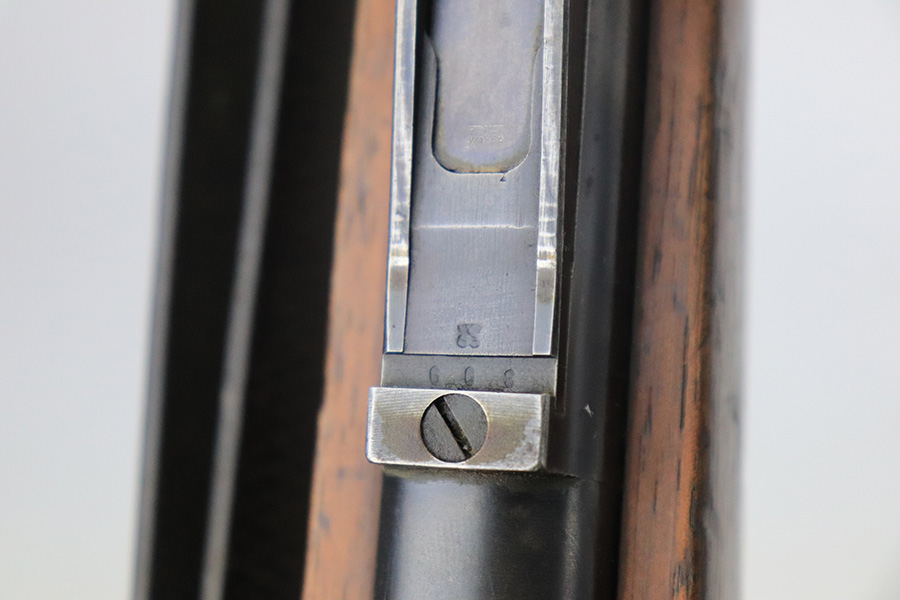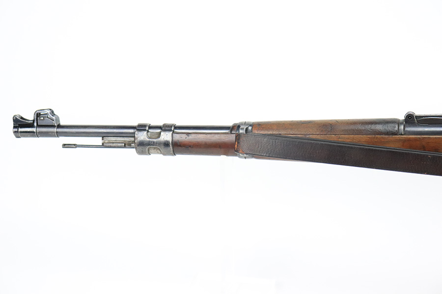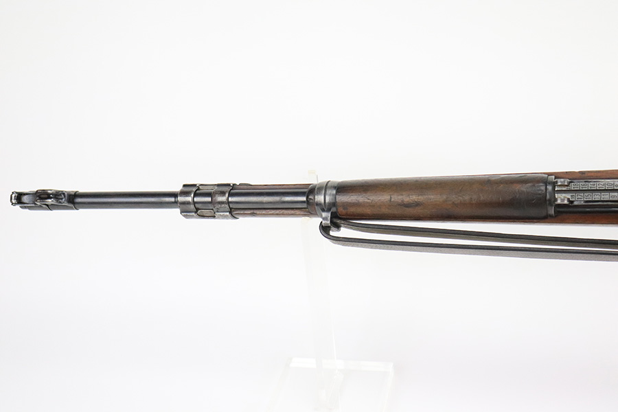 6/21/22 – This is a scarce Mauser K98 from 1938 that was issued as part of a Luftwaffe contract order, as indicated by the Eagle/L on the stock. The rifle is all matching and correct except for the trigger guard/assembly, which has been replaced unfortunately. Matching numbered parts throughout otherwise, including the stock, handguard, buttplate, rear sight assembly, bolt release, bolt assembly, bands, receiver and barrel. The finish on the receiver and bolt shows some thinning but is in good condition overall. The bands show thinning and freckling, and the barrel has some wear and surface scratches. Bore is minty. The stock has various handling dings and scratches but no cracks or structural issues. The listing includes an original sling, cleaning rod and muzzle cover.