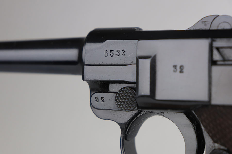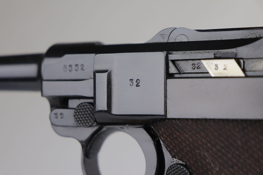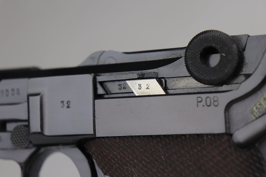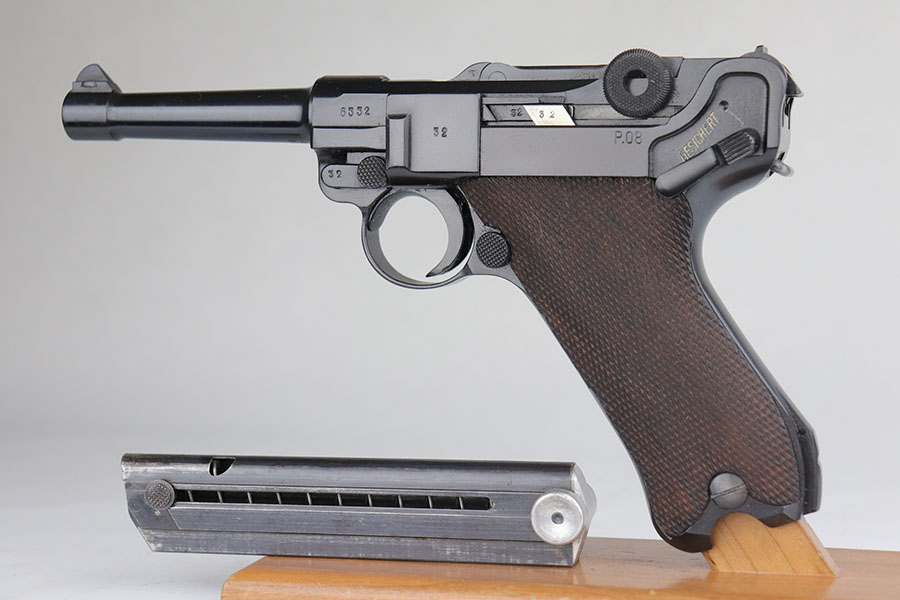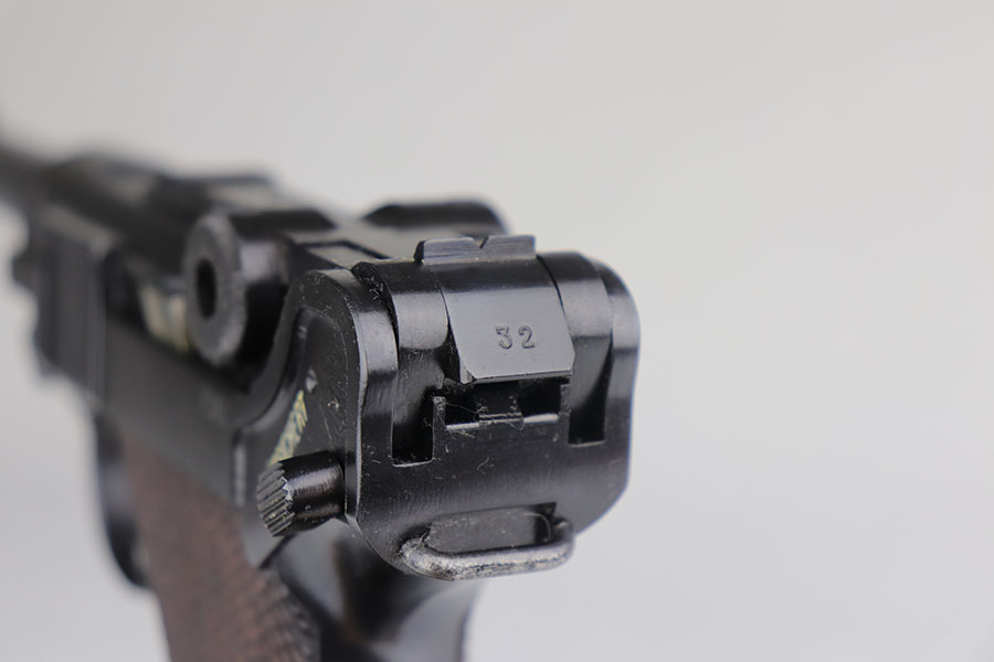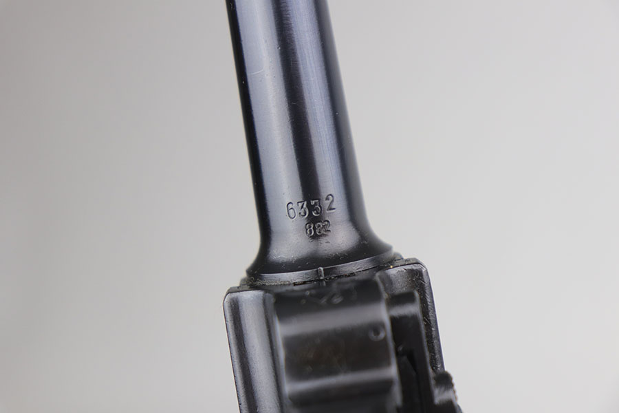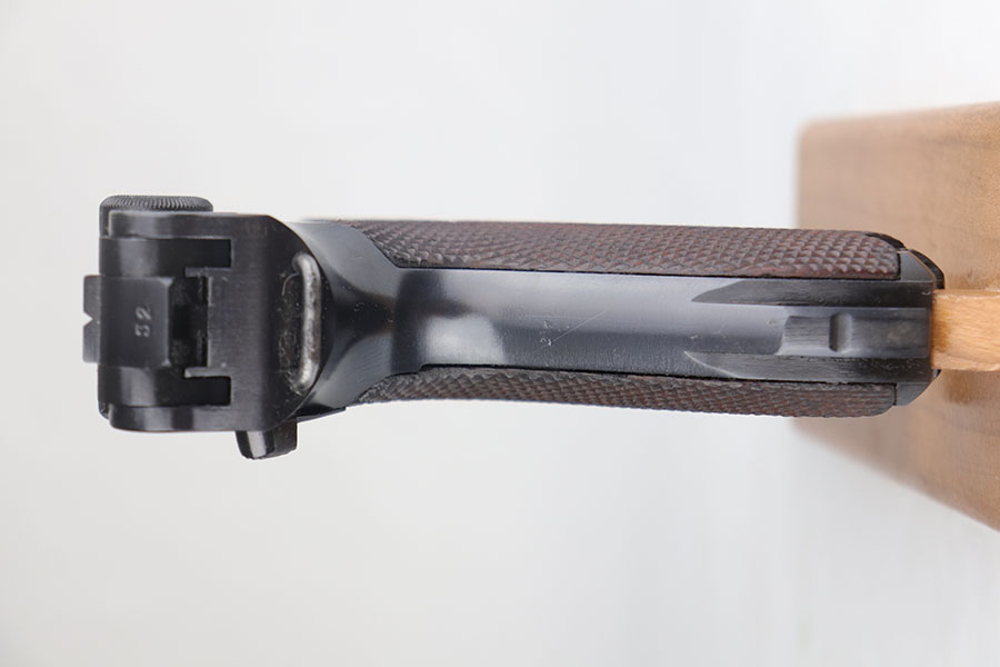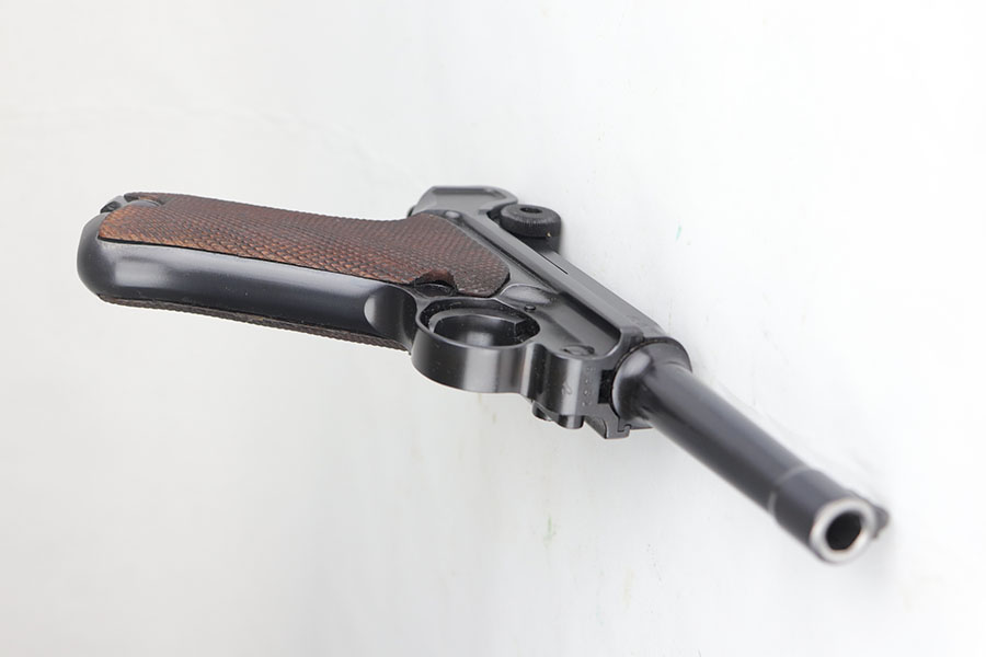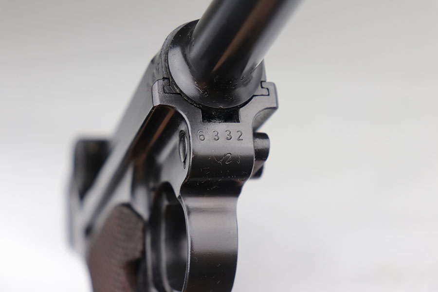8/4/20 – This is a scarce Mauser Luger that was made in 1941 with ’42’ code on toggle.  There were only ~7,000 of these produced, one of the rarest military production totals for a Mauser Luger.  This one has all matching small parts with scarce blank bottom ‘fxo’ magazine.  The finish was restored at some point on this pistol but the bluing is intact.  Grips are mismatched replacements.  Bore has good rifling but some frost and freckling throughout.