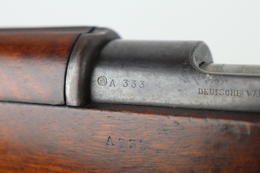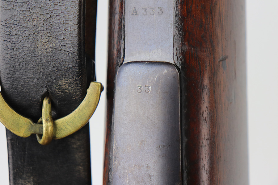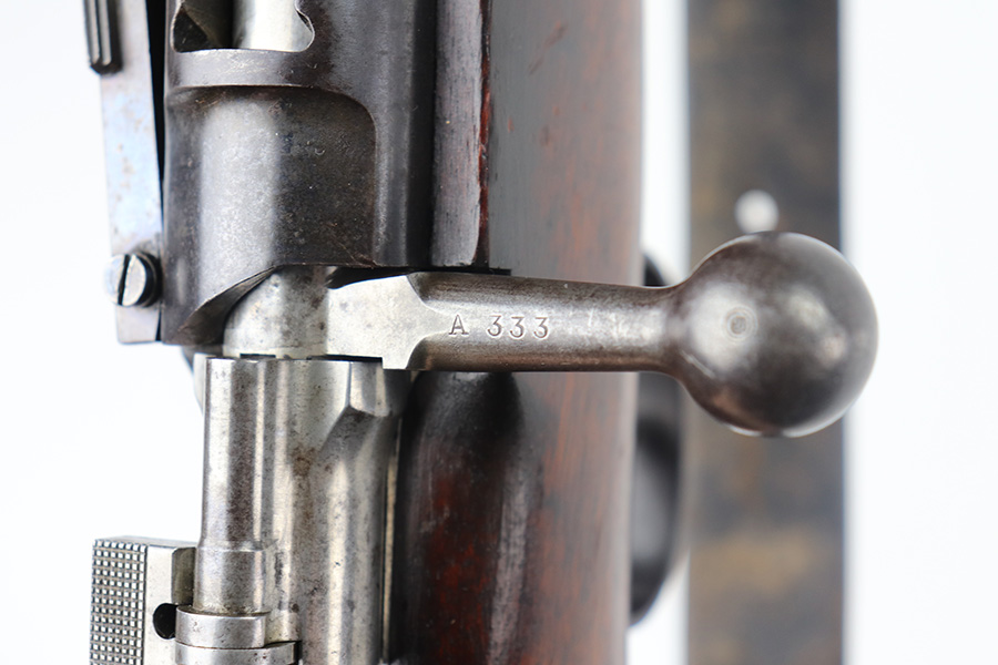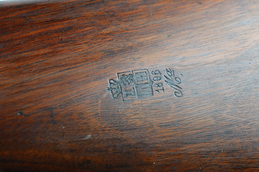 6/9/21 – This is a rare Spanish Model 1893 Mauser rifle from 1896 that was issued to the Spanish Navy. The stock has a cartouche with Spanish crown and crests over the 1896 manufacture date and ‘Ma’ marking, which indicates it went to the Navy (Marina). This example is in very good condition and all original. All matching numbers, including the bolt, trigger group, receiver, rear sight and even the original, matching cleaning rod. Blued parts show minor finish loss, mostly on the receiver, and some oxidation on the barrel. Excellent stock with only a few minor dings and chips. Original sling. Bore has strong rifling but is heavily frosted.