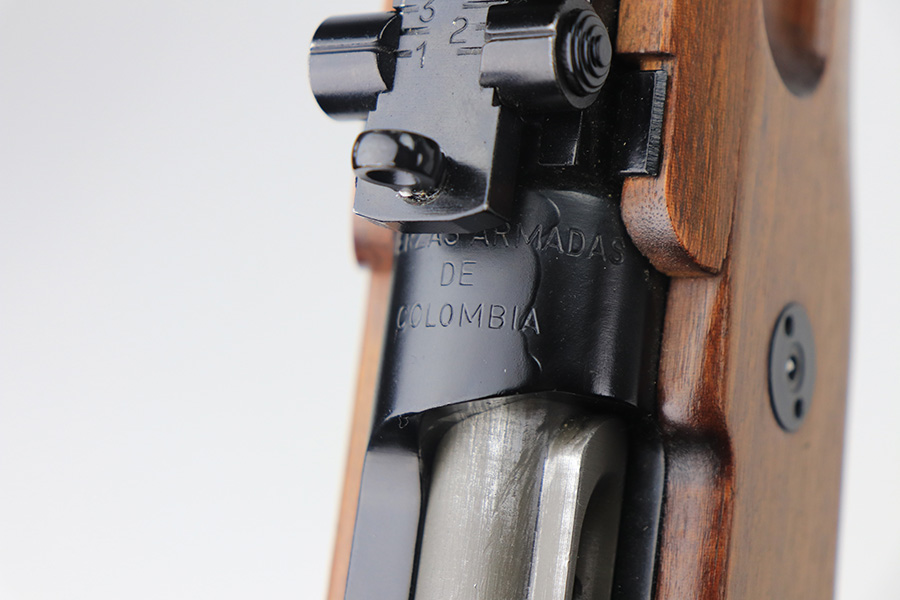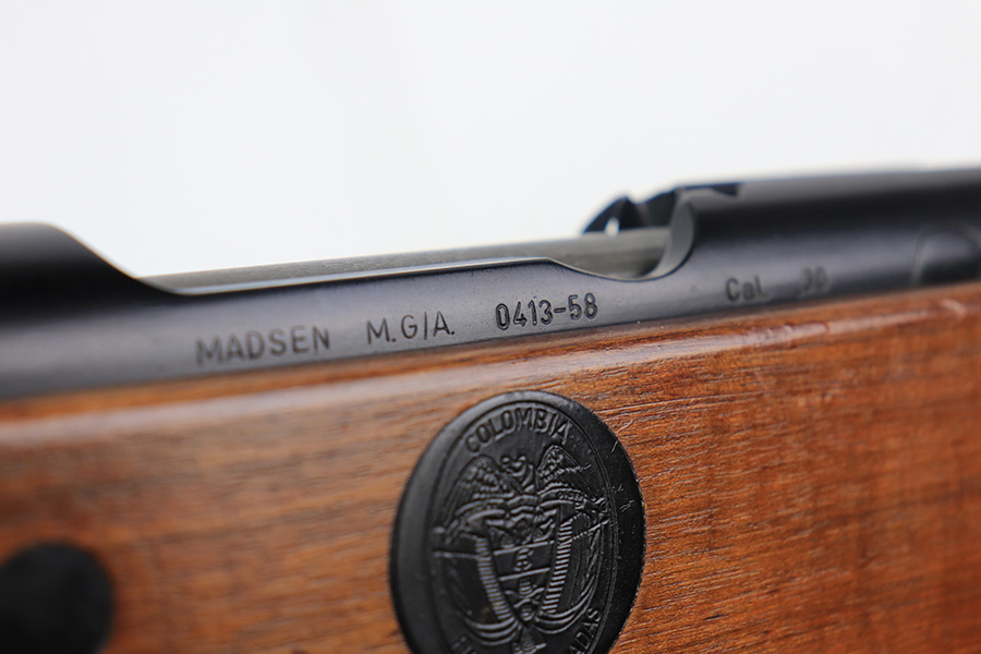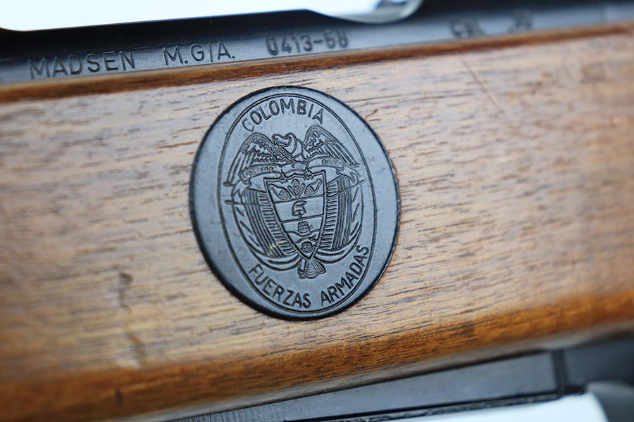 2/17/22 – This is a mint example of the rare Madsen M47 rifle that went to Colombia as part of a small rifle contract order that saw fewer than 5,000 produced. It appears to be in nearly unused condition – minty finish, mint bore, mint stock. Tiny bit of high point wear but otherwise looks like it just came out of the factory. These rifles are not known to have been issued outside of ceremonial use, and were instead stored as surplus until their purchase and export to the United States for consumer sale in the 1960s, which likely explains the condition. C&R eligible.