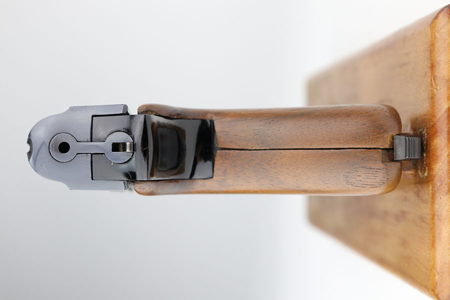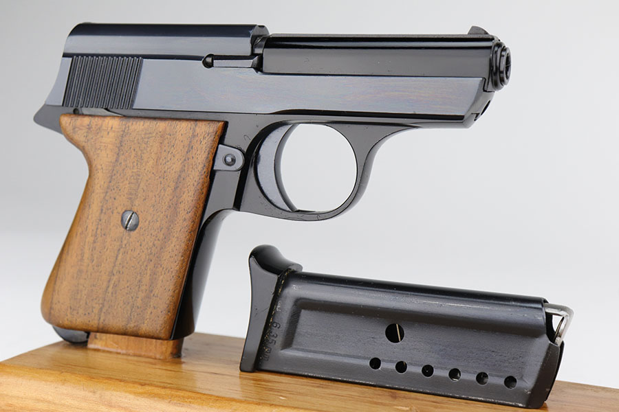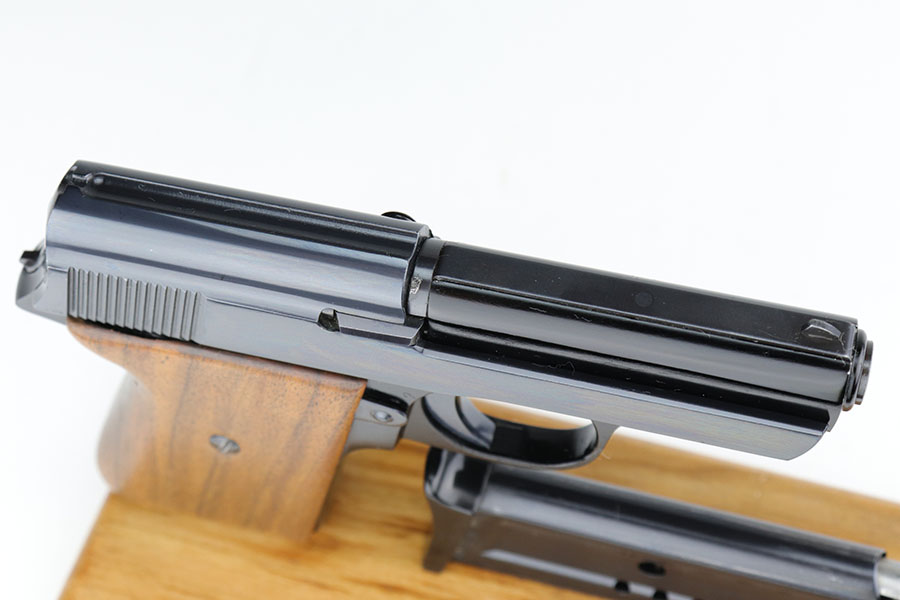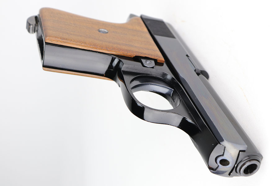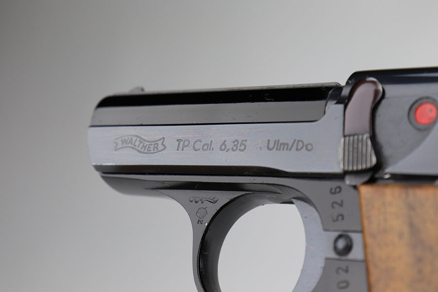 1/8/21 – This is a fairly rare Walther Model TP that was manufactured in 1966, and is seen in original, minty condition. There were fewer than 15,000 of these ever produced, and only about 11,000 in 6.35mm, such as this one. In the late 1950s, Walther started looking for a new vest pocket pistol option they could sell to the civilian market, and designed the TP off the the specs of the very successful Model 9. This particular pistol is one of the nicest examples you’ll see, which just a little bit of finish scuffing on the barrel. Frame is ’66 dated. Minty bore and excellent grips.