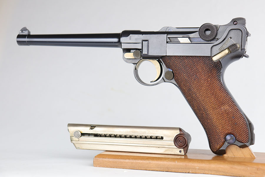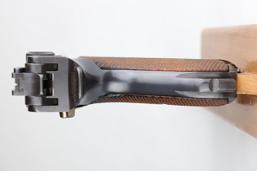 11/28/22 – This is a very rare, and minty example of a commercial Navy model DWM Luger. It has 99% of the original finish with only minor hints of high point thinning. Minty bore, straw, grips, etc. Unnumbered barrel as these guns were completed from the available parts after the war. Just nearly impossible to upgrade this one. Correct Navy style magazine with blank wood bottom. Germany marked for export on the frame, but no import marks. So this was made in the POST WW1 era for the commercial market. Likely exported to the US. Seem like it was put away and never used. A Luger like this only comes around once every 10 years or so.