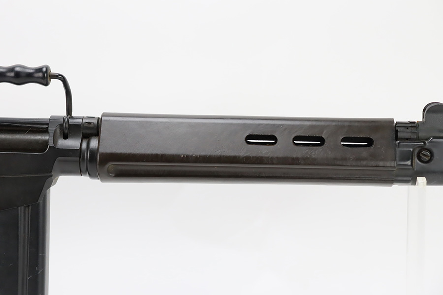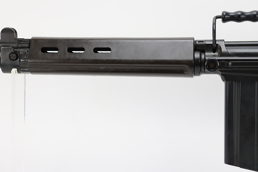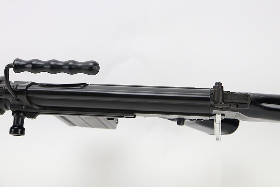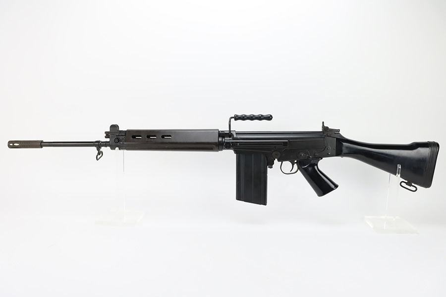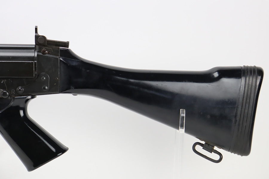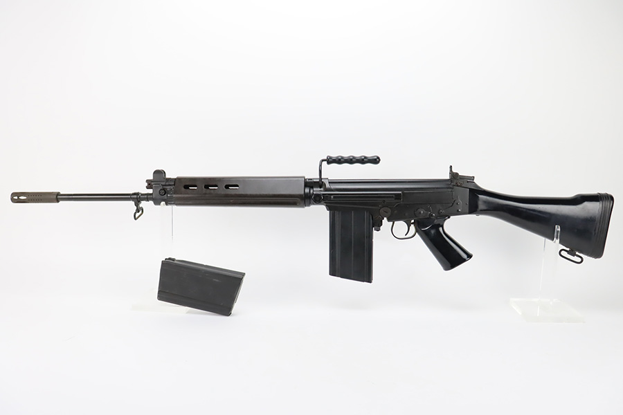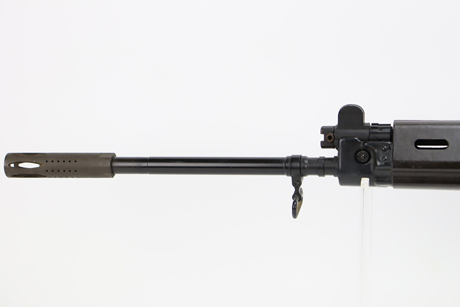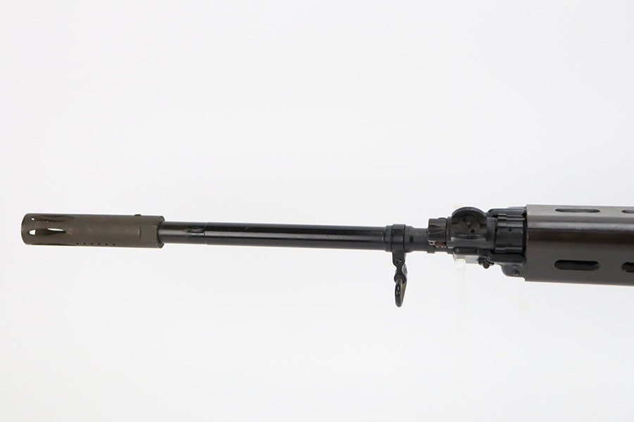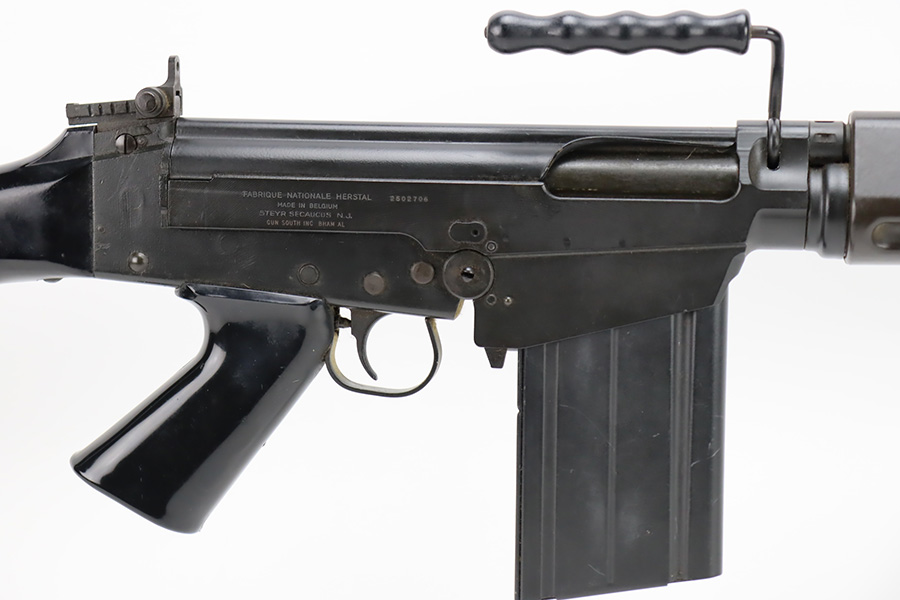 10/3/23 – This is an original FN FAL, chambered for .308 MATCH, in near-mint condition. It has a 22 inch barrel with brake and fixed stock. This is a preban example, and one of the few made in Belgium and later allowed into the country via Steyr import. Hardly any wear to note, and the bore looks nearly unfired. Smooth mechanics. Comes with two original magazines.