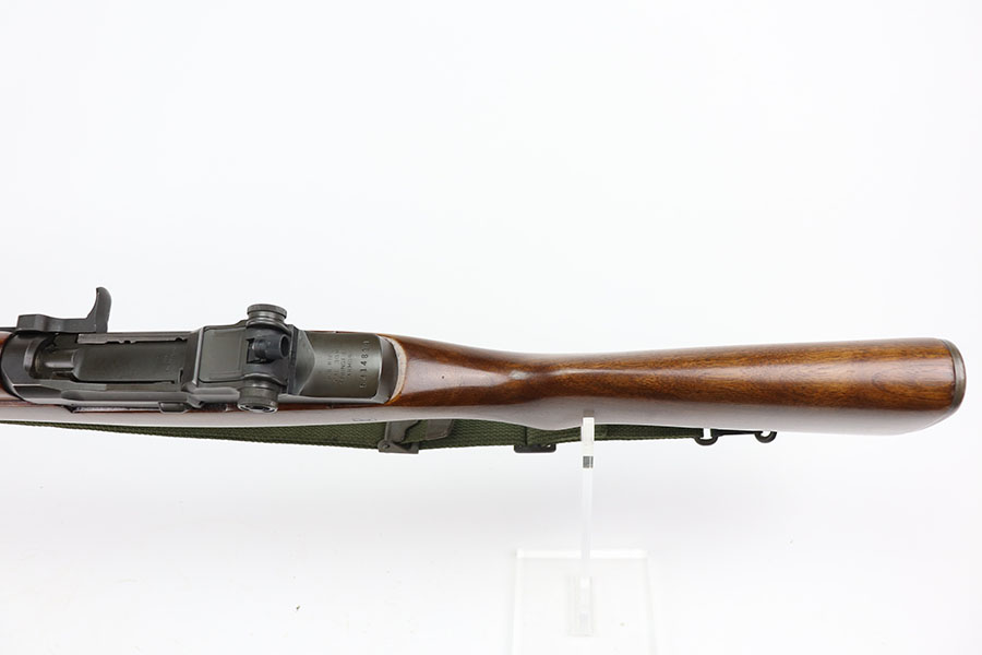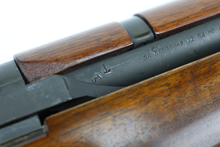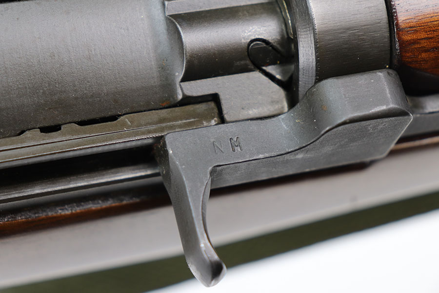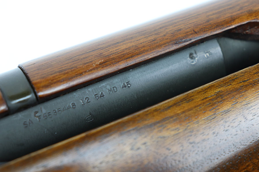 3/11/21 – This is a scarce National Match M1 Garand in near-mint, original condition. Type 1 National Match rifles were first intruduced in the mid-1950s with the idea of making a rifle that could compete in national matches. With that in mind, the best barrels were selected, and paired up with the existing inventory of receivers and using the best components available. These were sold to various shooting clubs, at Camp Perry events and to individuals through the DCM (Director of Civilian Marksmanship) – predecessor of CMP. Only Springfield arsenal parts were used, and parts were marked NM. This rifle has an NM marked front sight, sling swivel, rear sight, the gas cylinder, op rod, and barrel. Also the trigger group and the stock have the last 4 digits of the serial number written in while ink. Springfield Arsenal stocks were used as well as were marked with a “serif P in the circle” and a DOD cartouche on the left side. The stock is glass bedded which give it the extra shine. The barrel is dated to December of 1954 and SA marked. SA receiver dates to same time period. Beautiful finish throughout, hardly and wear. Minty bore, with muzzle reading of 2 and a throat reading of less than 1. Terrific stock aside from a ding in the top of the handguard.