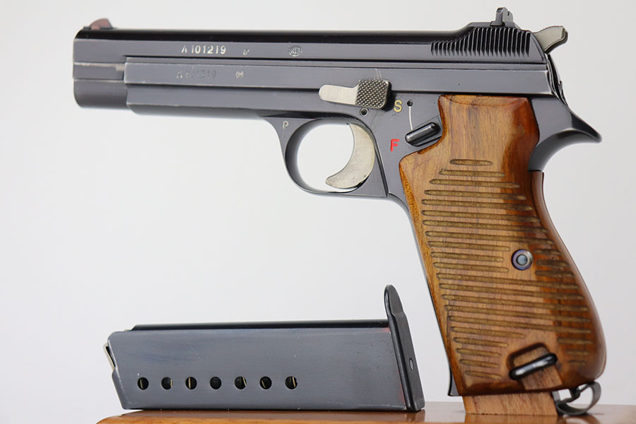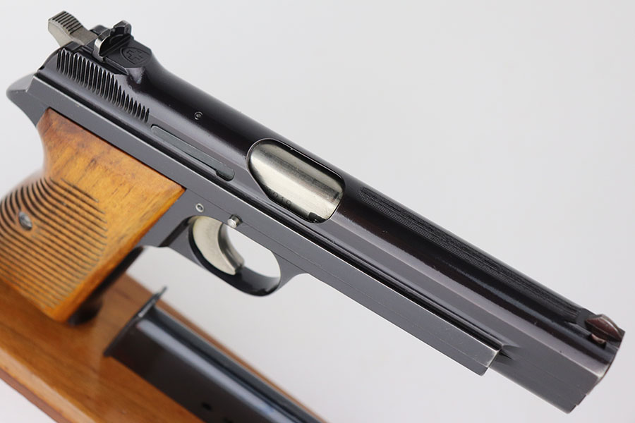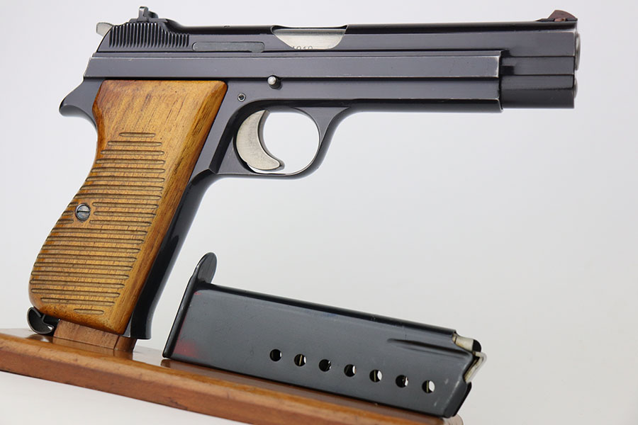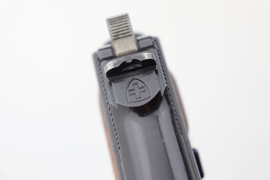 4/21/21 – This is a scarce, early SIG P49 that went to the Swiss Army. It was the 1219th pistol issued, and is all matching and original with 98-99% of the blue remaining. Mint bore and excellent walnut grips. The frame is ‘P’ proofed, indicating the Swiss Army later sold the gun to a private citizen. Hischier collection.