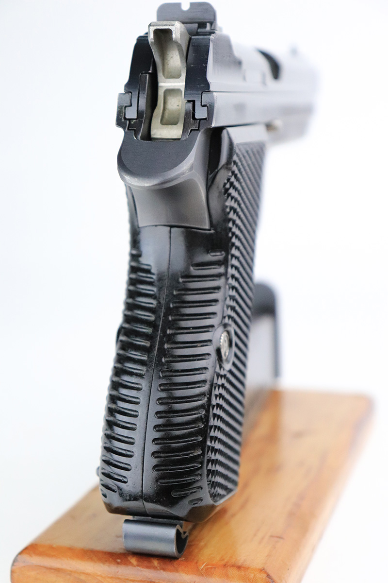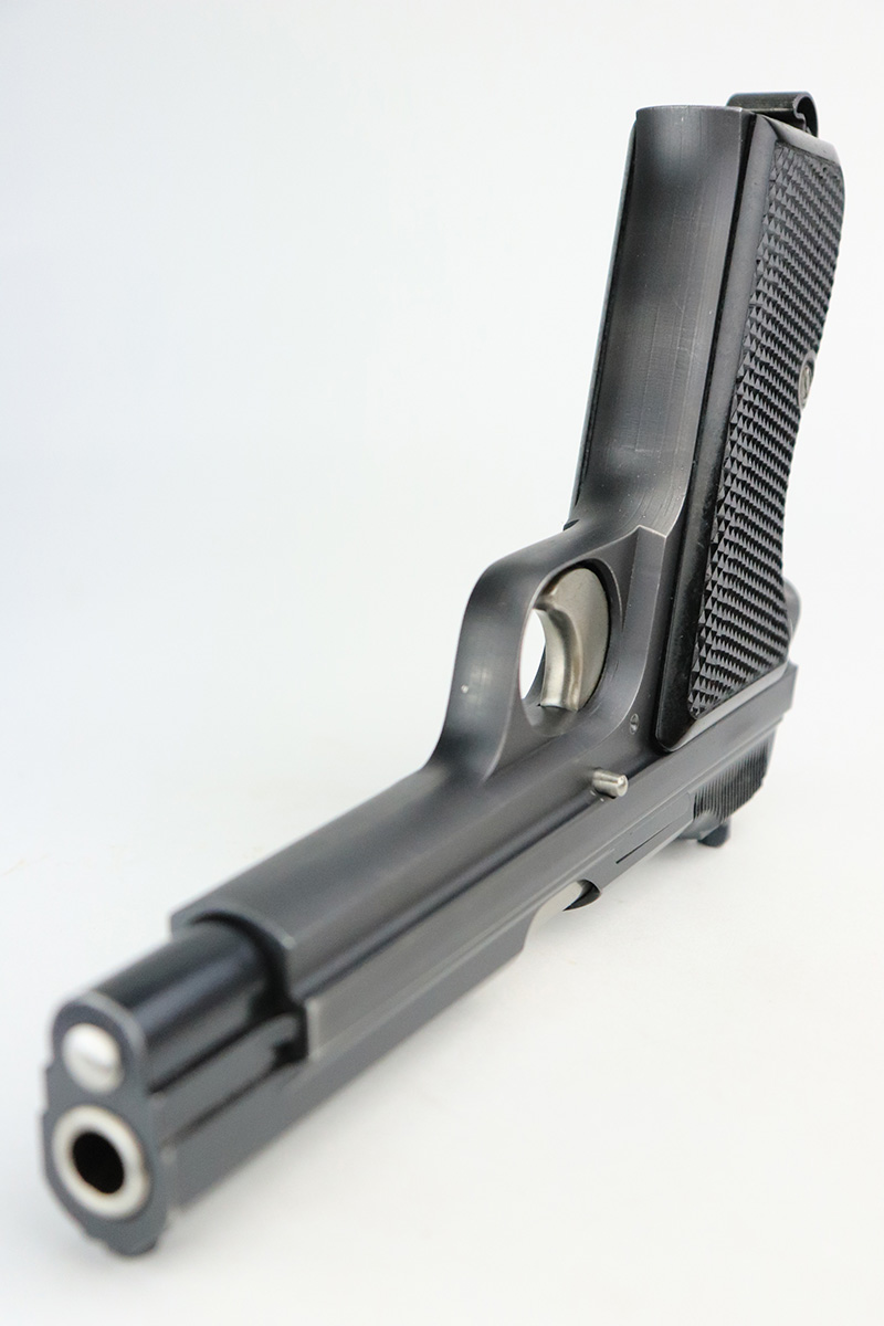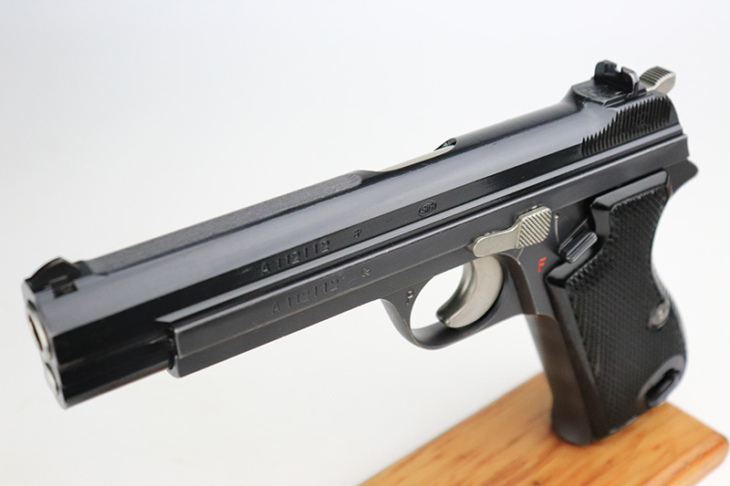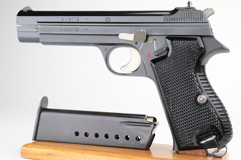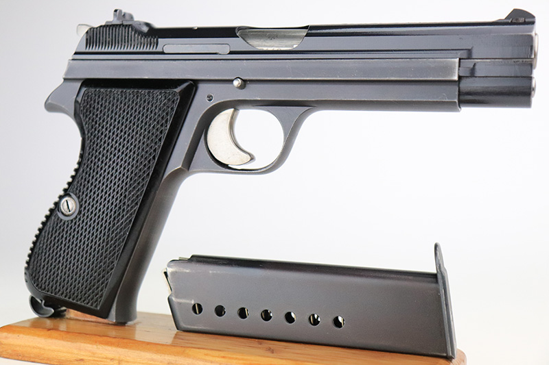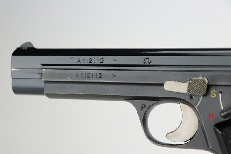 9/7/22 – This is a scarce, transitional SIG P49 that went to the Swiss Army. It is all matching and original with 98-99% of the blue remaining. Minty bore and excellent grips. The frame is ‘P’ proofed, indicating the Swiss Army later sold the gun to a private citizen. Correct, original magazine. No import marks.