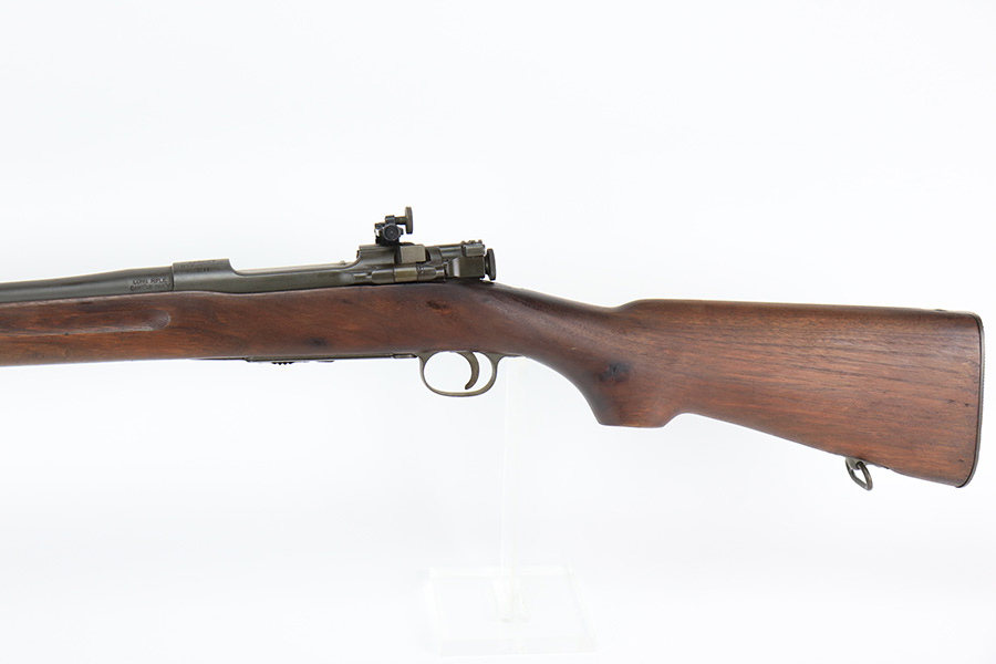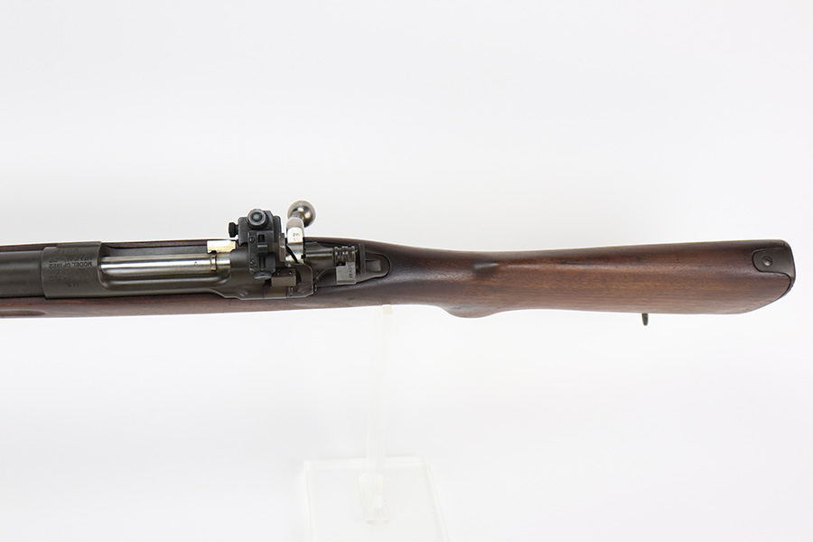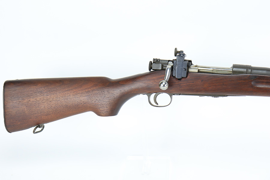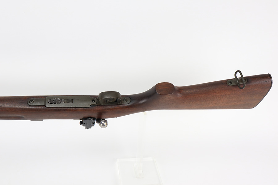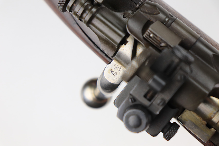 3/15/22 – This is a minty Springfield Armory M1922 MII that was made in the WW2-era. These were built as cadet training rifles, designed to mimic the M1903 Springfield. This particular example shows that the armory upgraded it from the MI, as the second ‘I’ was clearly added later. The parkerized finish rates at ~98%% with hardly any finish loss to mention. Minty bore and stock. Stock has just one tiny surface crack. Bolt action is buttery smooth. Handle is marked ‘NS’ and ‘M2’, and bolt is also marked ‘M2’.