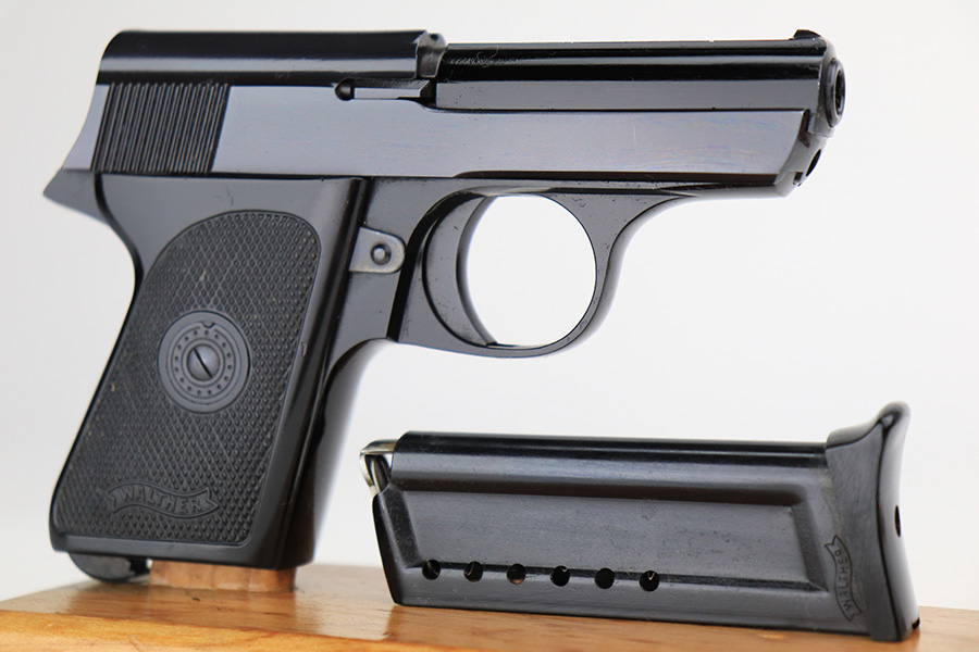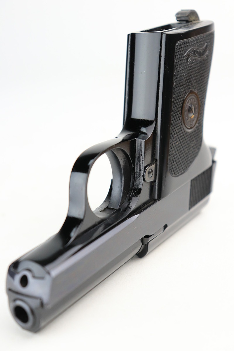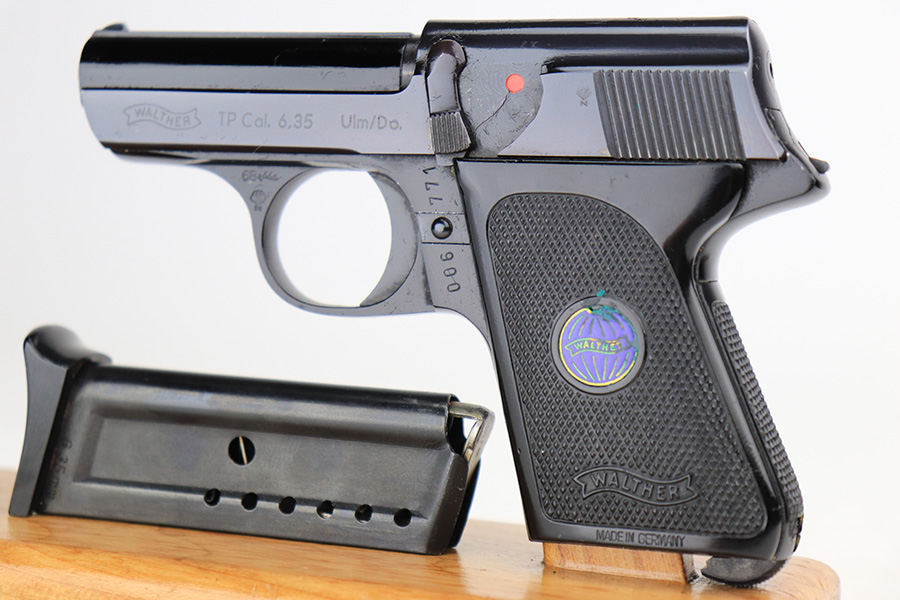 4/20/22 – This is a minty, original example of a scarce Walther Model TP from 1968. One of only ~11,000 produced in 6.35mm. No import marks, just a few minuscule surface scuffs. Mint bore, looks unfired. Original grips in excellent condition, and comes with finger extension magazine.