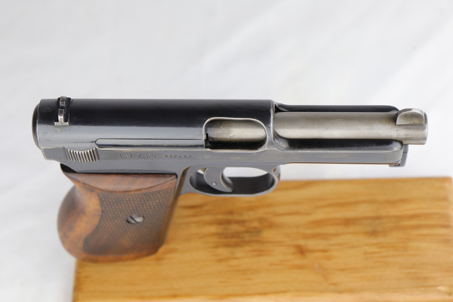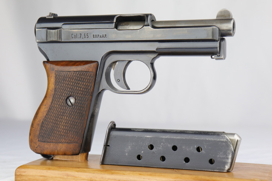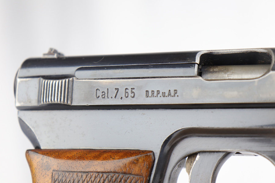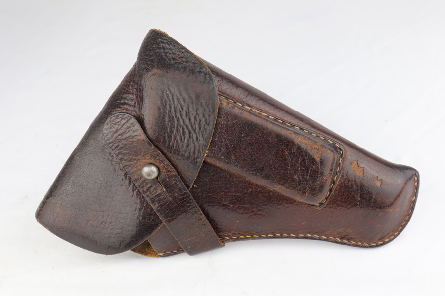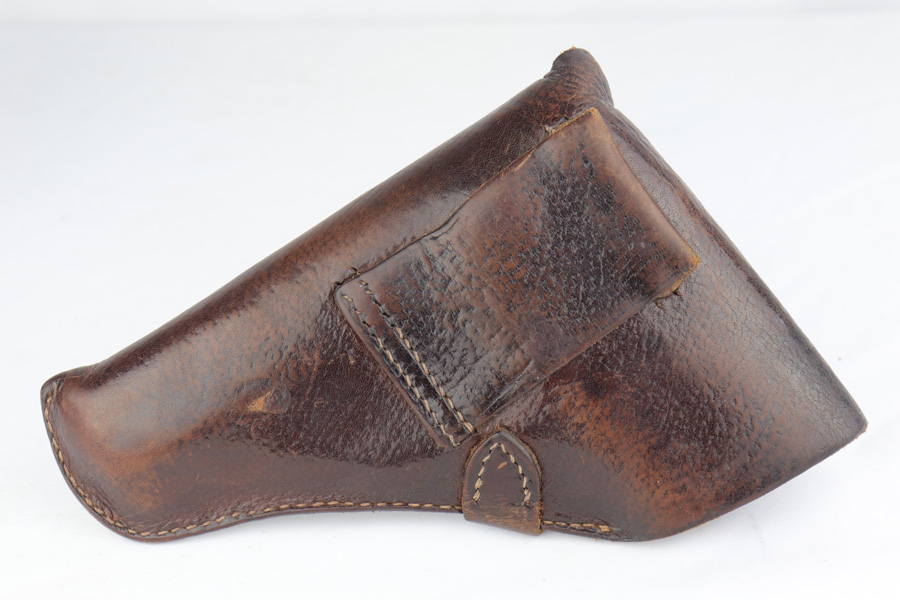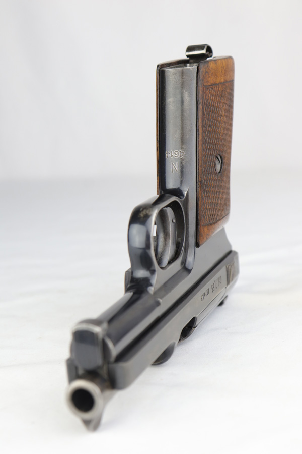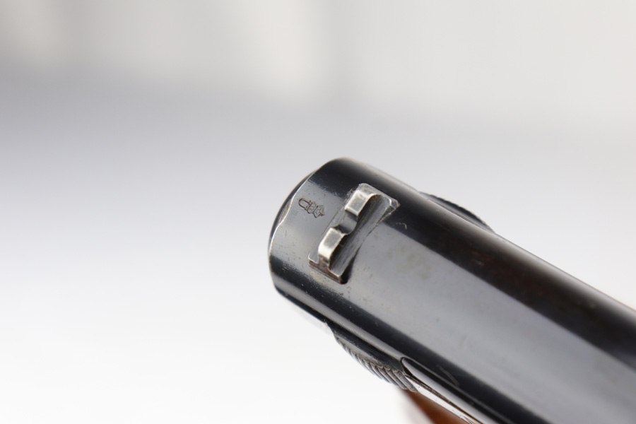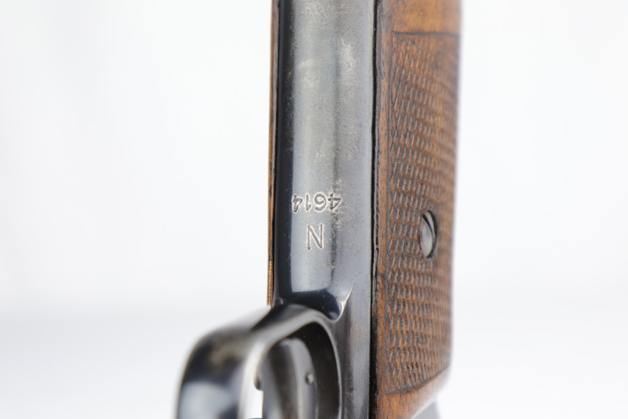 2/26/19 – This is a scarce, original 1934 Mauser rig that was Navy marked and issued. It is a variation 1 pistol, one of 8,000 produced, with N-property mark on front strap and Kriegsmarine Eagle on left side of the frame. This pistol retains 85-90% high-polish blue, with evenly distributed holster wear and patina. Excellent grip and nice, shiny bore with only minor frost. Crown/U proof on slide. This pistol comes with a rare and interesting Navy holster, which shows the Kriegsmarine Eagle as well as clear Akah proof. The holster is in very good condition with just minor flaking on the front.