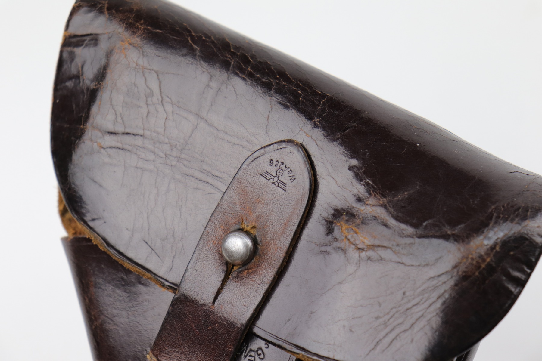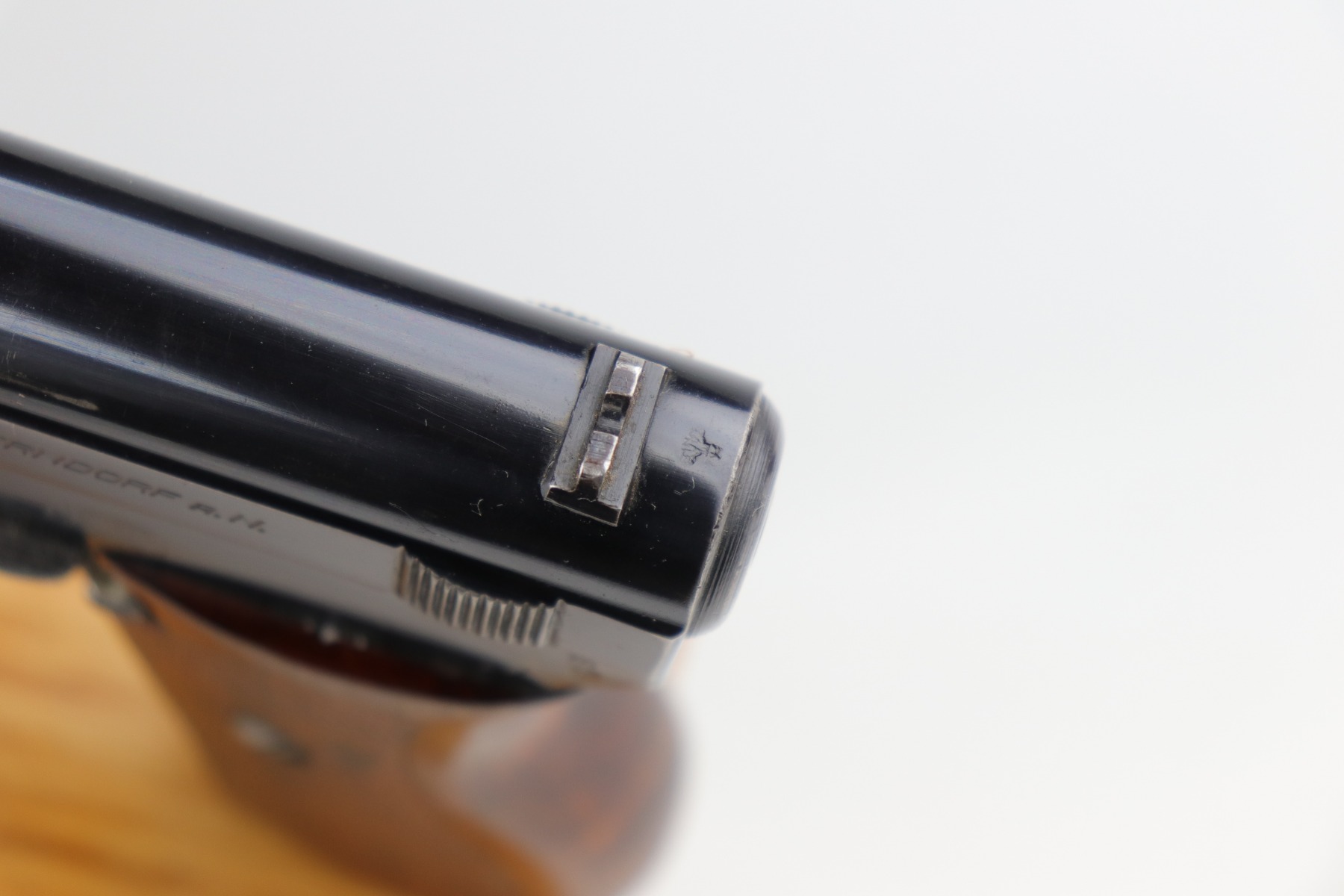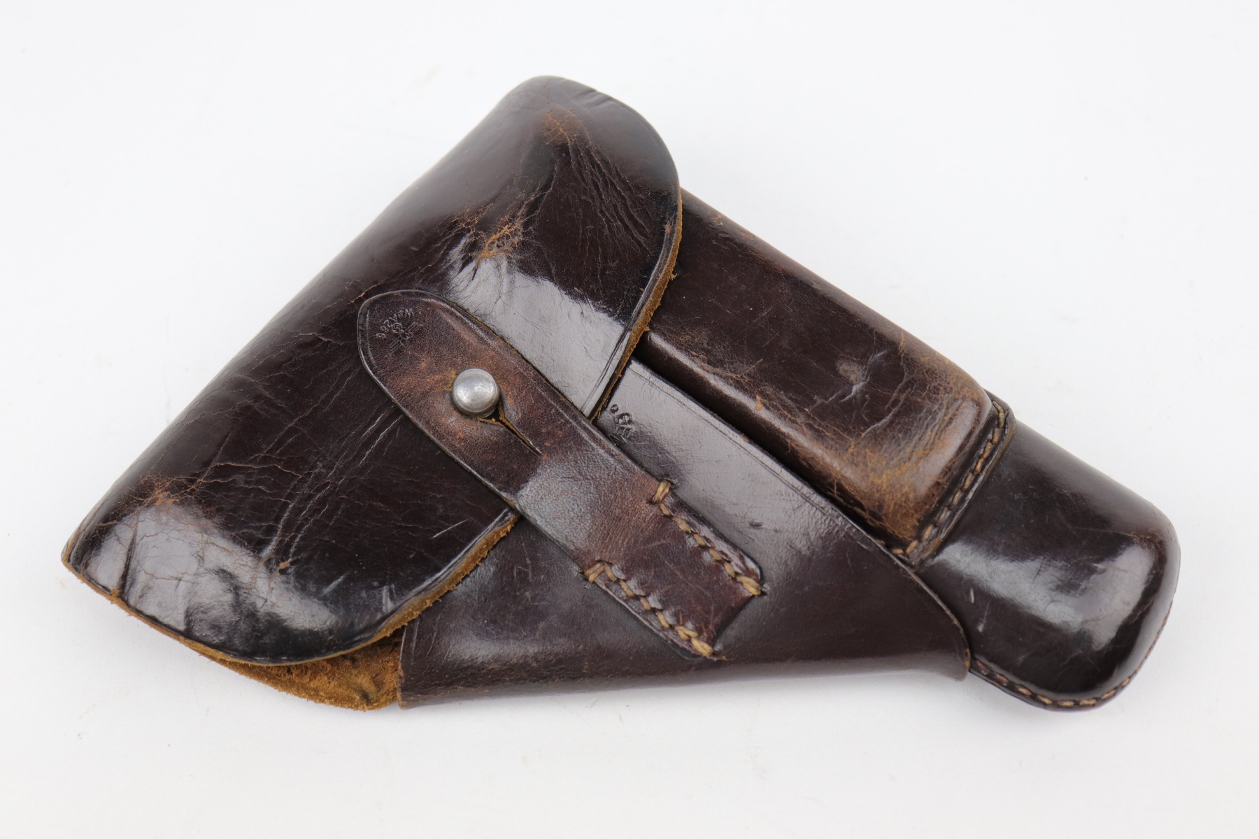 11/20/20 – This is a scarce variation nazi army issued Mauser model 1934. This gun would have been produced just before the factory switched over to HSC production, around 1940-1941. The pistol is proofed on the back left side of the frame with Eagle/655 and a test-fire eagle stamp. There were only about 8,000 of these pistols issued in this way. This pistol comes with a proper 1941-dated, waffenamt holster and two period-correct magazines. This particular gun has retained about 92-93% of its original bluing. There are areas of wear on the front strap, trigger guard, and on the high edges of the slide. Spotty brown patina on the front strap. It has an excellent period-correct grip. The bore is excellent – shiny with strong rifling. The action (racking the slide and pulling the trigger) is very tight. Might improve with a cleaning/oil.