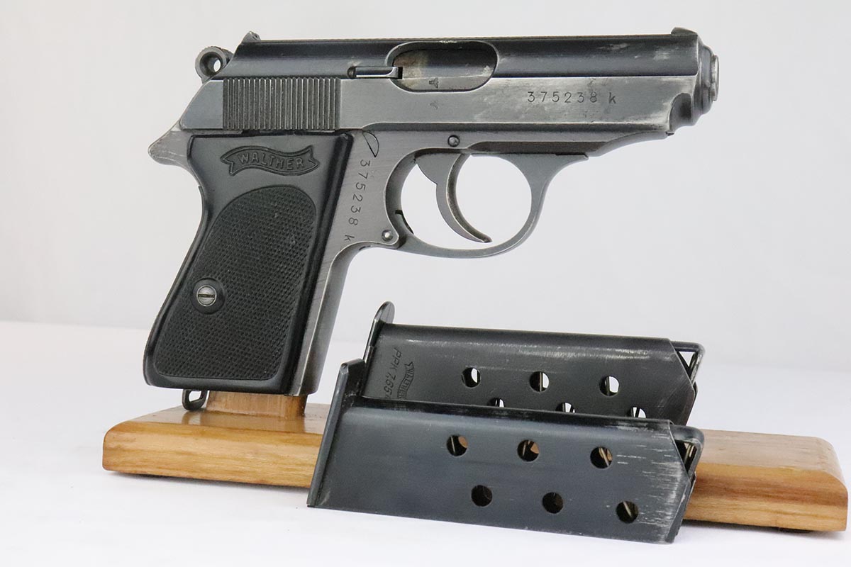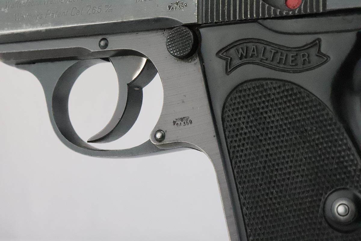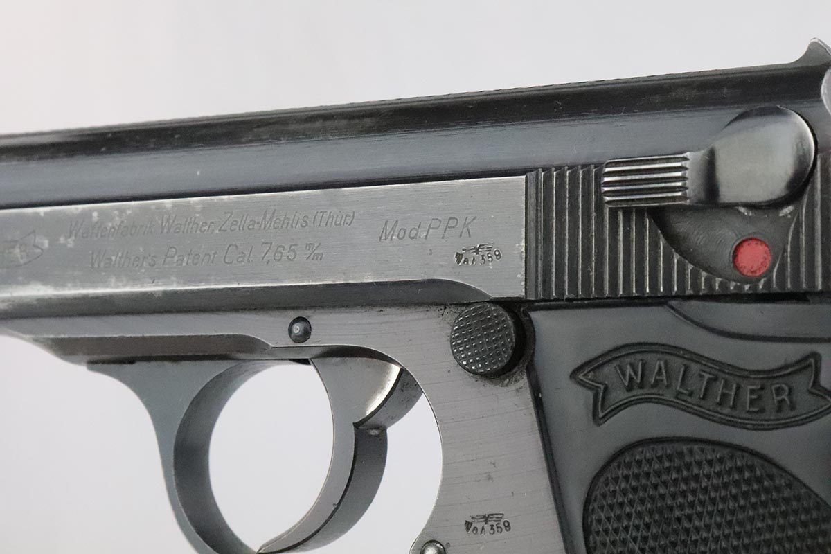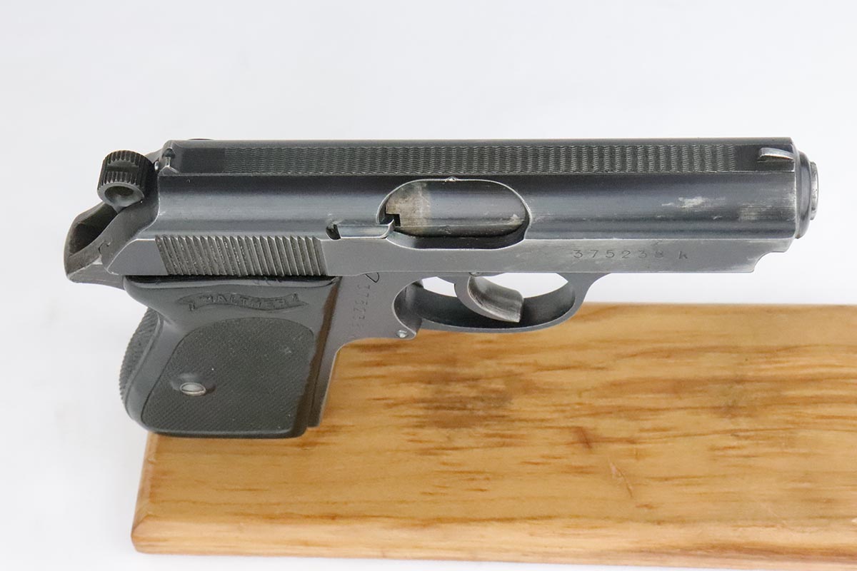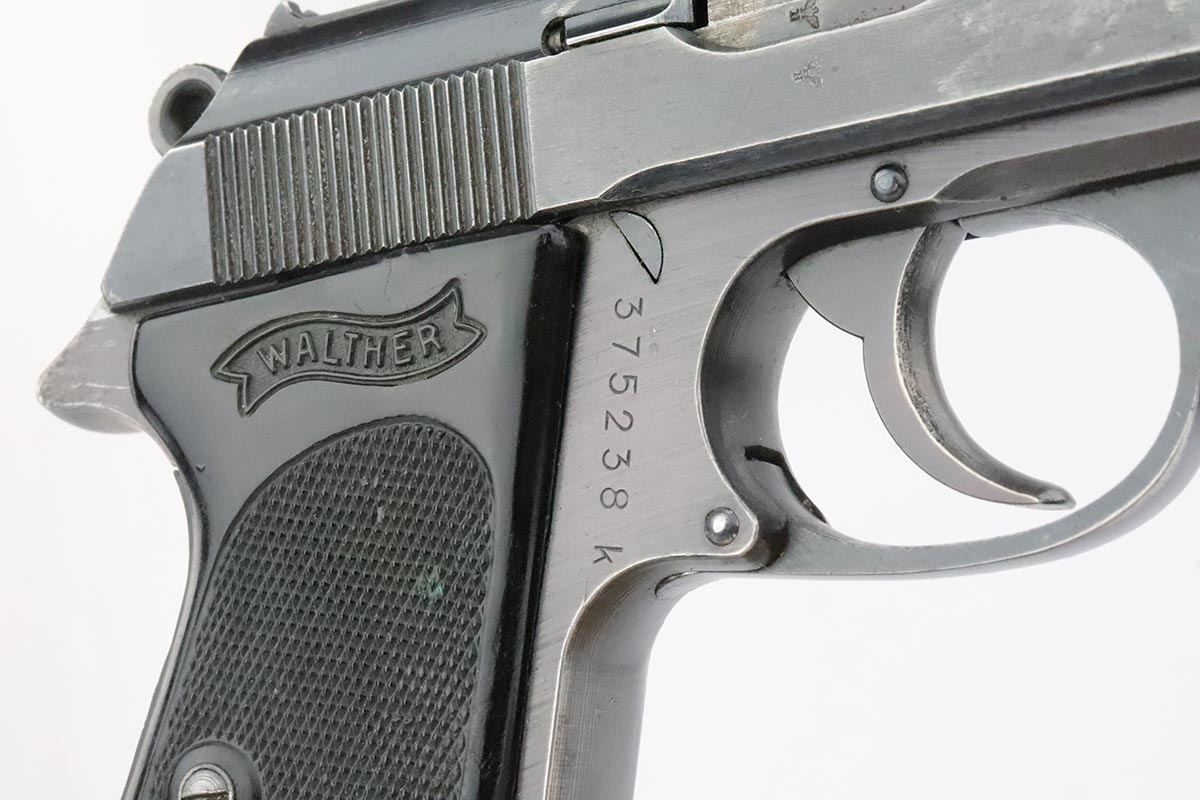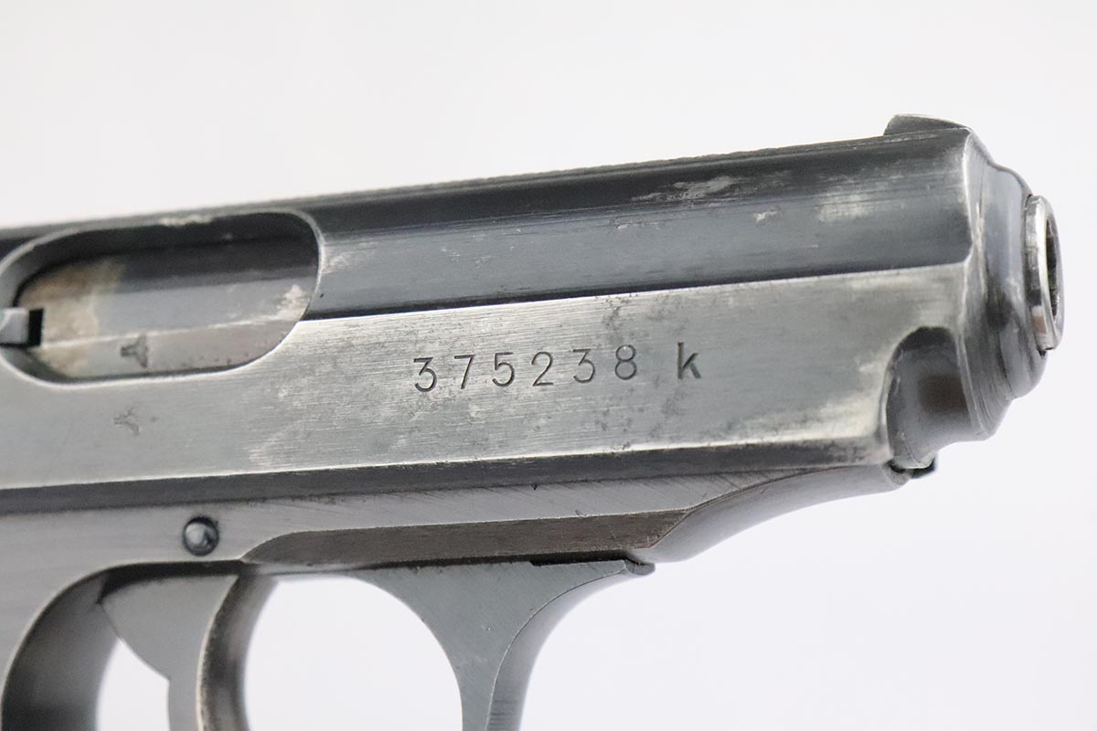 5/14/20 – This is a scarce Walther PPK that was issued to the German Army in 1942. It is all original and matching with honest thinning of the front grip strap and each side of the slide. Sharp waffenamts present on slide and frame. This is a third variation Army PPK, with 12,500 produced. Mint bore. Excellent one-piece black grip with no major cracks or chips, but a couple scratches on the right side. NOTE: The listing only comes with the magazine in the pistol, there is no spare.
