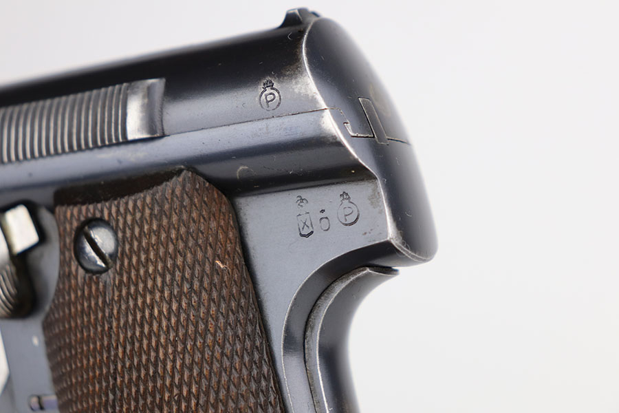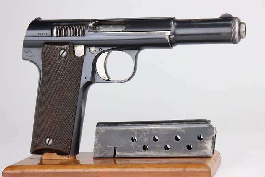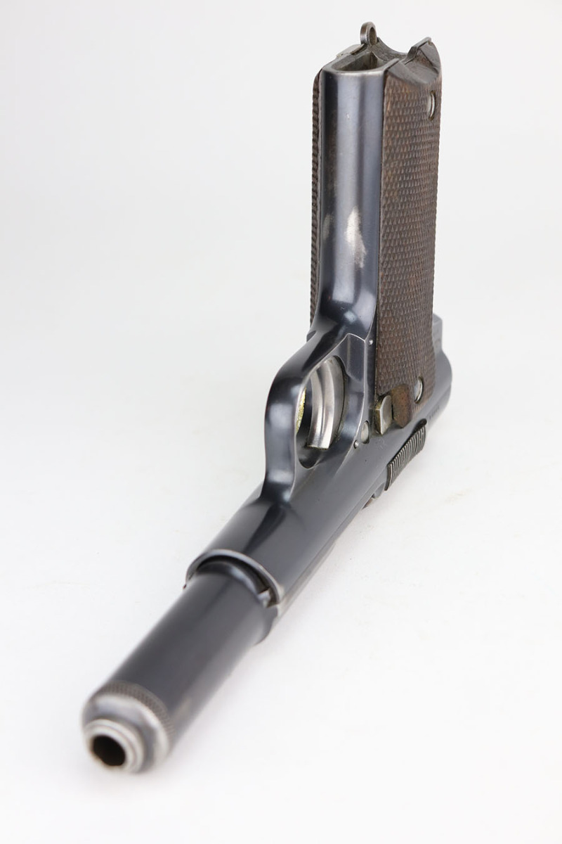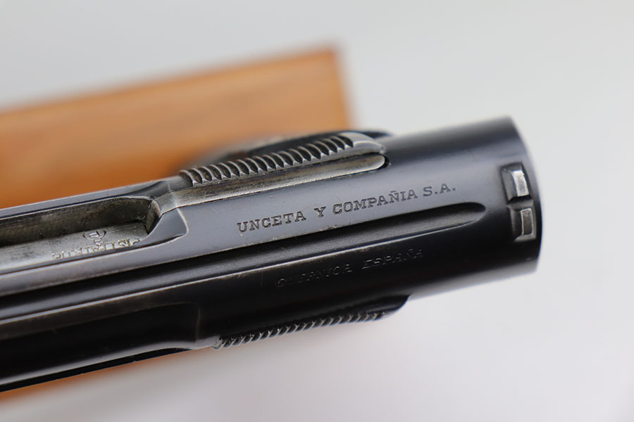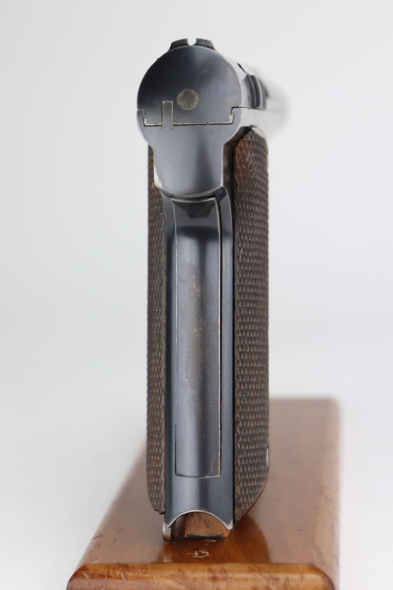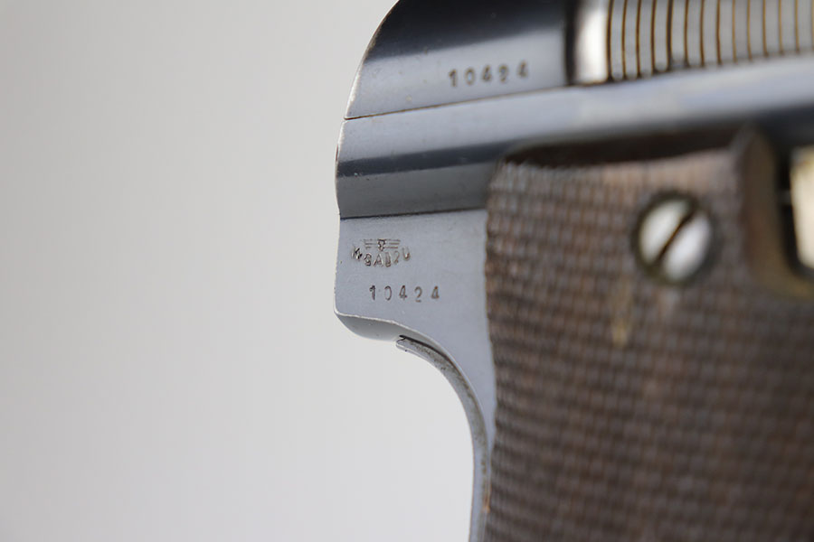 4/29/21 – This is a rare Astra 600 that was issued to the German military during World War II. This pistol was delivered on July 16th of 1944, which was the final shipment of Nazi marked Astra 600s, and is one of only 10,500 produced with Nazi acceptance stamp. It has 90-92% of the original blue with high edge wear throughout and the most pronounced finish loss on the front strap. Waffenamt on right side of frame. Minty bore and nice grips with no cracks or chips.