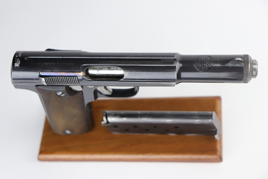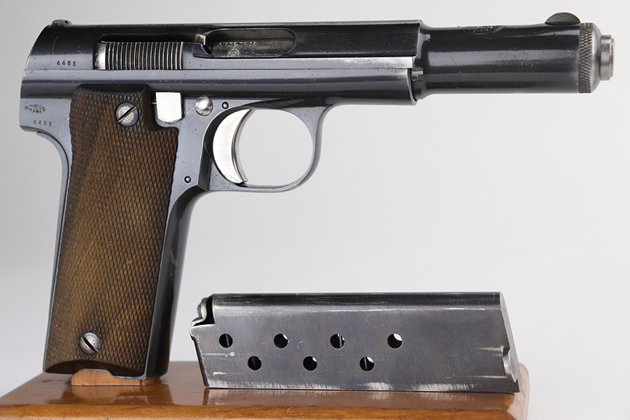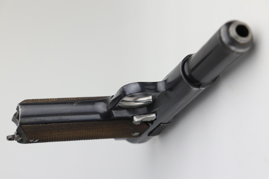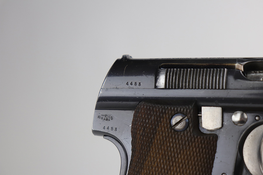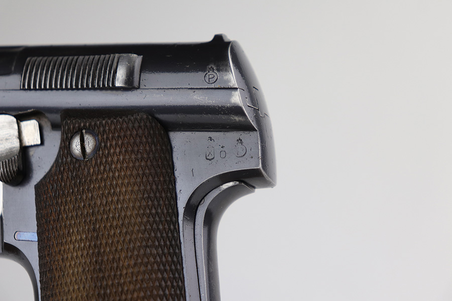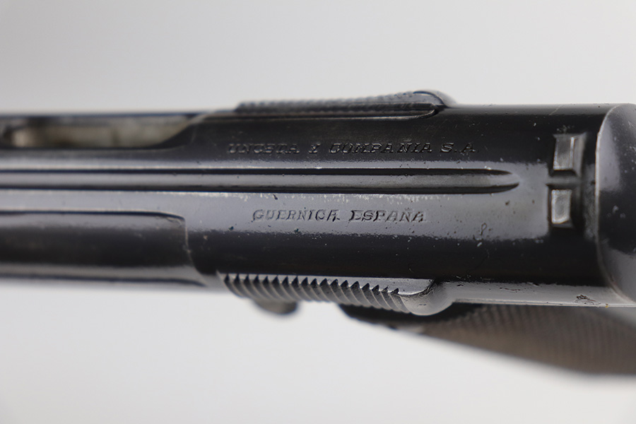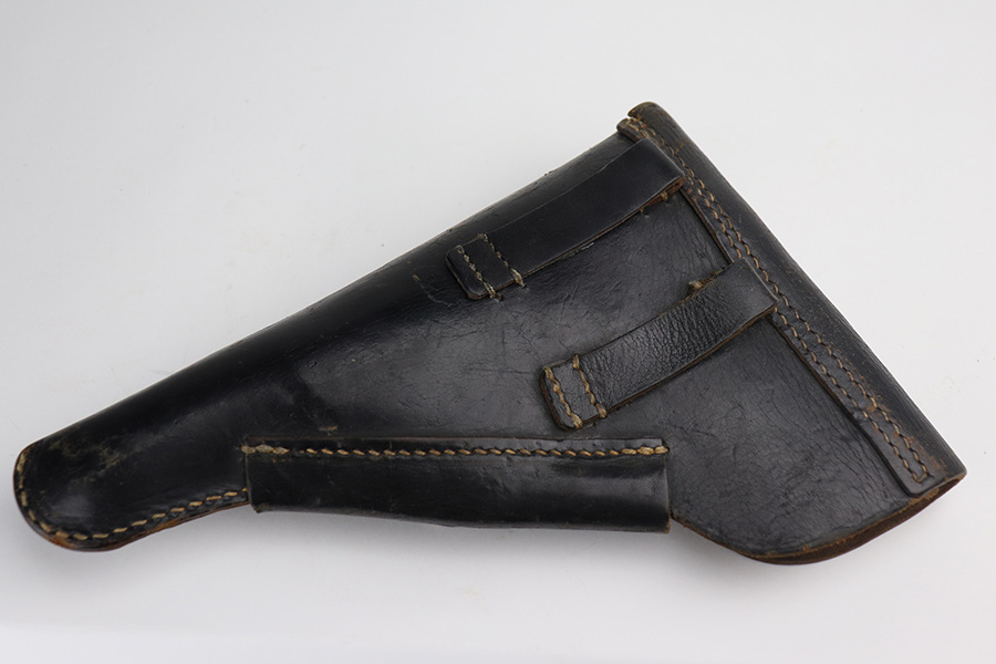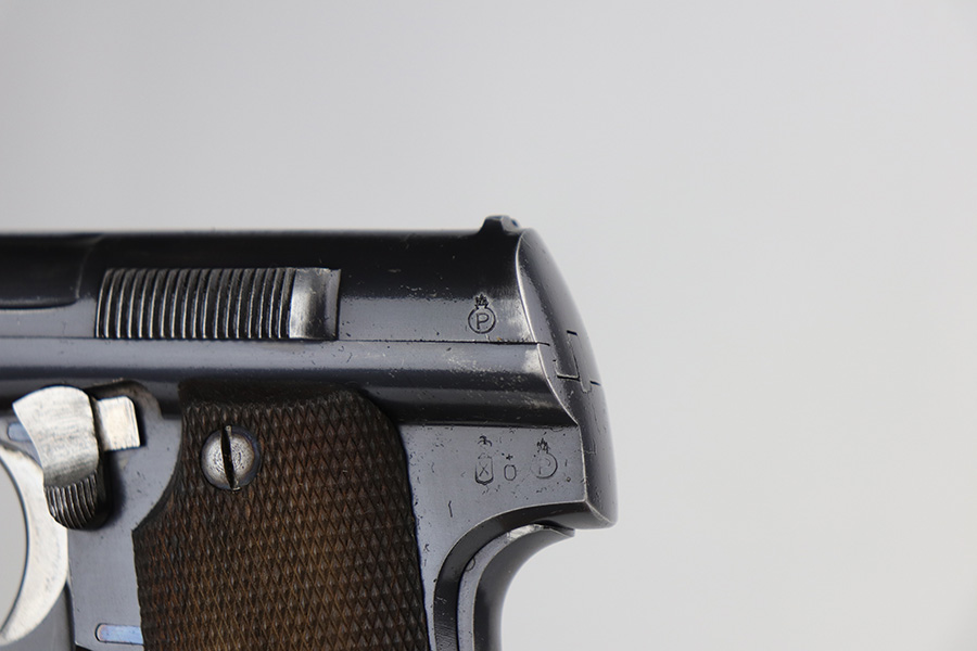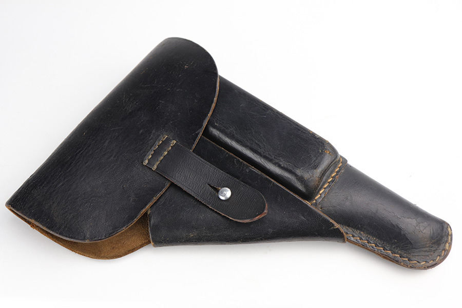 8/20/21 – This is a nice, honest example of a scarce Astra 600 rig that is waffen marked and part of the first Nazi contract for these pistols.  This pistol was delivered on June 23rd of 1944. It retains about 90-92% of the original blue with several minor spots of bluing loss, likely from rubbing against the holster.  These pistols were delivered to German Army via the Spanish-French border before it was closed by the Allies.  Only about 10,000 waffen marked Astra 600s were delivered before this point.  The pistol comes with a scarce, original holster that is ’44 dated with sharp waffenamt and ‘bdr’ maker mark.  Excellent grips and two correct magazines.  Bore is nice and shiny.
