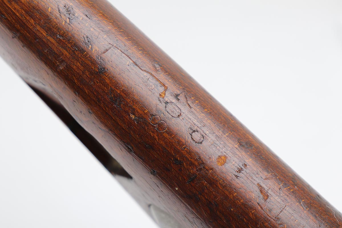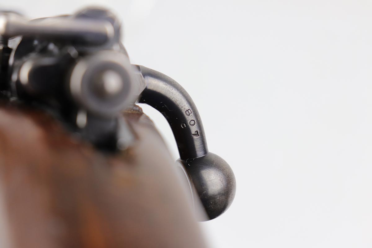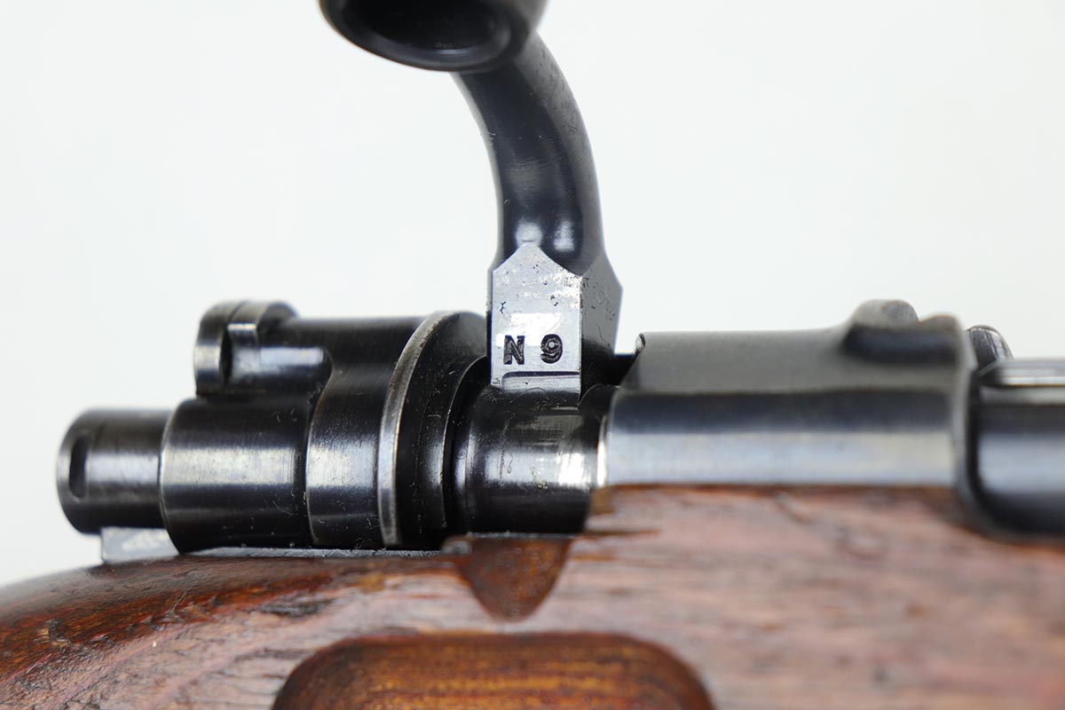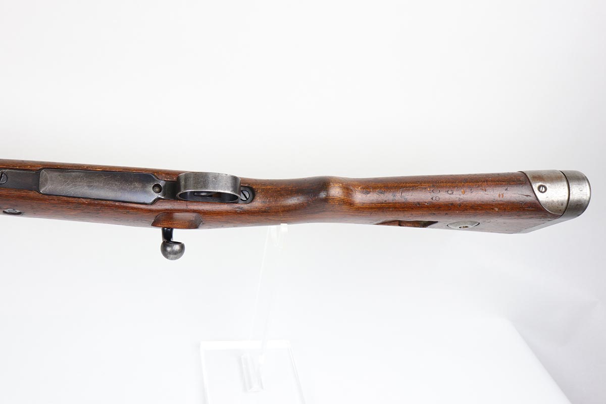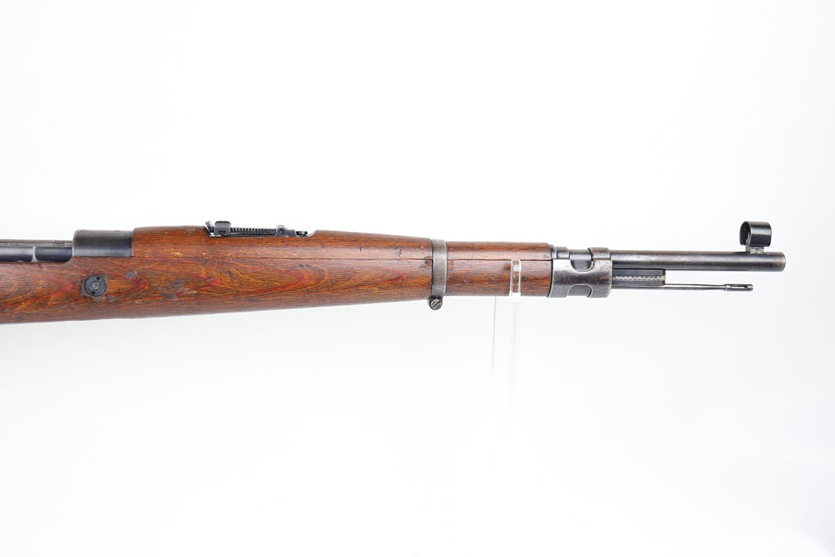 2/27/20 – This is a scarce German G33/40 Mountain carbine from World War II. This one was built at the Waffenwerke Brunn factory in Czechoslovakia and they are patterned after the Czech VZ 33. It was made in 1942 and maker coded “dot” with an early Walnut stock. Many of the G 33/40 carbines were issued to the German “Gebirgstruppen”, or Mountain Infantry, where the metal plate on the left side of the butt was used to keep the stock from harm while using the rifle for assistance in climbing. The rifle is all matching and original with about 70-80% blue remaining, showing general thinning on the bands and trigger assembly. Original stock is matching numbered to the receiver with waffenamt on the bottom of stock. The stock is fairly nice with just a few dings. The bore is terrific. Original cleaning rod and sight hood is included.