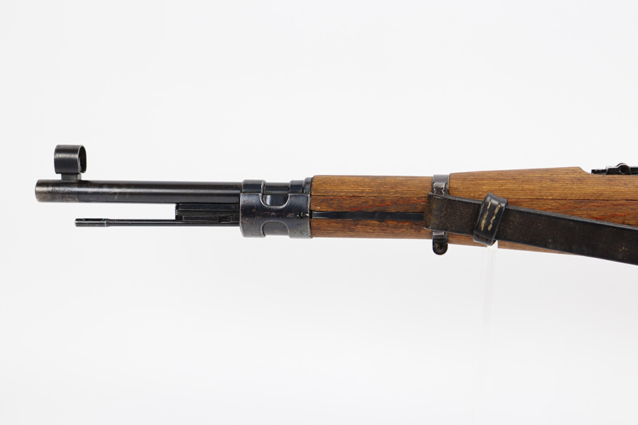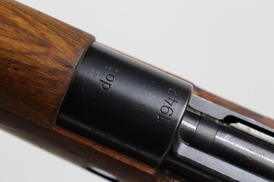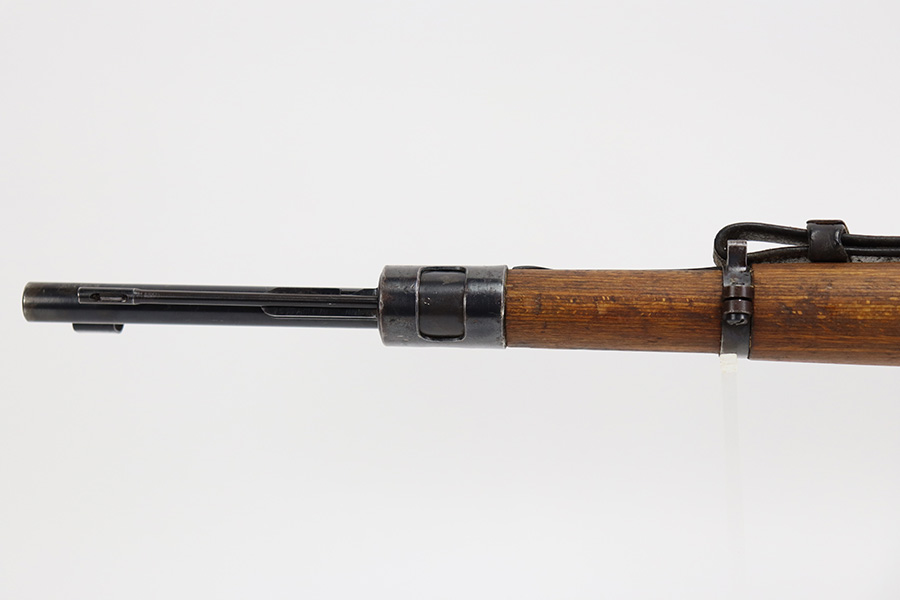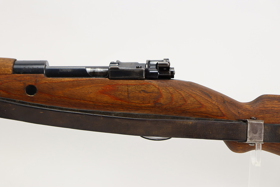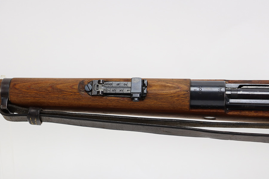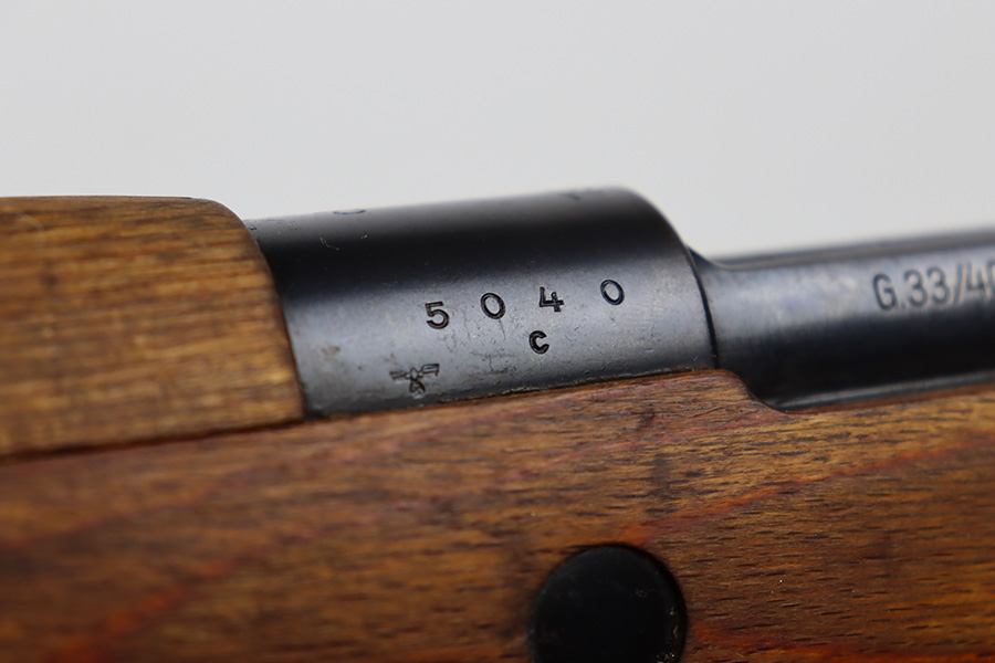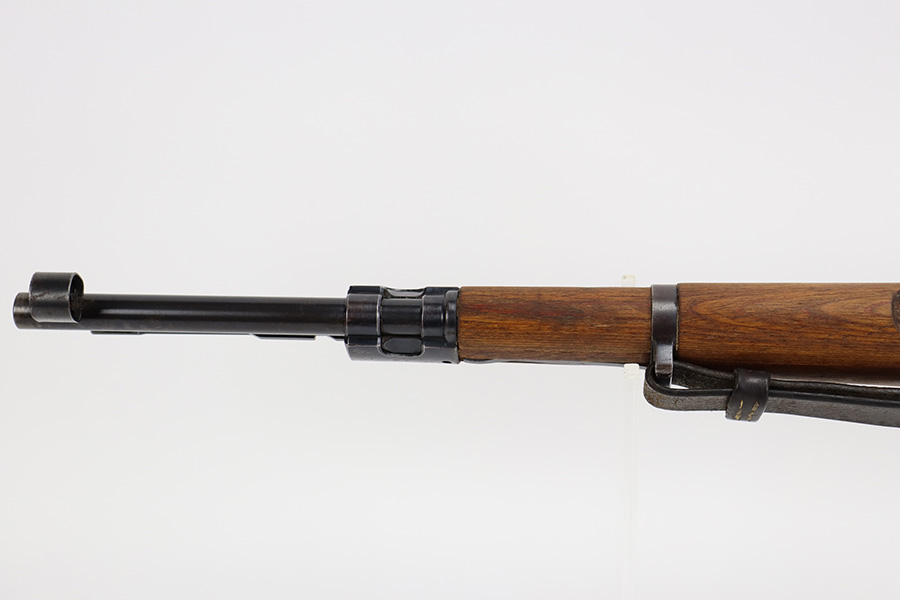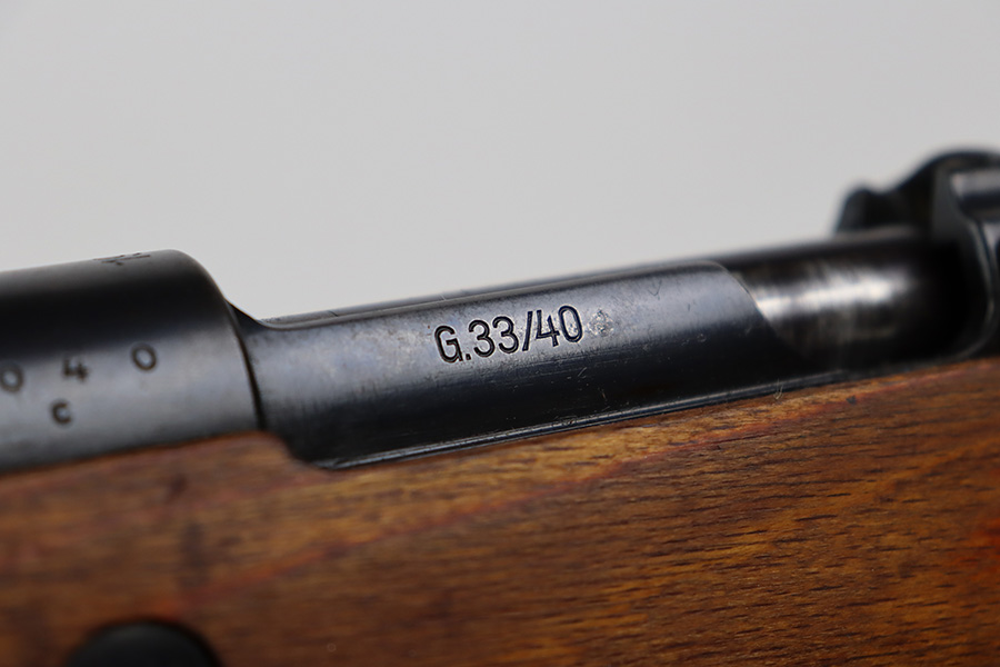 8/3/23 – This is a rare German G33/40 Mountain carbine from World War II. They were only built at the Brno factory in Czechoslovakia and they are patterned after the Czech VZ 33. This example was made in 1942 and has the ‘dot’ factory code on the receiver. Many of the G 33/40 carbines were issued to the German “Gebirgstruppen”, or Mountain Infantry, where the metal plate on the left side of the butt was used to keep the stock from harm while using the rifle for assistance in climbing. Everything is correct and matching on the rifle, but the stock was lightly sanded at some point. Serial number is still pretty clearly visible though. The bluing on the metal parts is all original and in very good condition. Minor wear on the barrel and bands, and a little more on the trigger group. Excellent, shiny bore. Comes with sight hood, cleaning rod and an original sling. Matching examples have become increasingly difficult to find and this is only the third we’ve had in the last three years.