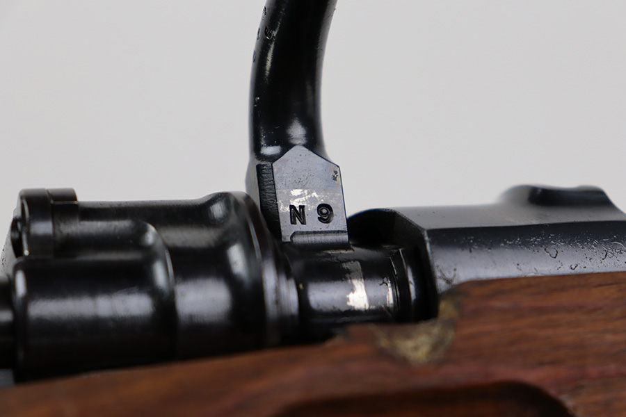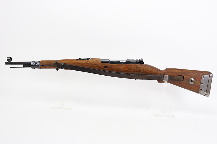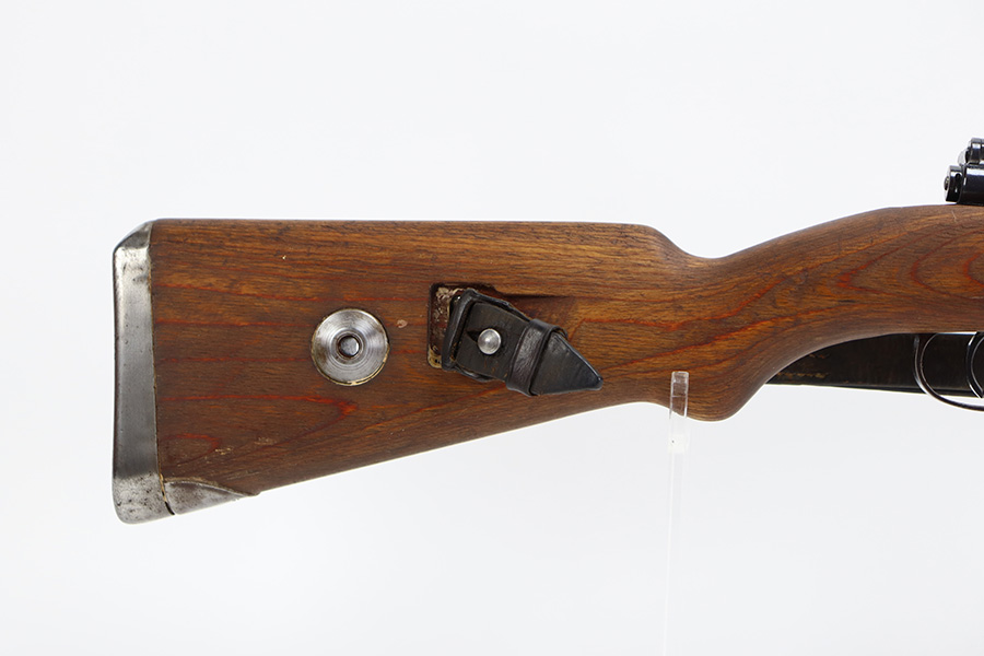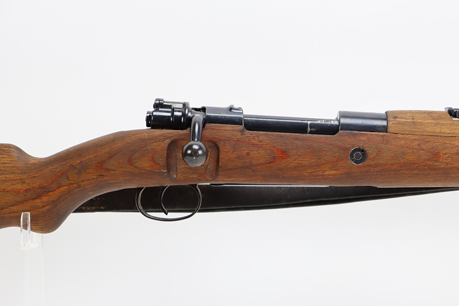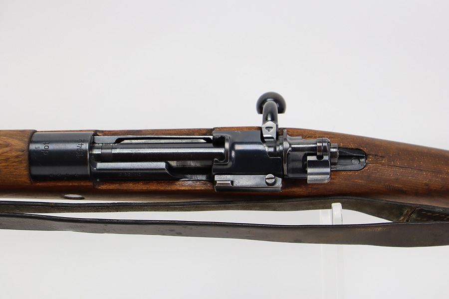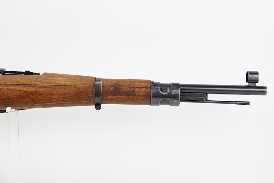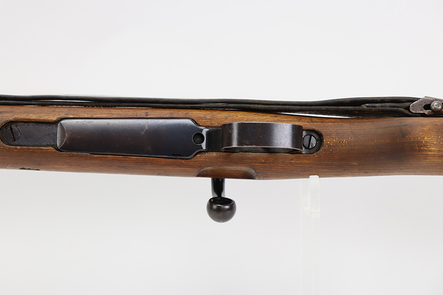 8/3/23 – This is a rare German G33/40 Mountain carbine from World War II. They were only built at the Brno factory in Czechoslovakia and they are patterned after the Czech VZ 33. This example was made in 1942 and has the ‘dot’ factory code on the receiver. Many of the G 33/40 carbines were issued to the German “Gebirgstruppen”, or Mountain Infantry, where the metal plate on the left side of the butt was used to keep the stock from harm while using the rifle for assistance in climbing. Everything is correct and matching on the rifle, but the stock was lightly sanded at some point. Serial number is still pretty clearly visible though. The bluing on the metal parts is all original and in very good condition. Minor wear on the barrel and bands, and a little more on the trigger group. Excellent, shiny bore. Comes with sight hood, cleaning rod and an original sling. Matching examples have become increasingly difficult to find and this is only the third we’ve had in the last three years.