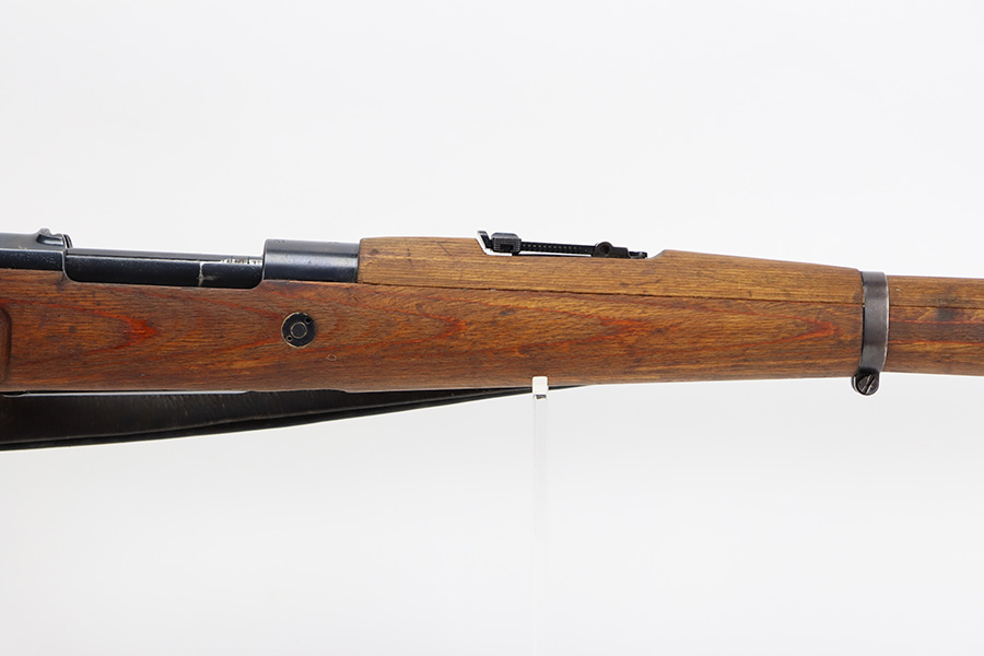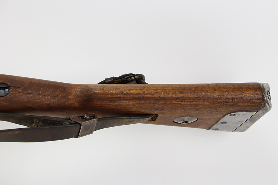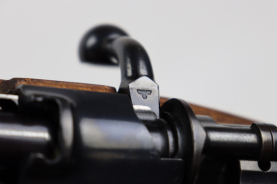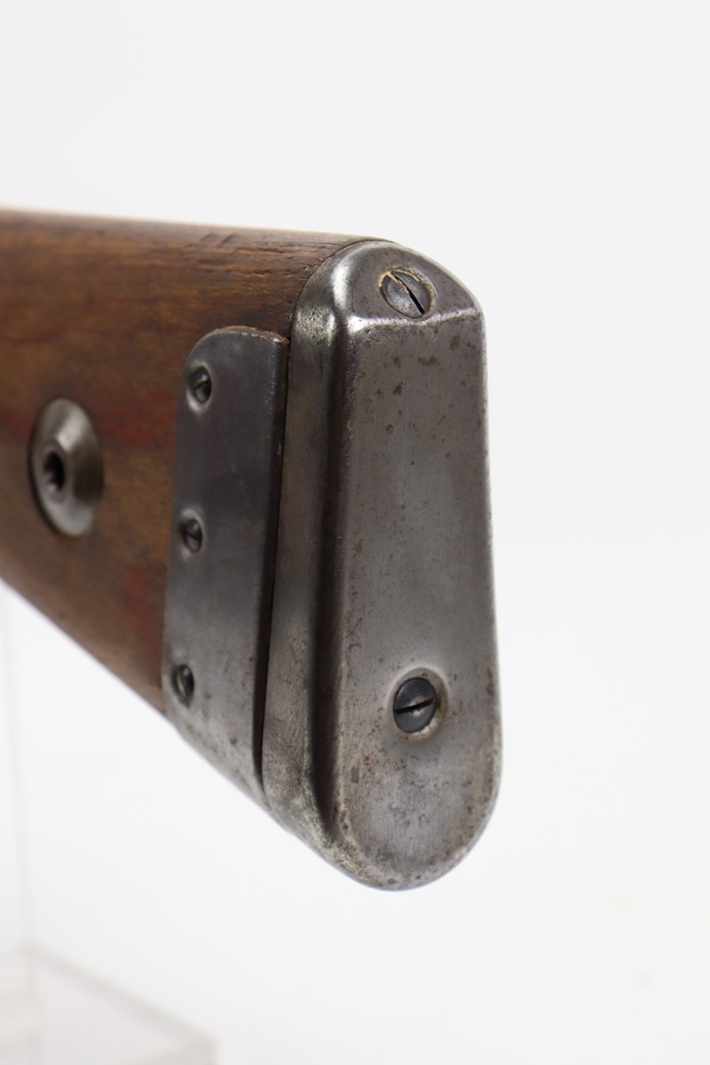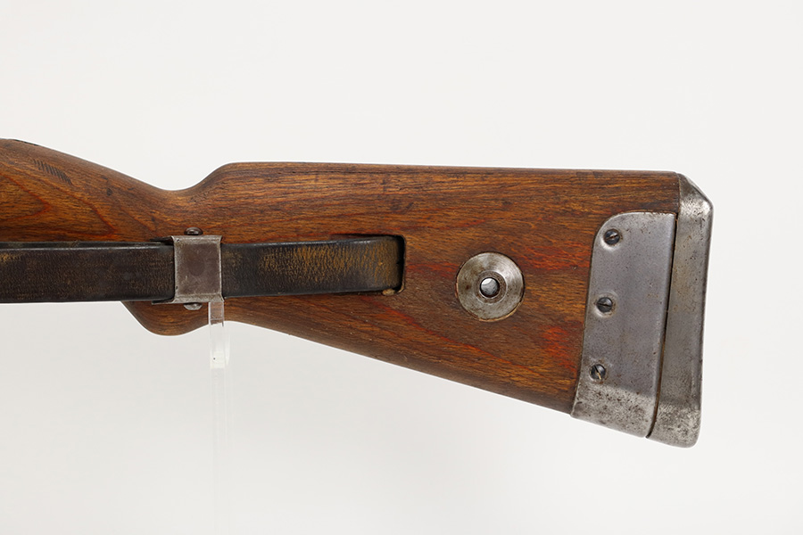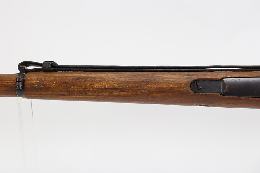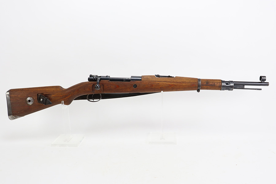 8/3/23 – This is a rare German G33/40 Mountain carbine from World War II. They were only built at the Brno factory in Czechoslovakia and they are patterned after the Czech VZ 33. This example was made in 1942 and has the ‘dot’ factory code on the receiver. Many of the G 33/40 carbines were issued to the German “Gebirgstruppen”, or Mountain Infantry, where the metal plate on the left side of the butt was used to keep the stock from harm while using the rifle for assistance in climbing. Everything is correct and matching on the rifle, but the stock was lightly sanded at some point. Serial number is still pretty clearly visible though. The bluing on the metal parts is all original and in very good condition. Minor wear on the barrel and bands, and a little more on the trigger group. Excellent, shiny bore. Comes with sight hood, cleaning rod and an original sling. Matching examples have become increasingly difficult to find and this is only the third we’ve had in the last three years.