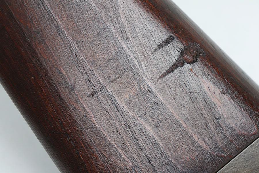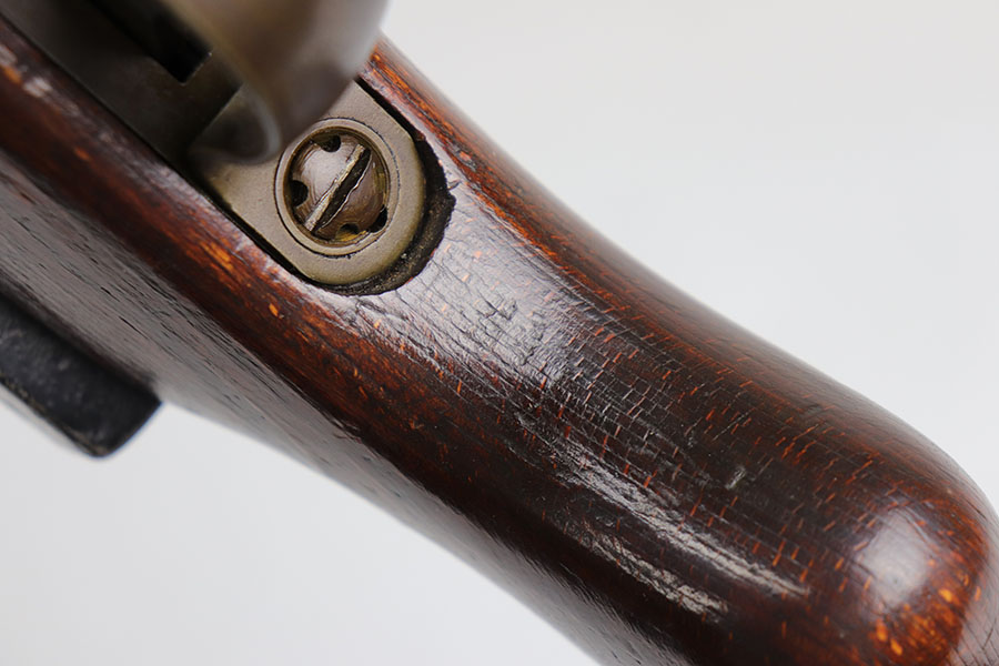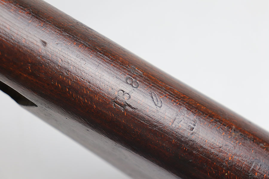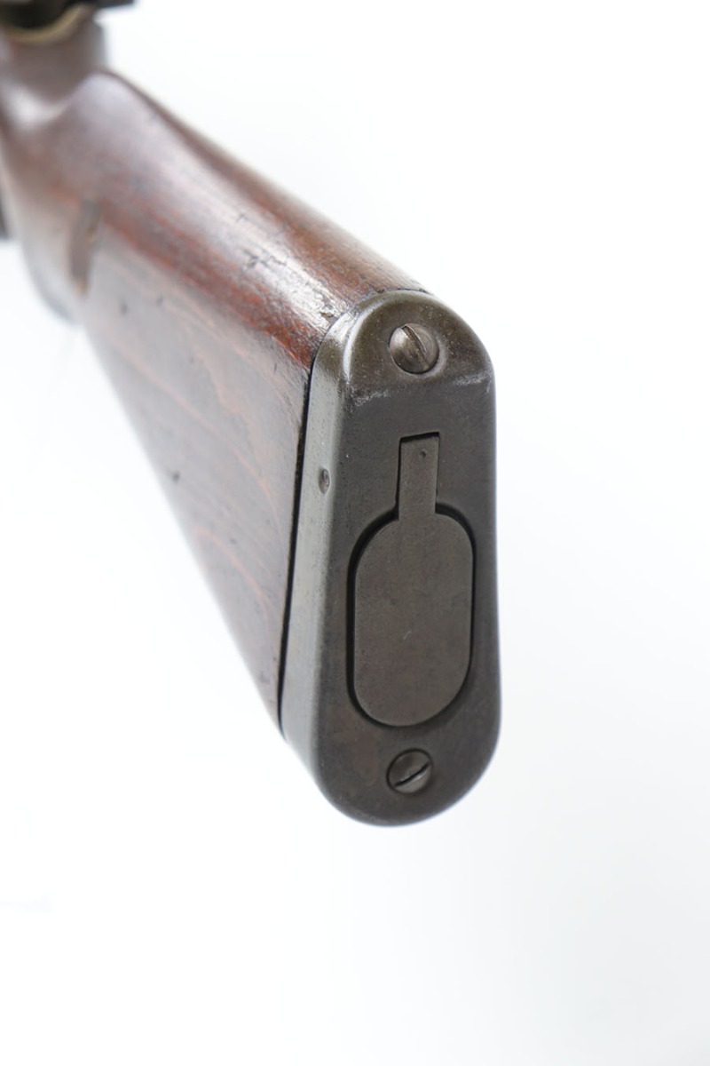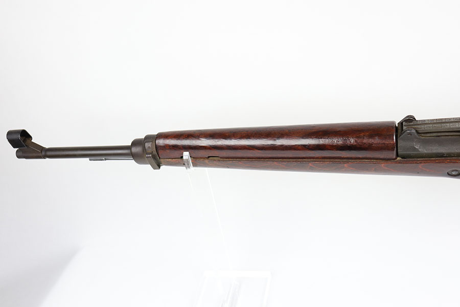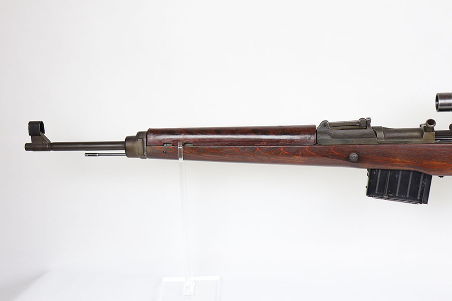 3/31/20 – This is a scarce Nazi G.43 sniper rifle that was made in 1944 at the Berlin Lubecker factory, though likely actually assembled in early 1945. It has dual-tone metal parts with a mix of phosphate and blued pieces. The finish on the receiver and barrel is excellent, while front band trigger assembly show some patina and oxidation. All matching numbers, including the stock. Stock has a notable chip on the right side of it, and a couple of waffenamts that are a little faint. No dust cover on the bolt. Original ZF4 scope with pretty clear optics. The mount appears original and late war with a black painted finish similar to the SACM M1935A. Terrific bore. Magazine marked ‘aye’.