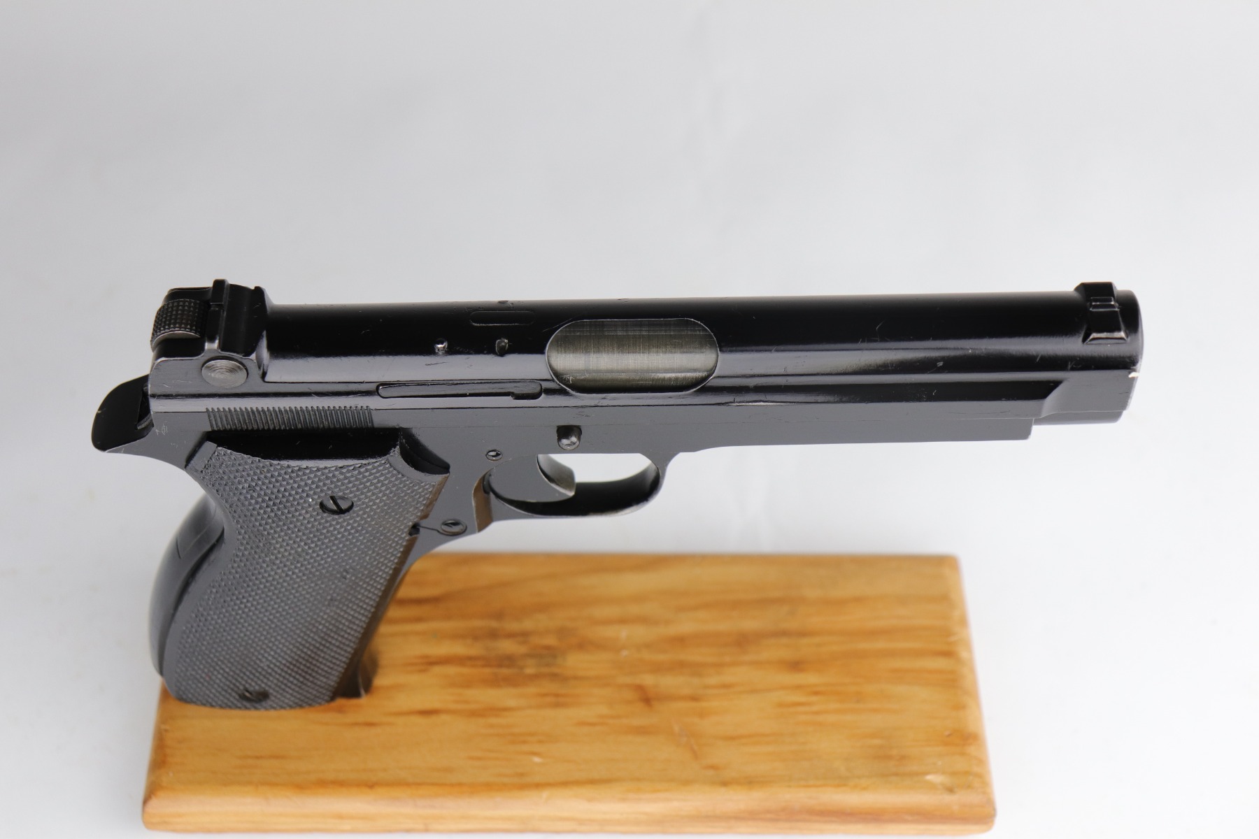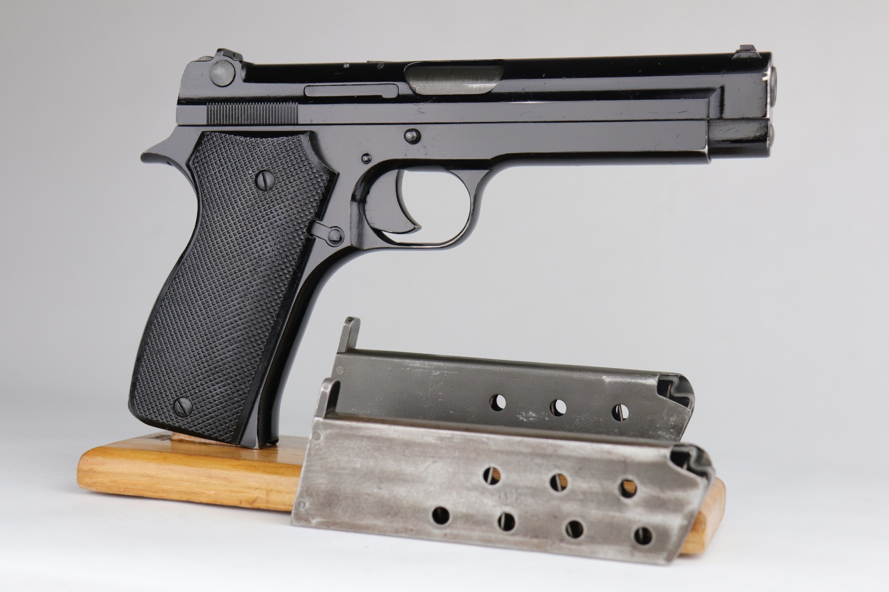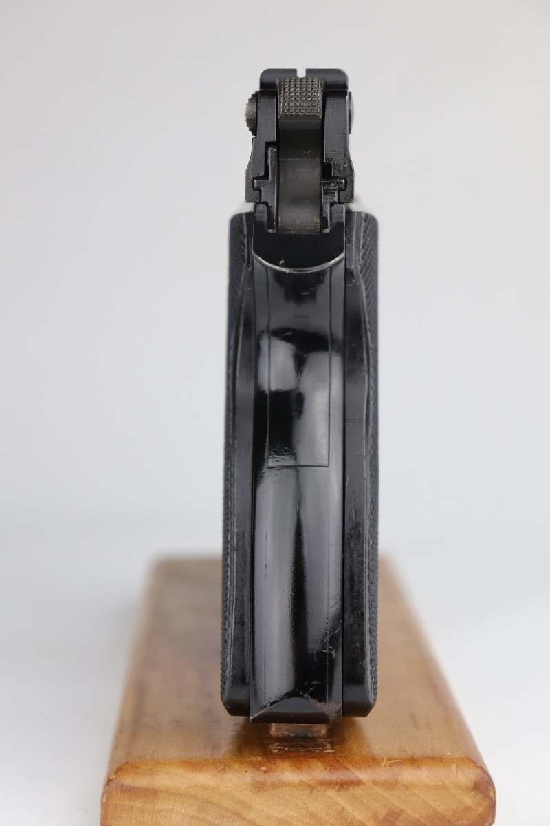 7/10/20 – This is a scarce S.A.C.M. M1935A that was issued to the German Army in the early 1940s. It’s all original with about 98% of the baked, black finish remaining. All major surface areas show minor wear or scuffs. The grips are excellent. The bore is very nice – shiny with strong rifling. It comes with two period correct magazines. It also comes with one box of original ammo.