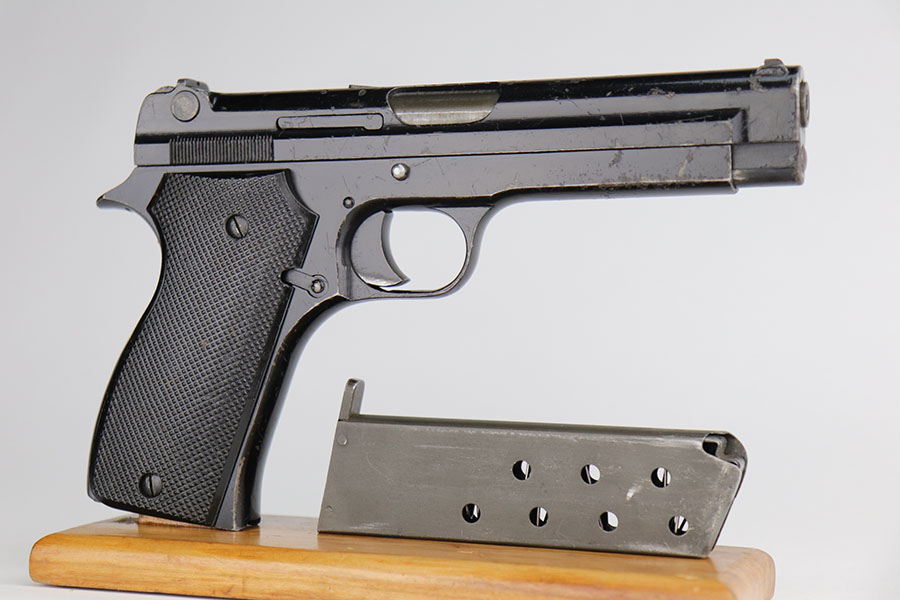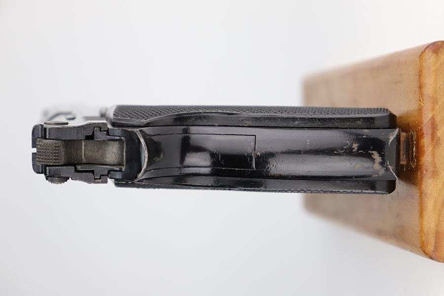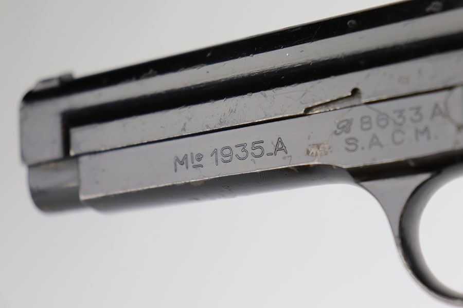 5/25/21 – This is an all original M1935A, manufactured by SACM (Societe Alsacienne Construction Mecanique) in Cholet, France. It is Nazi-marked E/WaA251 on the left side of the slide, making this the more common 2nd variation model of these pistols. Overall, they remain fairly scarce for German Army pistols of that time, with only about ~24,000 produced. The serial dates this one to 1942-43. The original finish rates at about 90% with some minor flaking in various areas. Excellent grips with minor smoothing on the left panel. Bore is shiny with strong rifling but some minor pitting in the grooves. Comes with free COA.