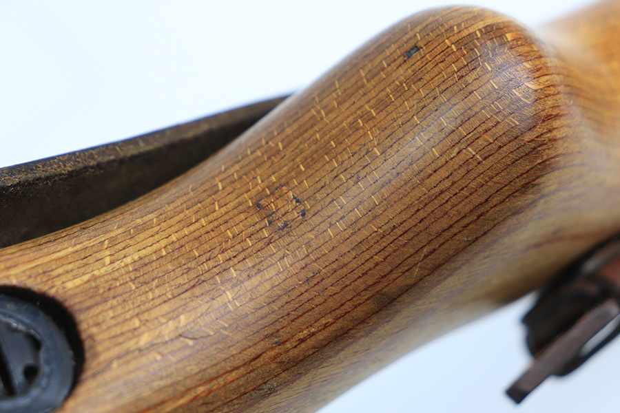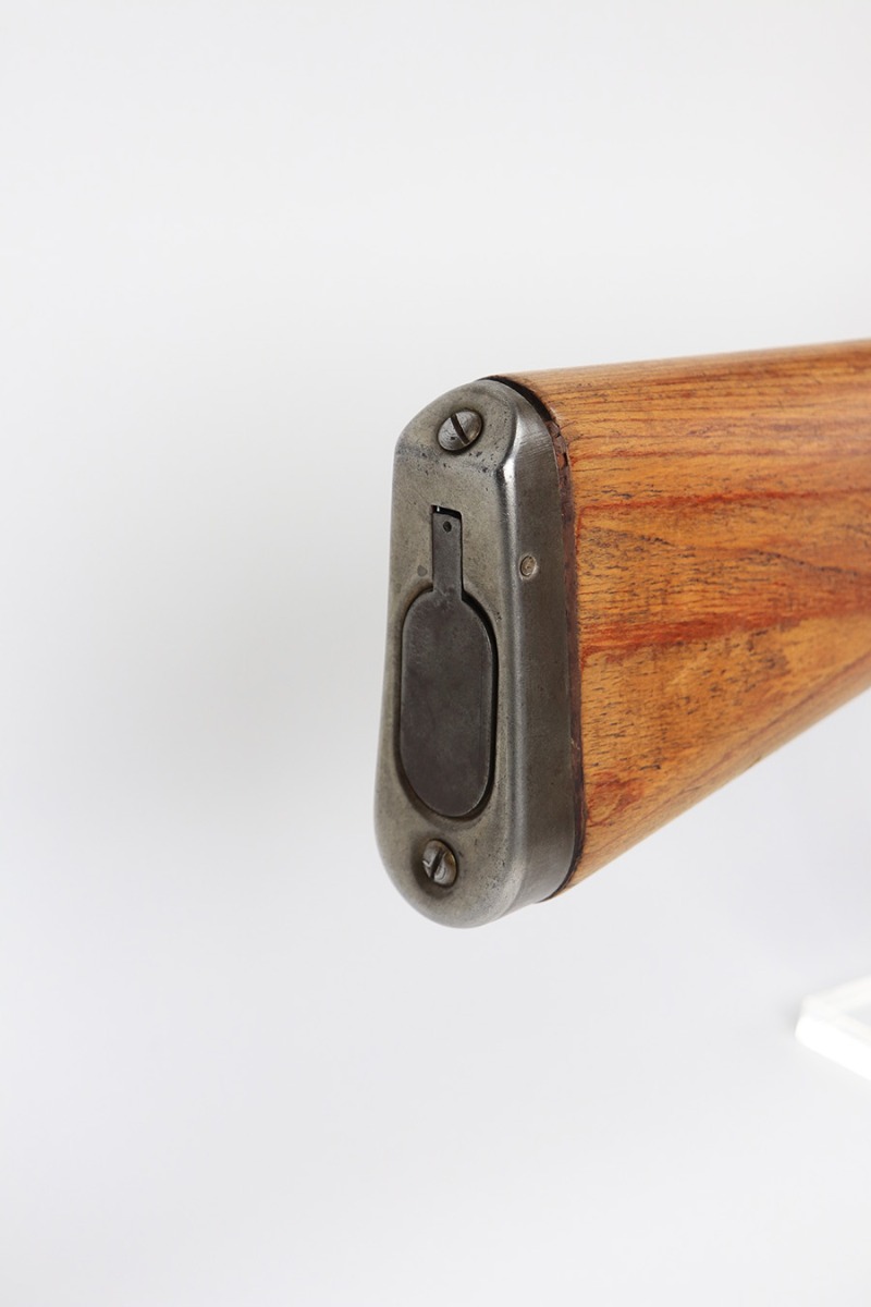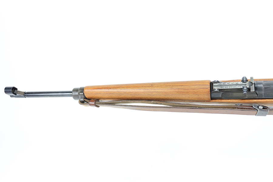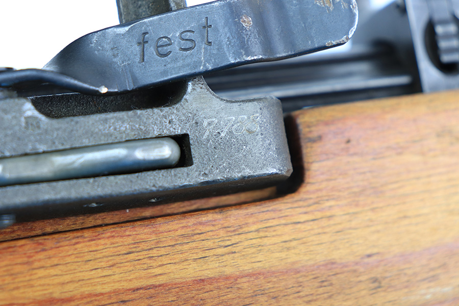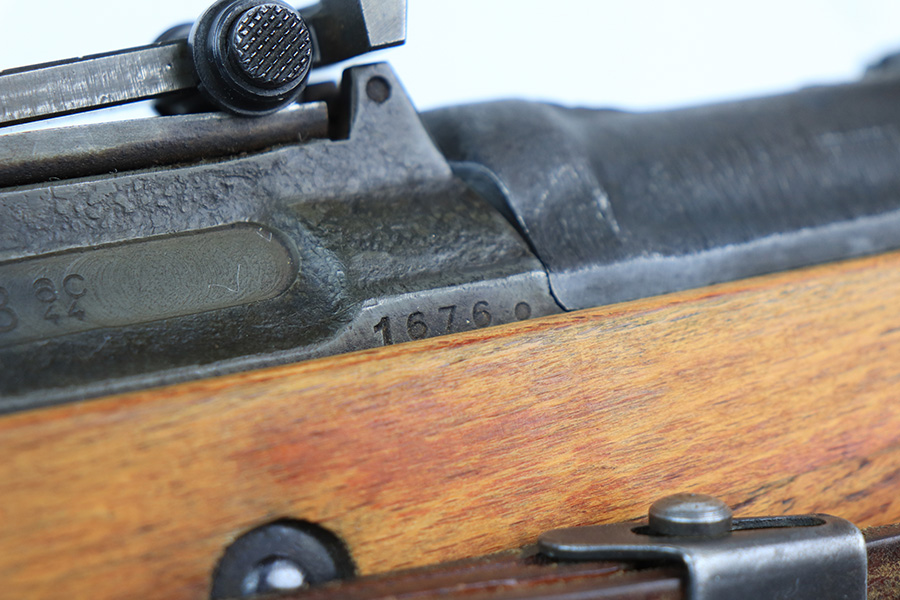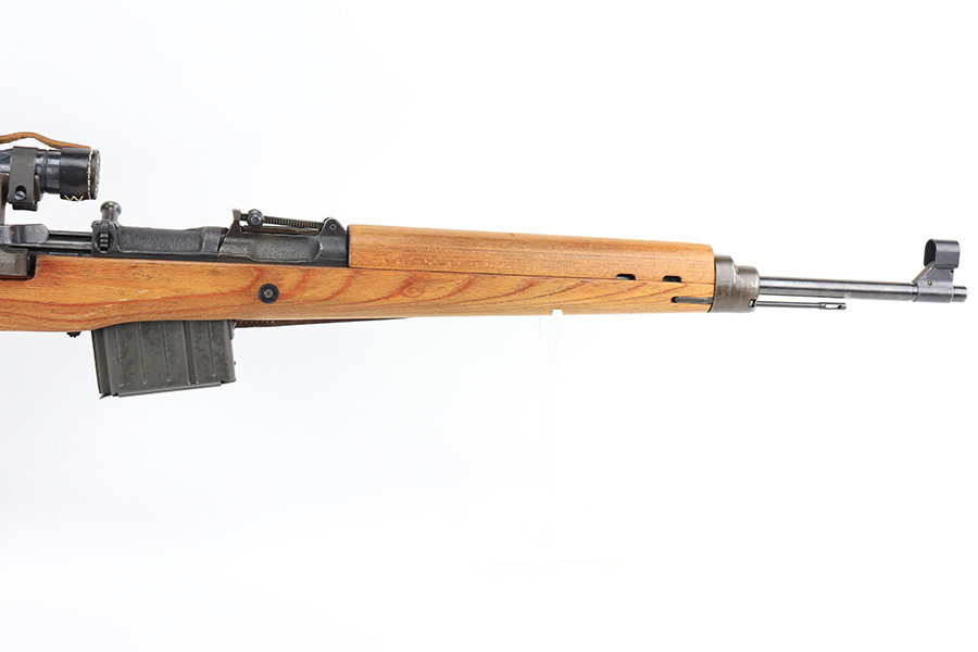 2/23/22 – This is a terrific Walther G43 sniper rifle, marked ac 44 on the receiver. All numbered parts are matching, though the stock was lightly sanded and serial is not visible anymore. Excellent finish on metal parts with minimal thinning. The rifle is all original and correct, with multiple proper waffen proofs on the stock, receiver and scope mount. The stock waffenamts are also faint though due to sanding. Rifle has proper cleaning rod and site hood present, spare firing pin and an original sling. Original magazine is K43 marked with maker ‘gcb’ but appears refinished. The mount has Walther WaA359 proofs. Scope is WW2 original, with crystal clear optics. It’s a rare Luftwaffe example with large ‘L’ on the side. Marked Gw ZF4, then ddx. Excellent bore.