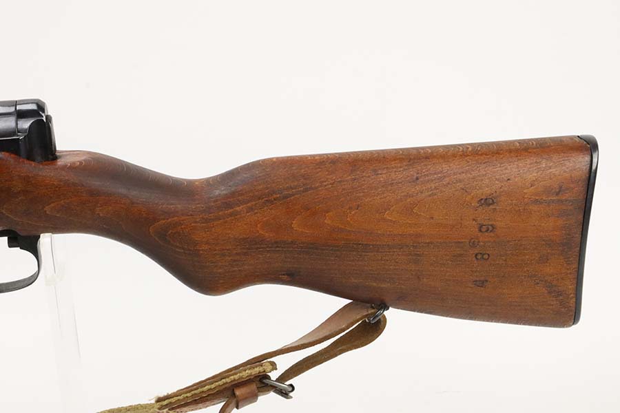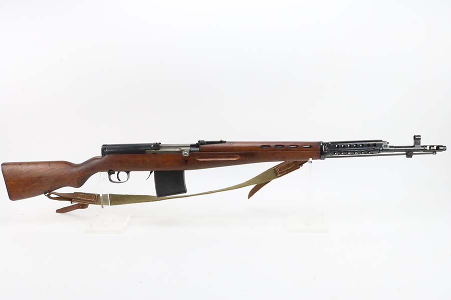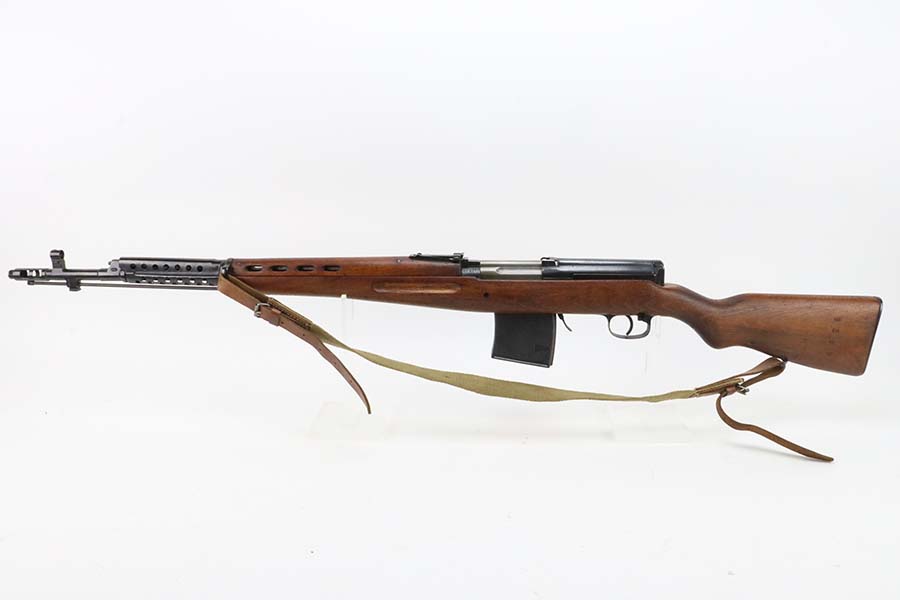 3/6/24 – This is a scarce, non-import example of a Russian SVT-40 rifle that was made in 1943 at the Tula factory. Matching numbered on stock, trigger guard, receiver and bolt handle. Only the magazine is mismatched. Excellent bluing throughout. Stock is in very good condition aside from a surface crack near the wrist. Comes with sling and cleaning rod. Bore has strong rifling but some frost and freckling in the grooves.