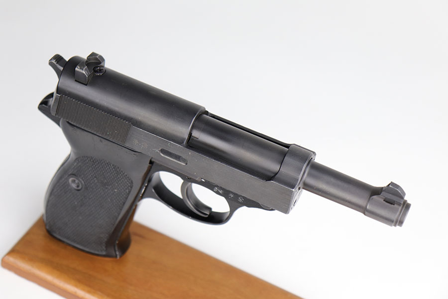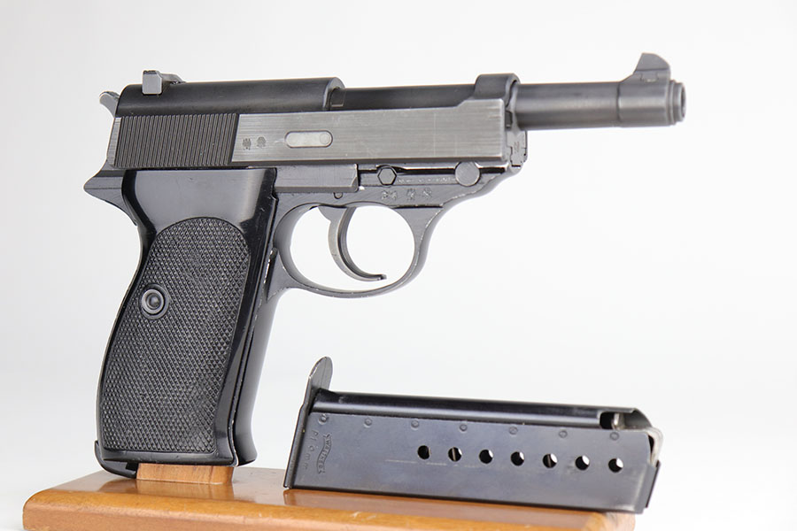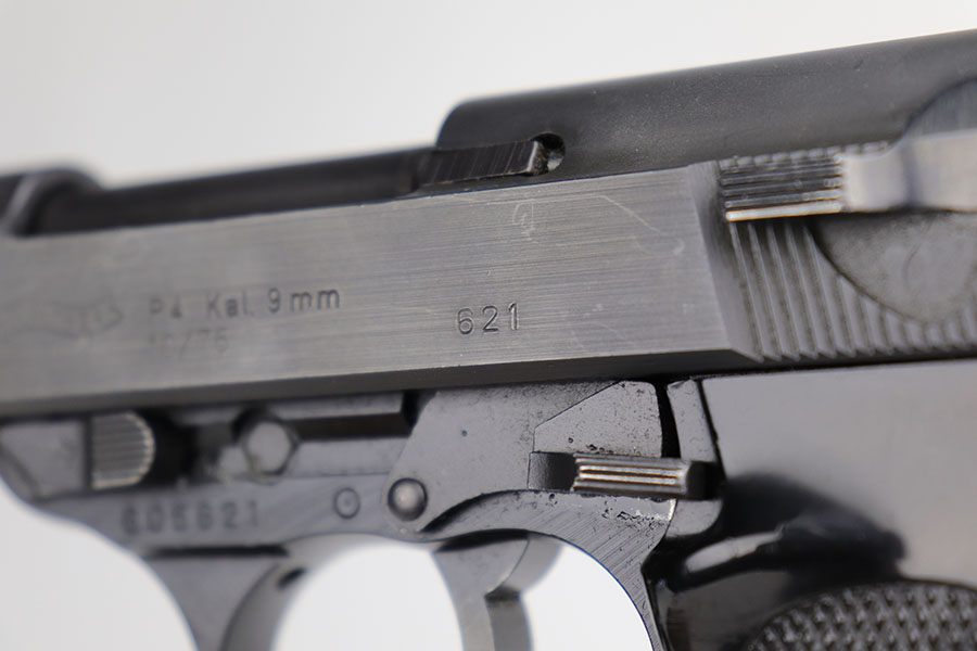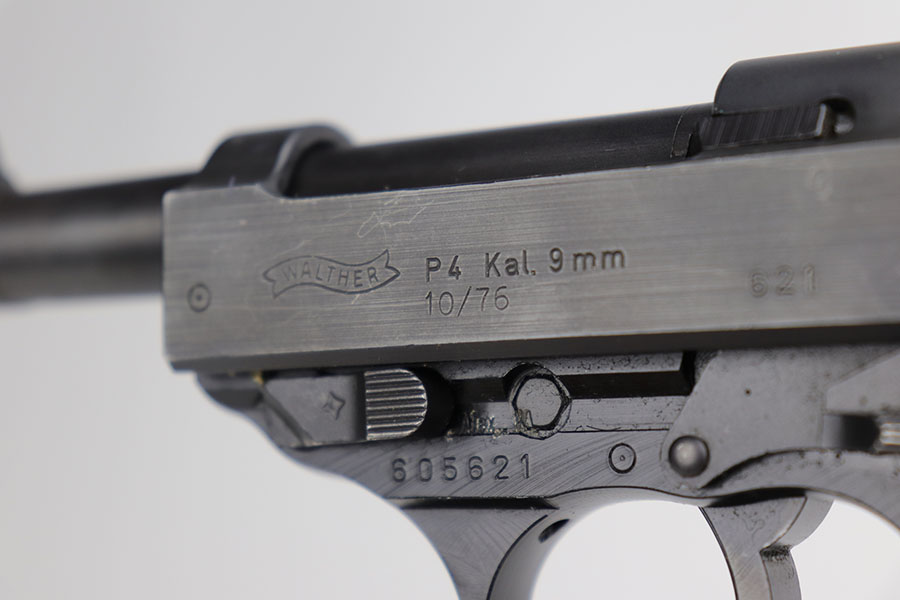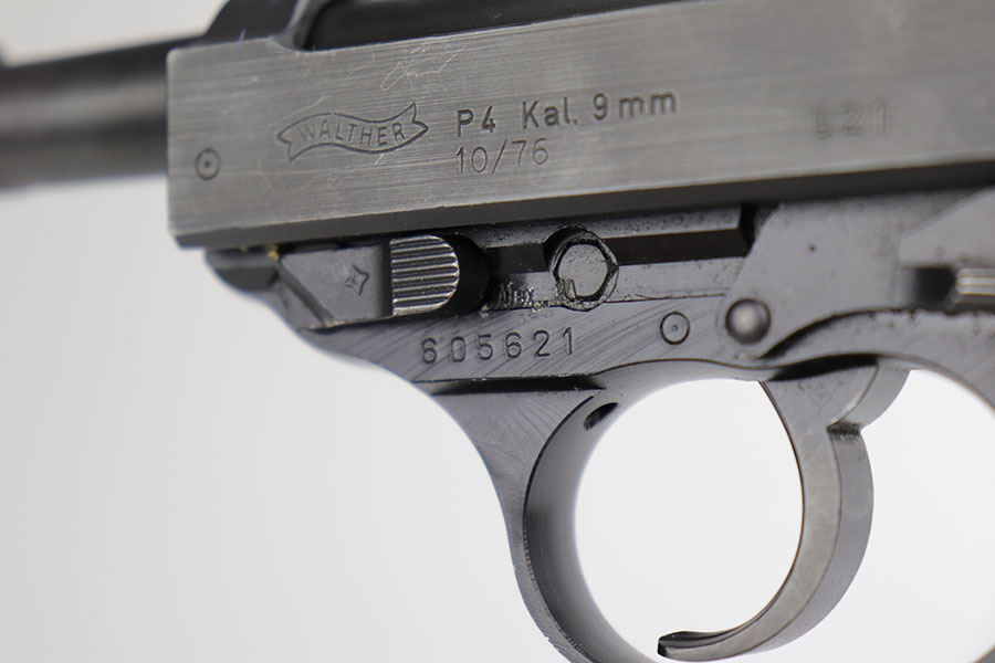 9/28/20 – This is a scarce Walther P4 that was manufactured in 1976 for the police. There were only 7,500 P4’s produced. The pistol is in almost mint, original condition with very little wear to speak of. . There is a small import mark on the left side of the frame, and the right side is marked ‘Made in Germany’. The milled out spot on the slide was the BMI police marking that was removed.