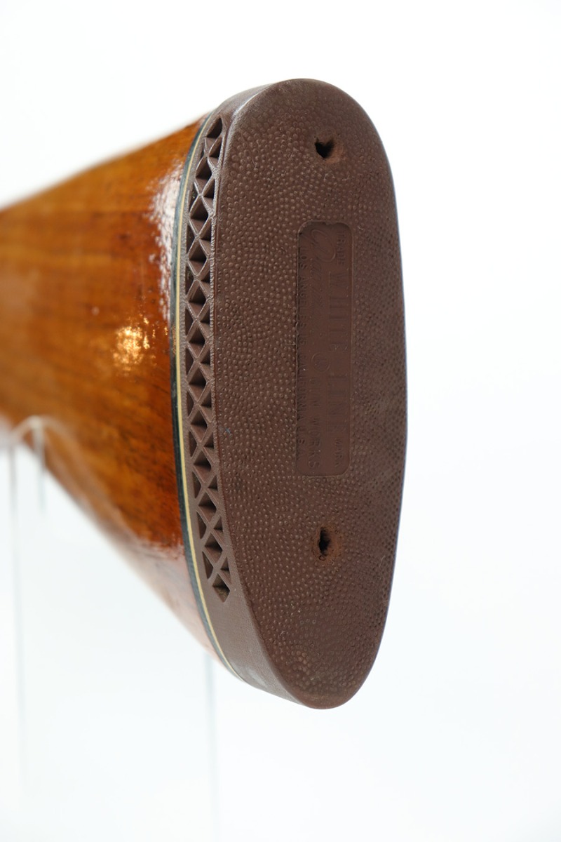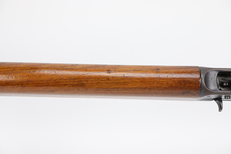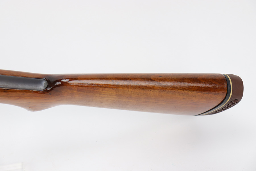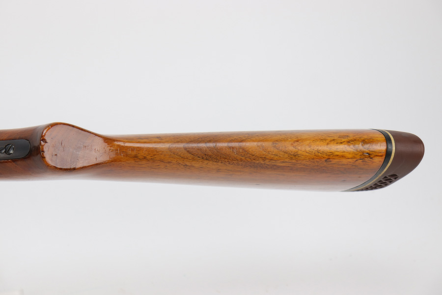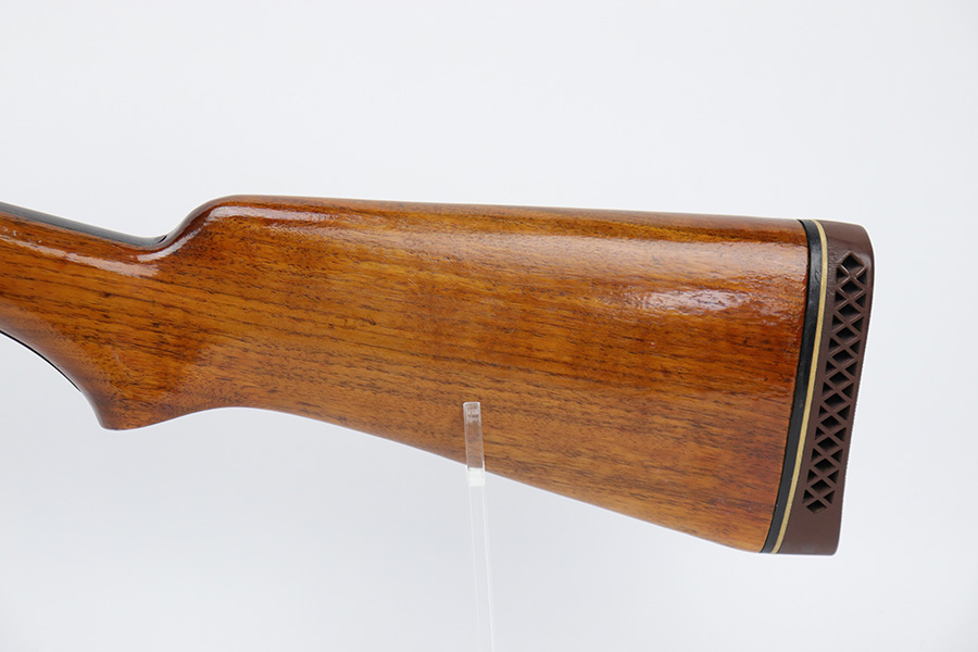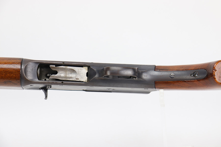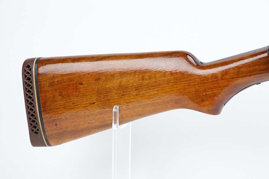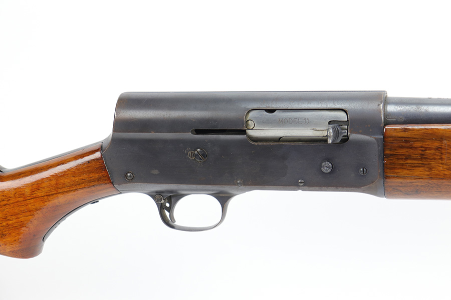 6/15/23 – This is a very nice example of a US Military issued Remington Model 11 riot shotgun. It has the proper military flaming bomb proofs and “US” property markings on the barrel and receiver. Extremely faint “FJA” inspection stamp on the left side of the butt stock, but the wood furniture has been lacquered and sanded, so it is very hard to see. The metal parts have retained about 90% of their original finish. There is not much actual finish loss, but there is general high edge wear, minor spotty wear and spotty oxidation on the left side of the receiver, and some areas of dark discoloration along the barrel. The wood furniture is generally nice, but there are two repaired cracks on the underside of the foregrip. Replaced butt plate. Near-mint bore.