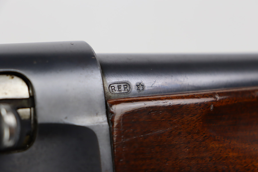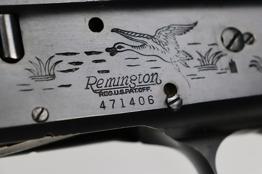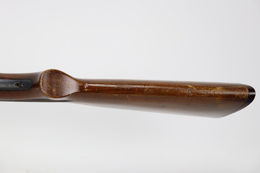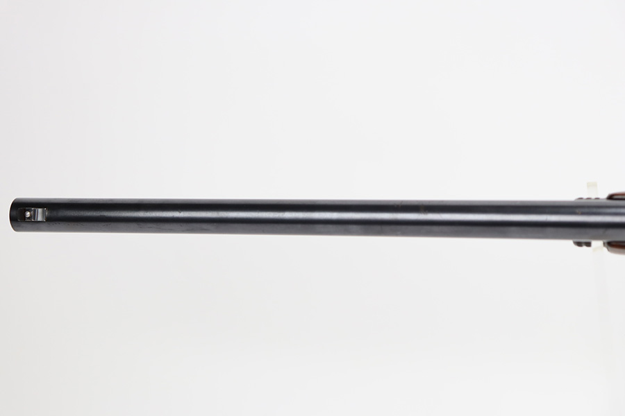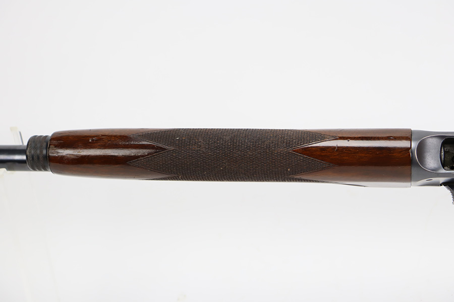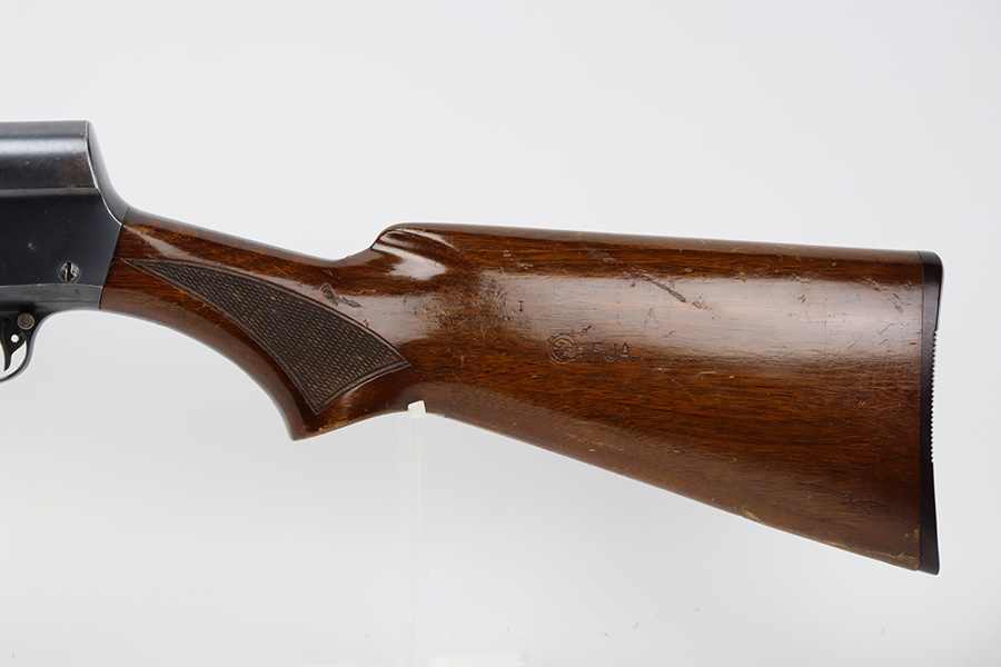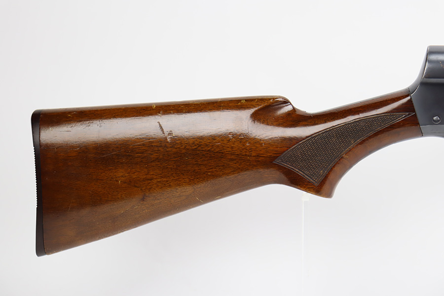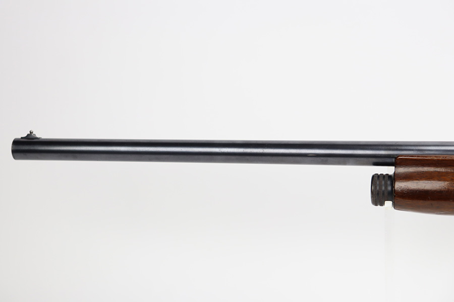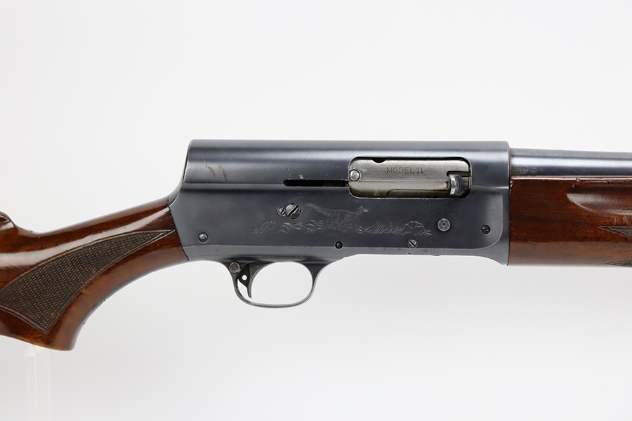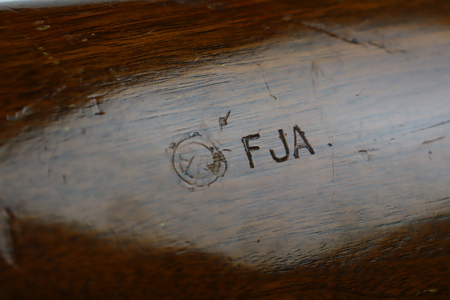 10/2/23 – This is a very nice example of a US Military issued Remington Model 11 riot shotgun. It has the proper military flaming bomb proofs and “US” property markings on the barrel and receiver. There is also a clear “FJA” inspection stamp and cross-canon cartouche on the left side of the butt stock. The metal parts have retained about 96% of their original finish. While there is very little actual finish loss, there is noticeable scratching on the receiver and on the barrel where it meets the receiver. Minor high edge wear in general. The wood is nice overall, but there are tiny dings and scratches throughout. Mint bore.