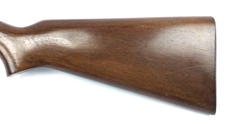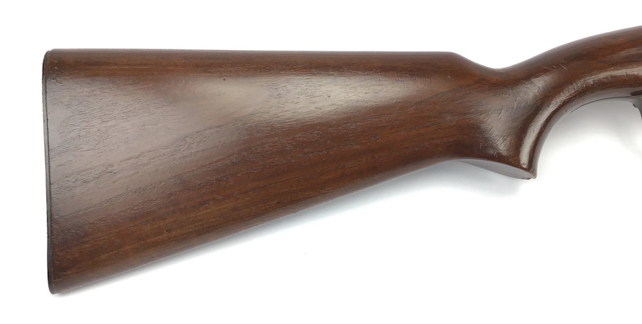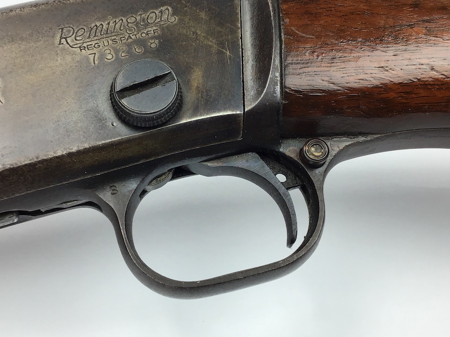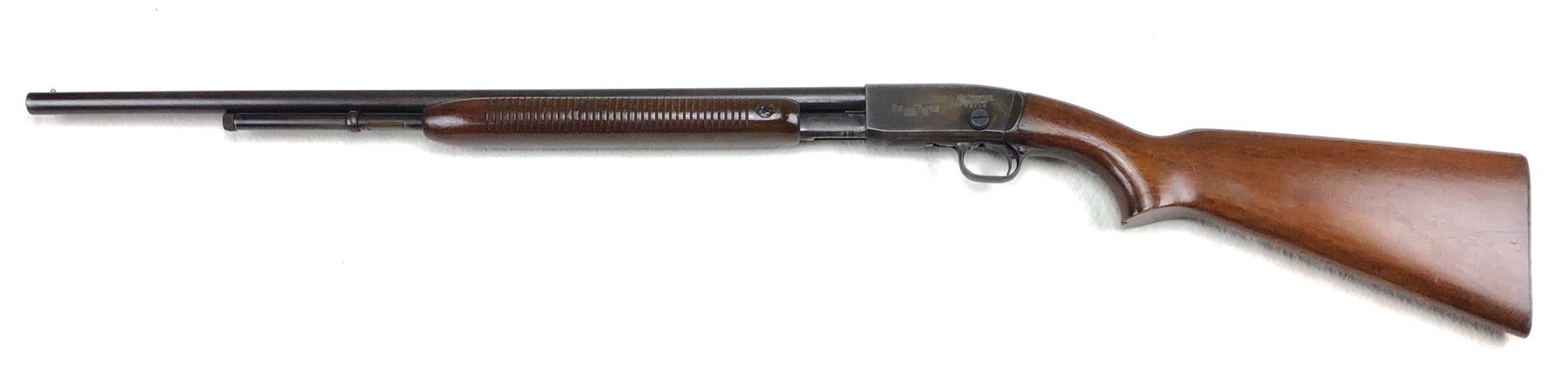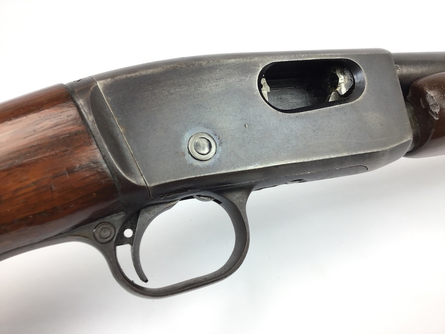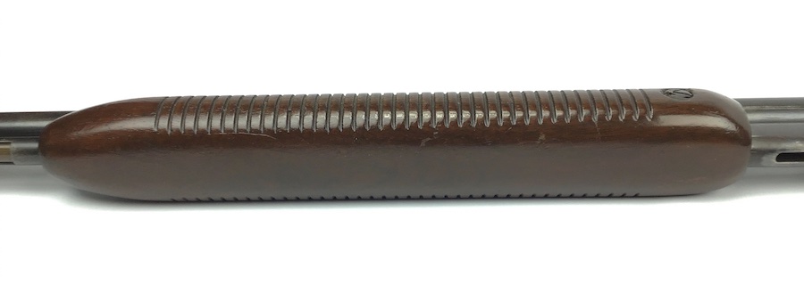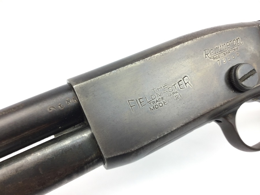 8/8/20 – This unique Remington model was made for trap shooting and was sometimes sold in kits with the “Moskeeto” clay bird thrower. There were approximately 3000 of this model manufactured. This rifle takes .22 cal shot loads and has the rare Routledge smooth bore barrel. This package includes the gun, clay thrower and approximately 50 rounds of .22 cal shot shells. Mechanically sound and completely functional. This beautiful piece has about 85 – 90% original bluing with hardwood stock an pump handle. Believed to be all original. The left side of the barrel is stamped “ROUTLEDGE BORE FOR .22 LONG RIFLE SHOT CARTRIDGE”, and the Remington Field Master markings on the left side of the receiver. Checkered Remington butt plate. Excellent bore.
