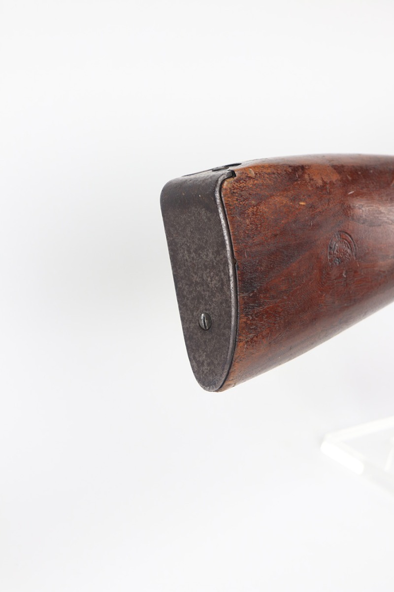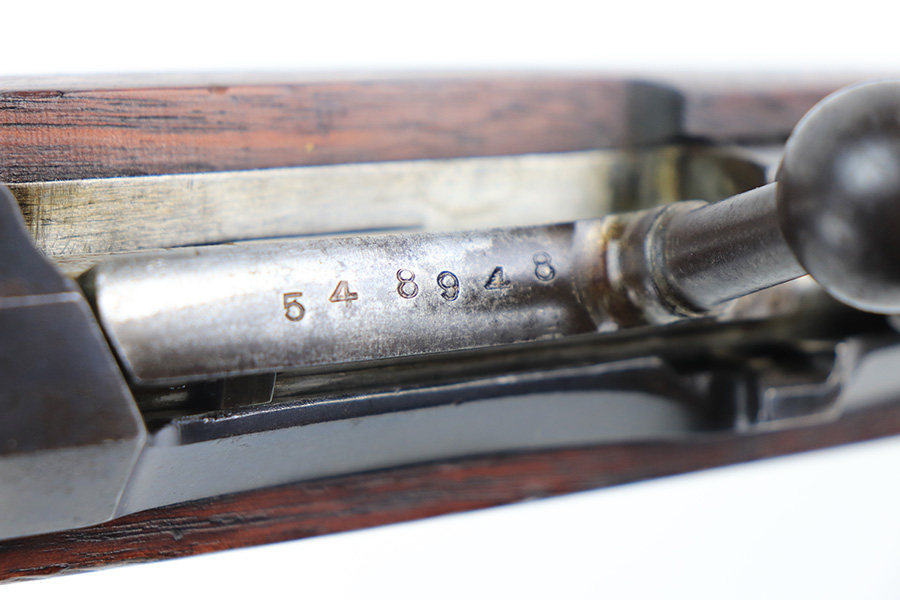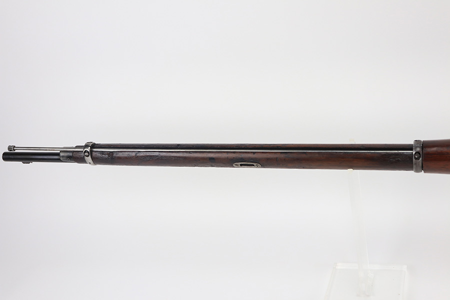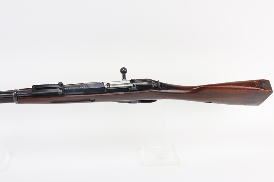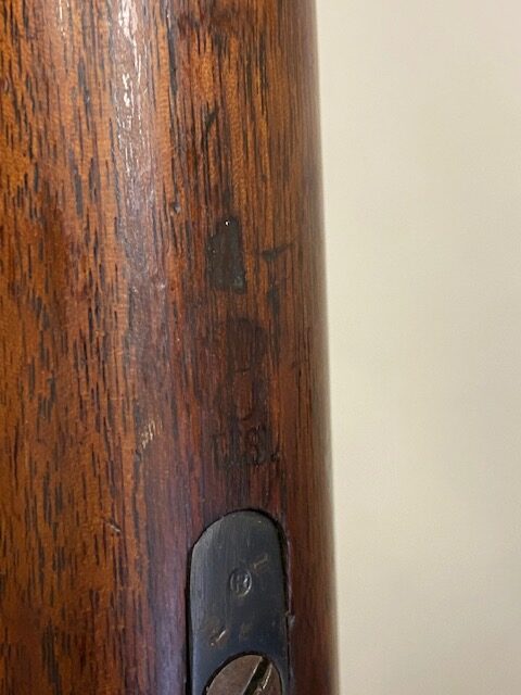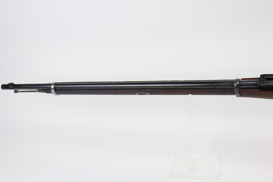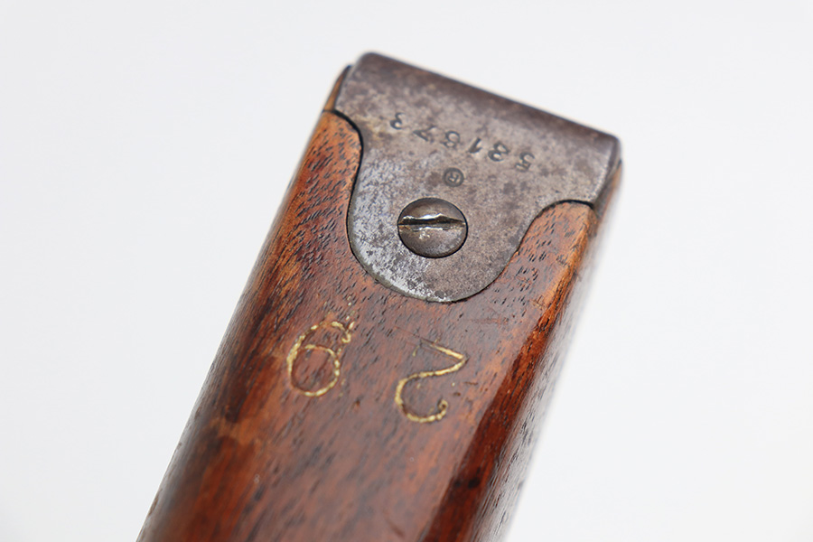 2/15/22 – This is a scarce Remington Armory Mosin-Nagant M1891 pattern rifle from 1917. During World War I, Russia could not keep up with the military demand for rifles, so they order over a million M1891 Mosin-Nagants from Remington Armory with matching bayonets. Remington had produced just under eight hundred and fifty thousand guns between 1915 and 1917 with only a little more than one hundred and thirty thousand having reached Russia by January of that year and of the seven hundred seventy thousand guns Westinghouse made, a quarter-million of those had made it to its destination by the time the Tsar’s government was overthrown the next month. A period of chaos broke out and by the time the Bolsheviks took charge, they defaulted on their contract to Remington and Westinghouse, claiming the guns were substandard, which was hardly the case. The U.S. Government then stepped in and bought the remaining inventory, and this example bears the original (but faint) flaming bomb and U.S. marking on the stock. In 1918, the U.S. Army designated the M1891s as the Russian Three-Line Rifle and they were marked with that bomb and eagle insignia. This particular example is original and has matching receiver, magazine, and buttplate. The bolt is correct for this model but is a mismatched example. Nice blued finish throughout, with a little freckling and oxidation along the top of the receiver. Stock is in good shape but was duffel cut many years ago, though the rear band holds it confidently in place. Fairly crisp Russian cartouche is still visible on the right side with the Romanof Eagle present. Bore has strong rifling but deep frost throughout and could use a thorough cleaning.