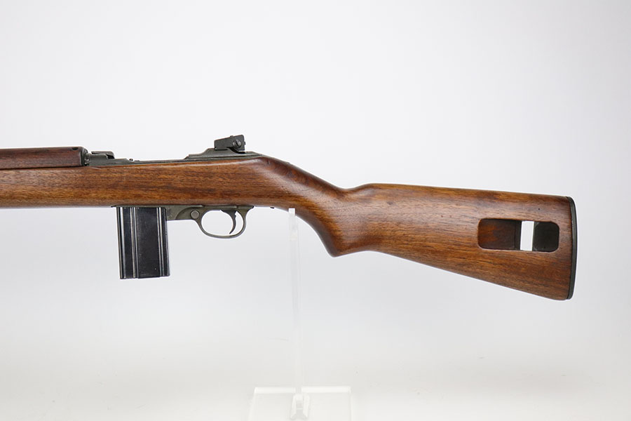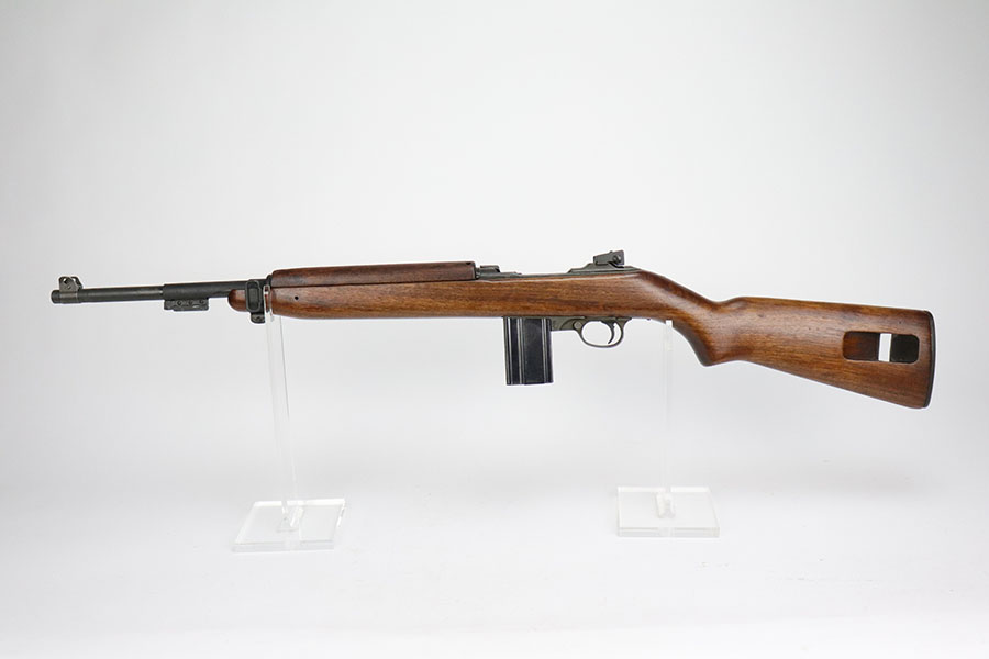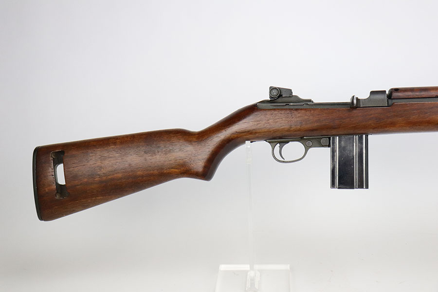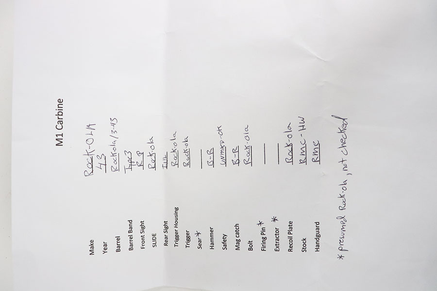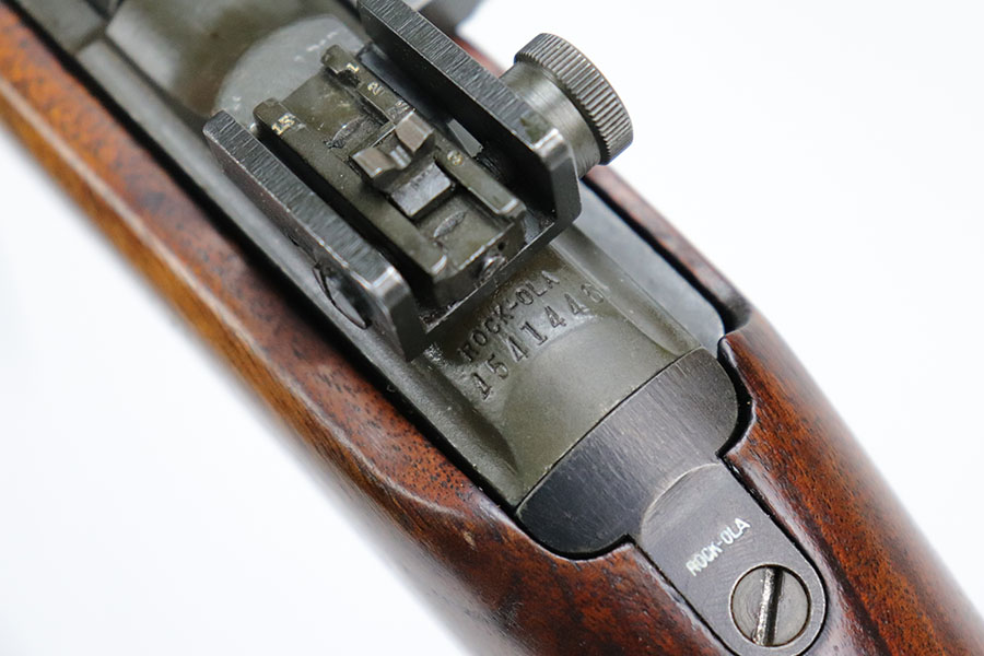 8/21/20 – This is a scarce M1 Carbine as produced in 1944 by Rock-Ola for the US military. Only 3.7 percent of total M1 Carbine production was done by Rock-Ola. A full parts list is included in the photos, but this one has Rock-Ola stock, receiver, and nearly all of the small parts. The barrel is Rock-Ola marked with date of 3-43. Adjustable rear sight and bayo lug added after the war most likely. The finish is very nice with some thinning on the barrel and top of receiver. Bore is excellent. Stock is also in great condition with no cracks or chips.
