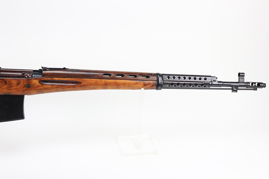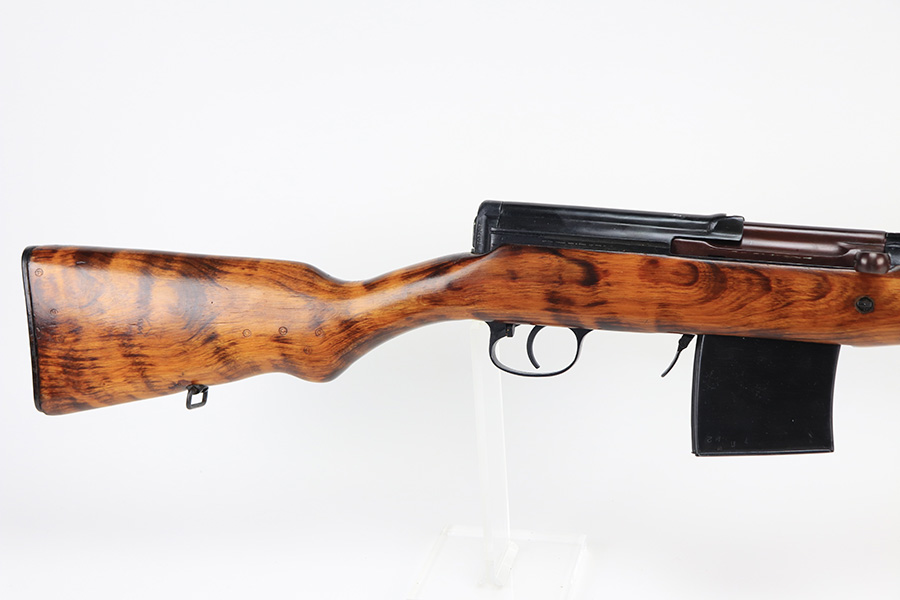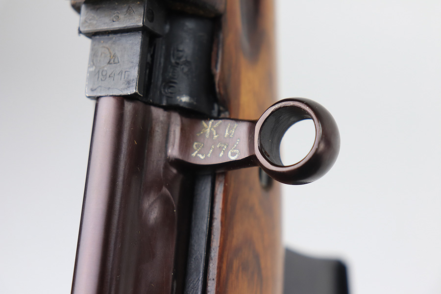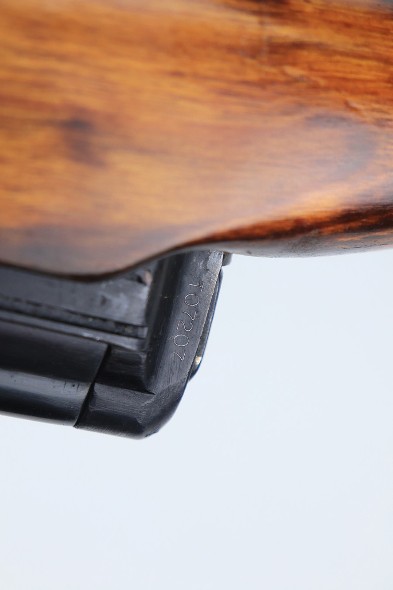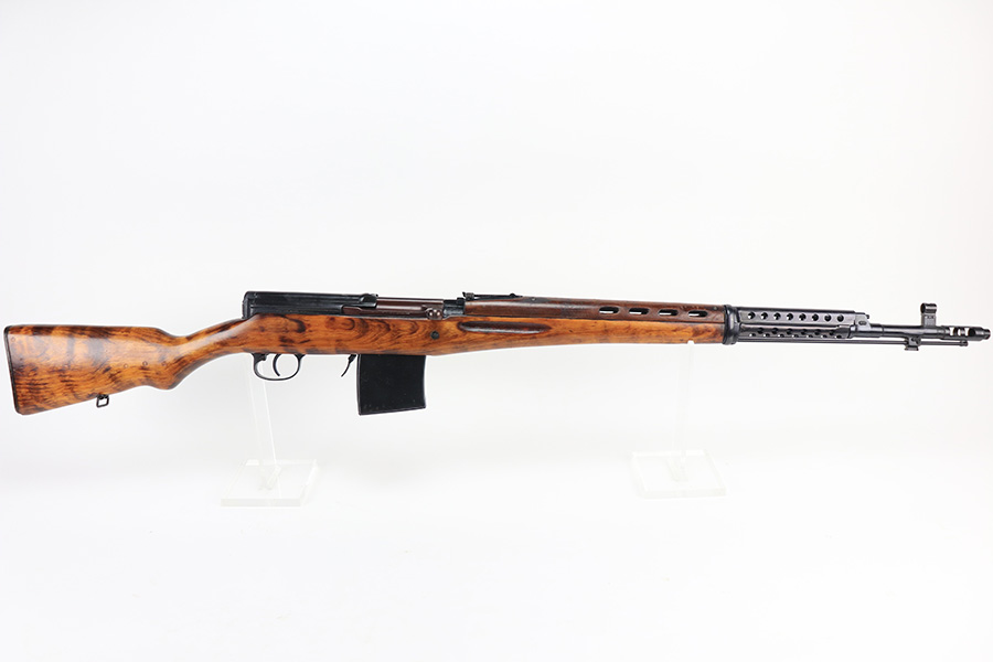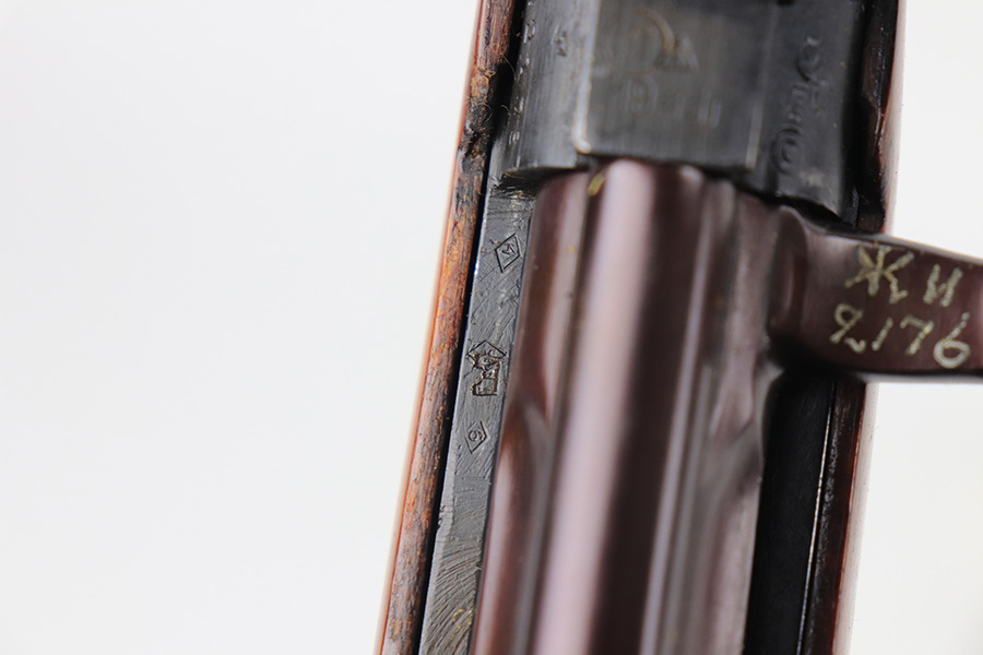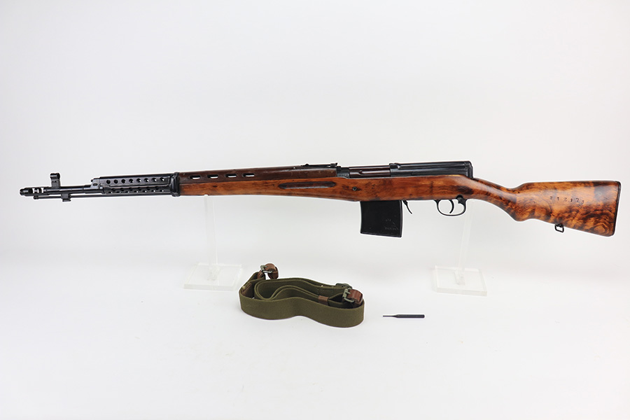 1/14/22 – This is a nice example of a scarce Russian SVT-40. Made in 1941 at the Izhevsk factory, it’s arsenal refurbished with etched serial on bolt handle but all the original serial numbers are present on the receiver, trigger guard and stock. Excellent condition throughout – no wear to the bluing of the refinish and a minty bore. A little bit of wear on the handguard but an otherwise excellent stock, with 1941 date and cartouche still visible on the right side. Small import mark on right side of receiver. Comes in the original importer shipping box and includes a canvas sling.