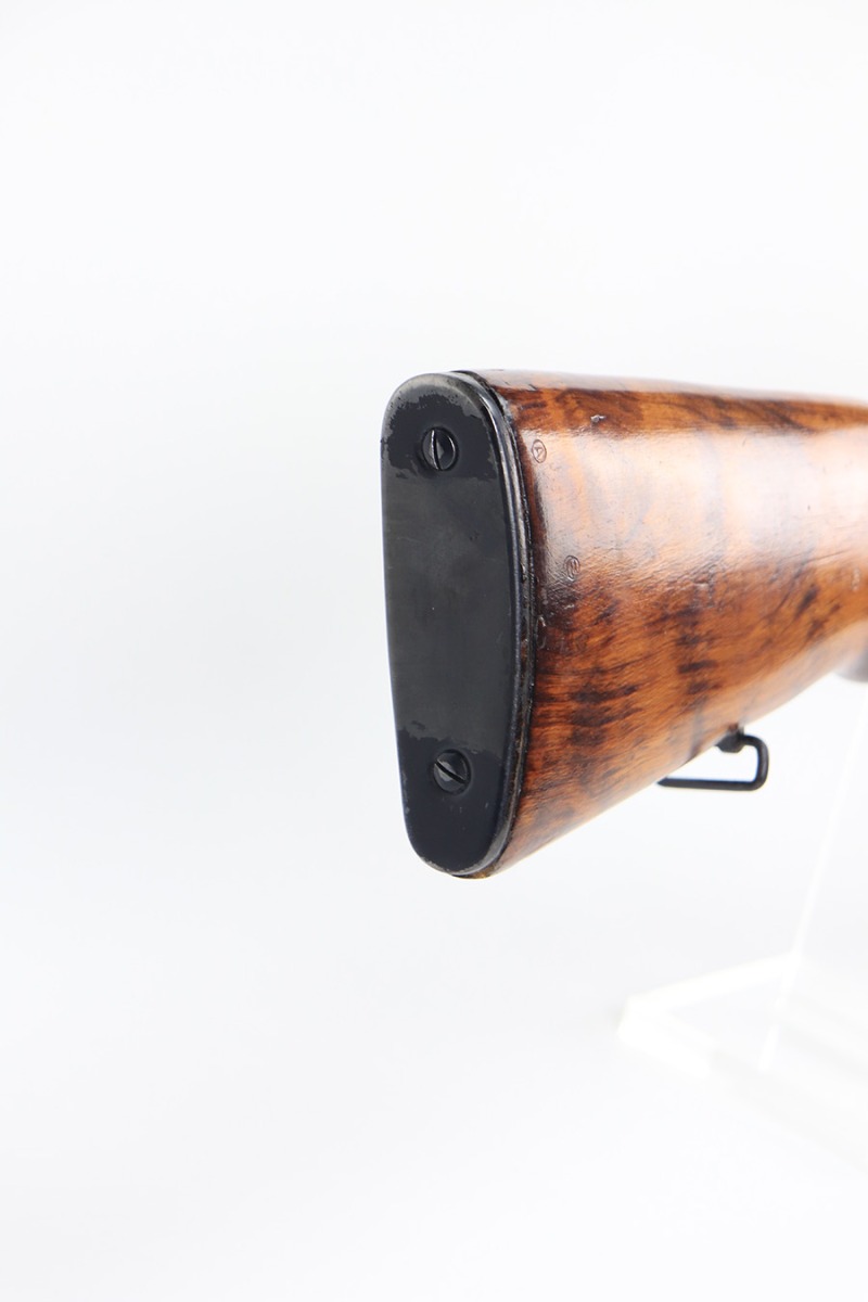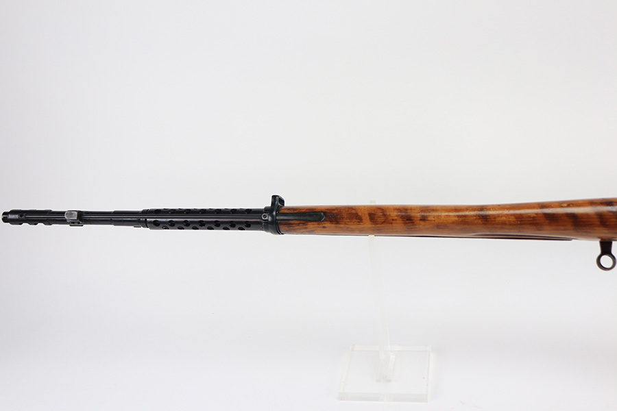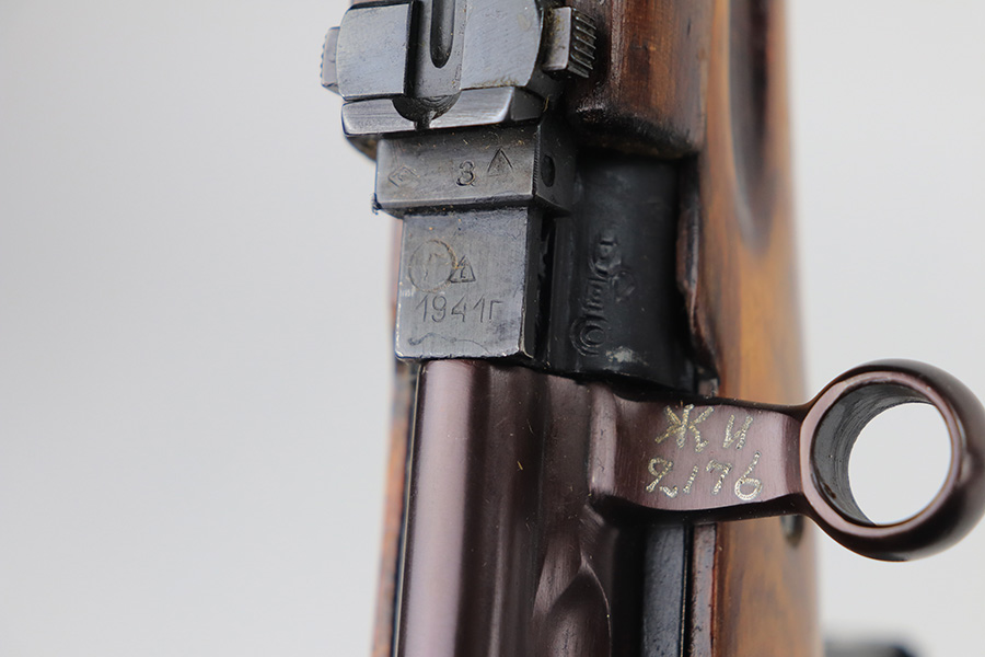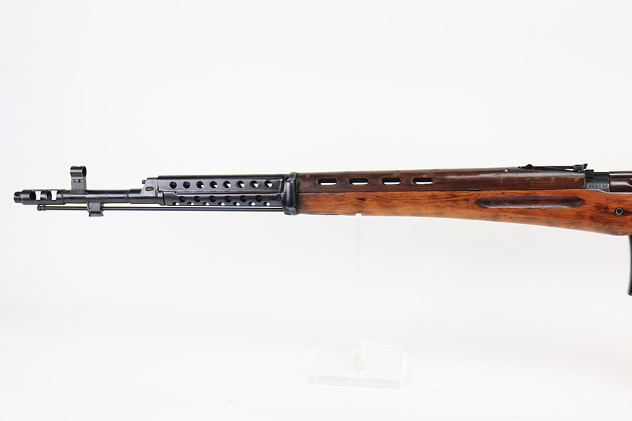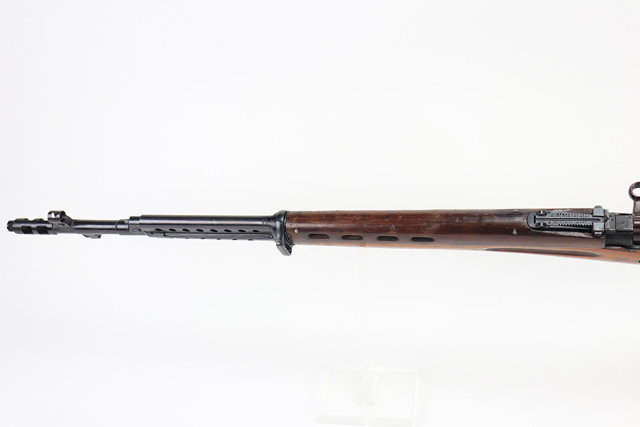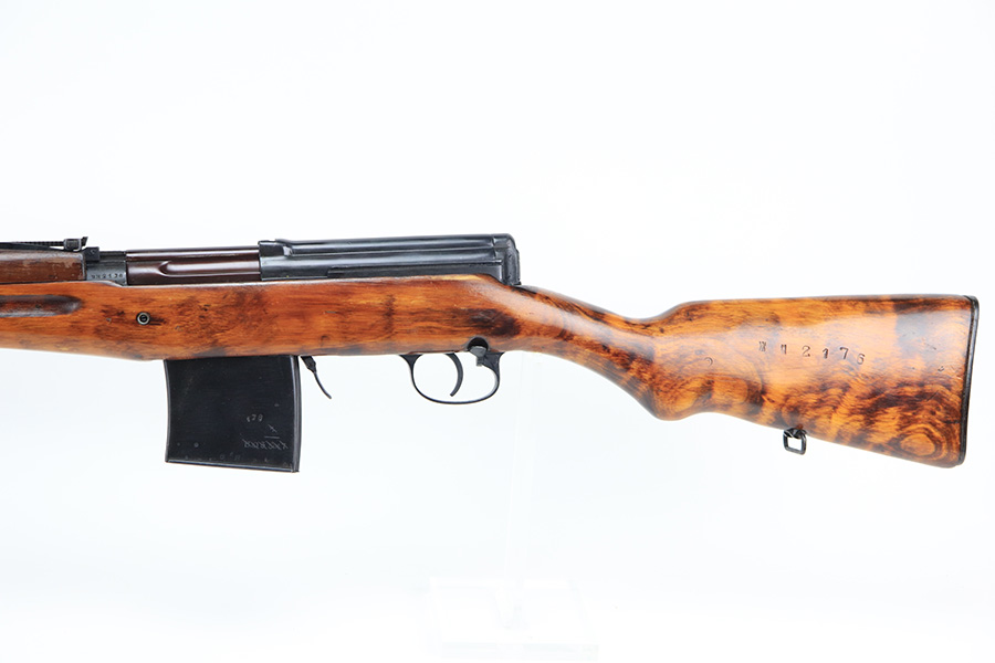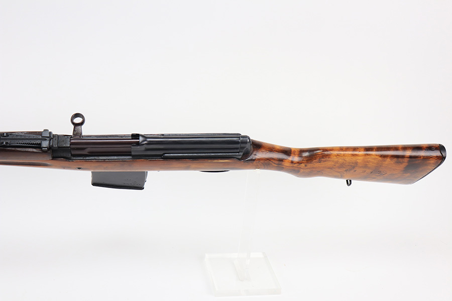 1/14/22 – This is a nice example of a scarce Russian SVT-40. Made in 1941 at the Izhevsk factory, it’s arsenal refurbished with etched serial on bolt handle but all the original serial numbers are present on the receiver, trigger guard and stock. Excellent condition throughout – no wear to the bluing of the refinish and a minty bore. A little bit of wear on the handguard but an otherwise excellent stock, with 1941 date and cartouche still visible on the right side. Small import mark on right side of receiver. Comes in the original importer shipping box and includes a canvas sling.