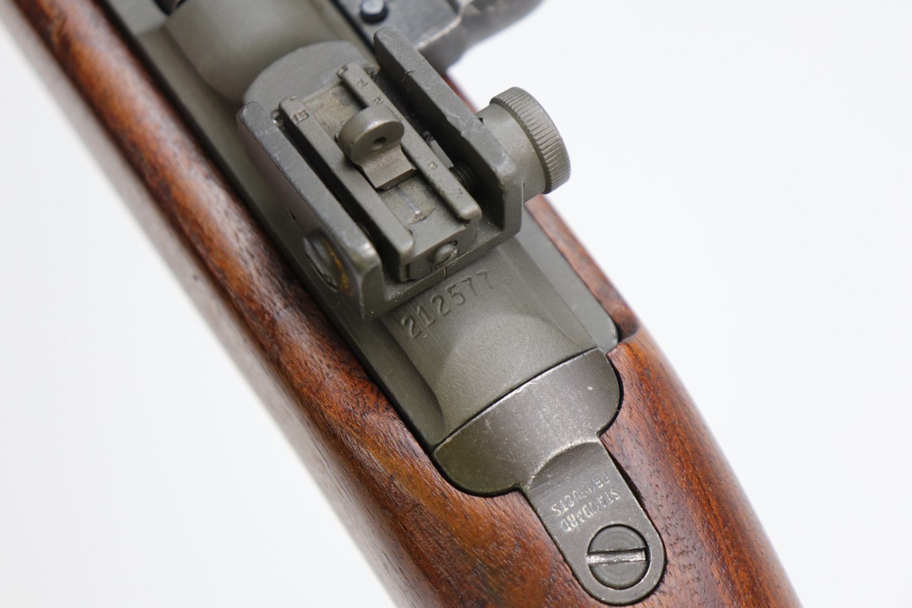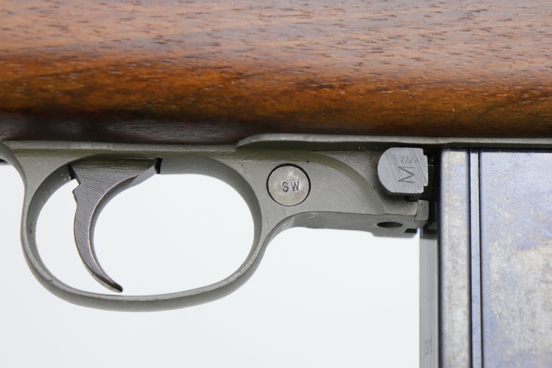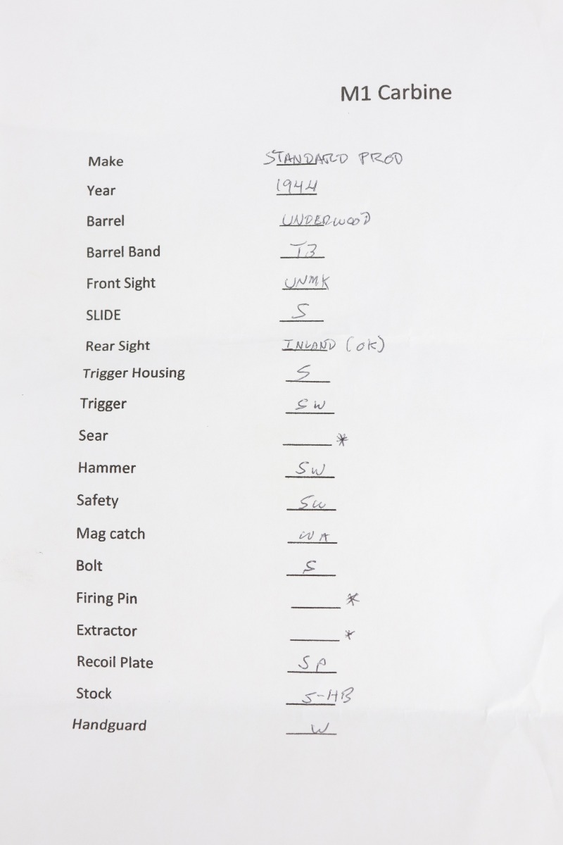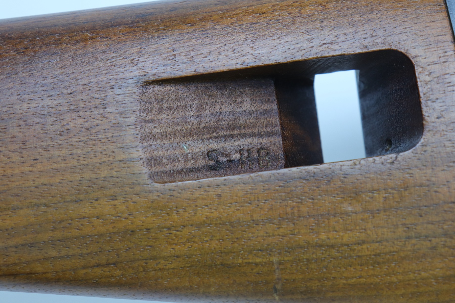 9/4/20 – This is a scarce Standard Products M1 Carbine, manufactured in 1944. Less than 250,000 of these guns were made, making up only about 4% of the total production during WW2. This particular gun was at least partially reworked for the Korean war as evidenced by the bayonet lug. A full parts list of all markings is included in the listing. Overall, the gun is in excellent condition. The appearance of the receiver leads us to believe it may have been touched up but the bolt is blued. The stock is excellent, just a few minor dings. It is smooth and may have been lightly sanded at some point. It is marked “W” on the grip and “S-HB” in the sling well. The bore is minty. Comes with one excellent magazine.