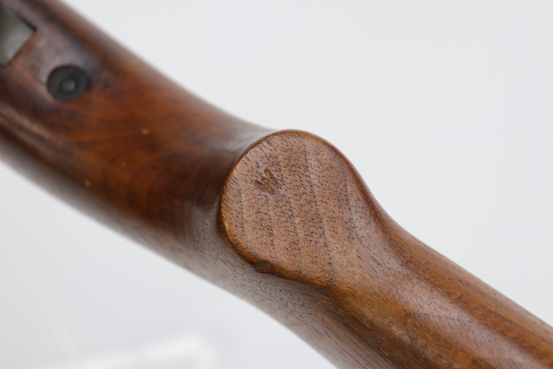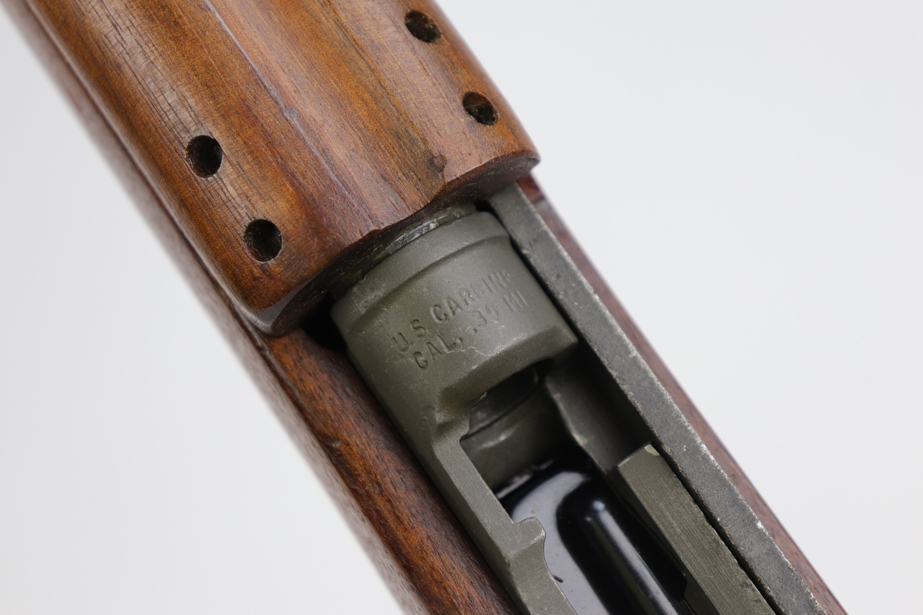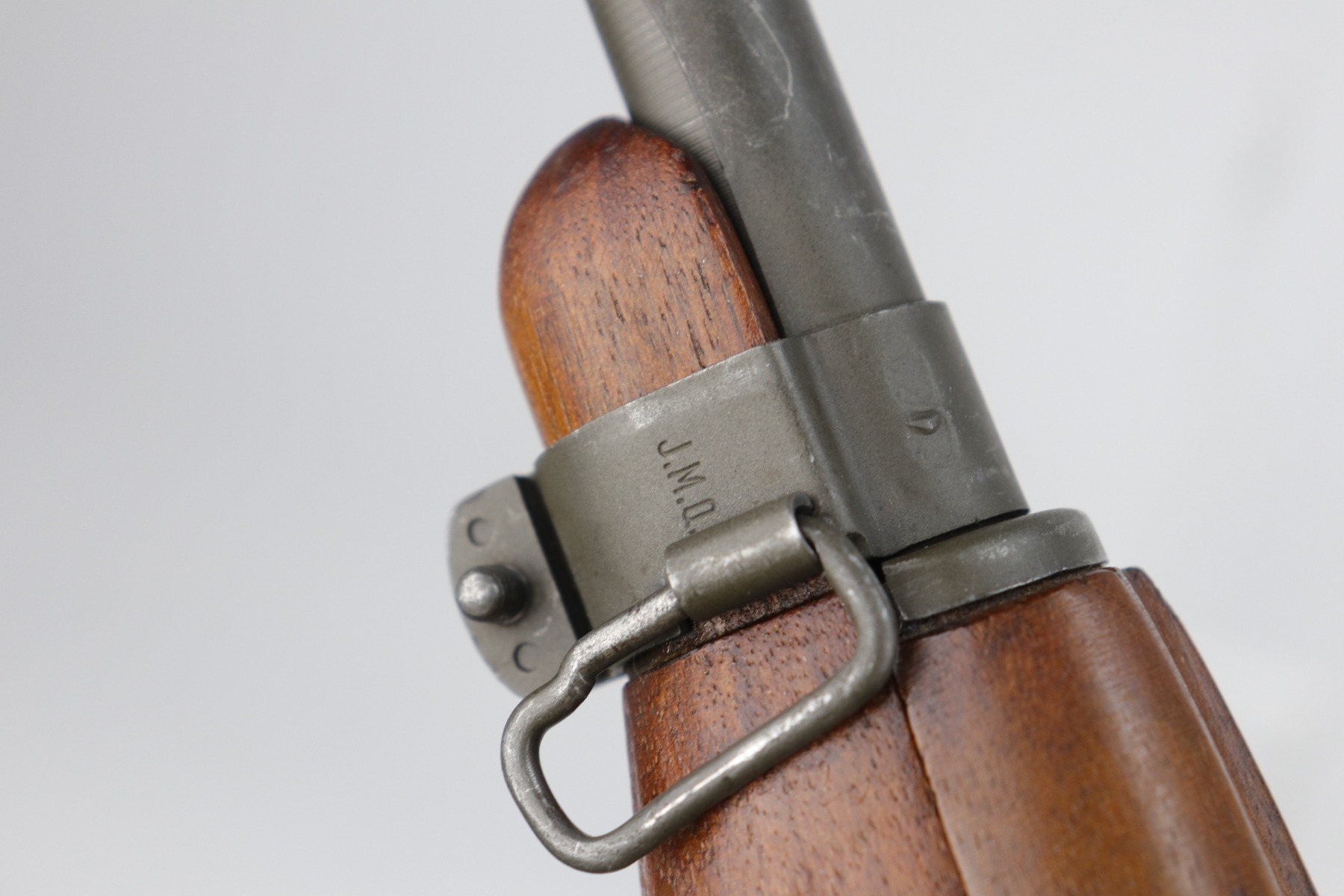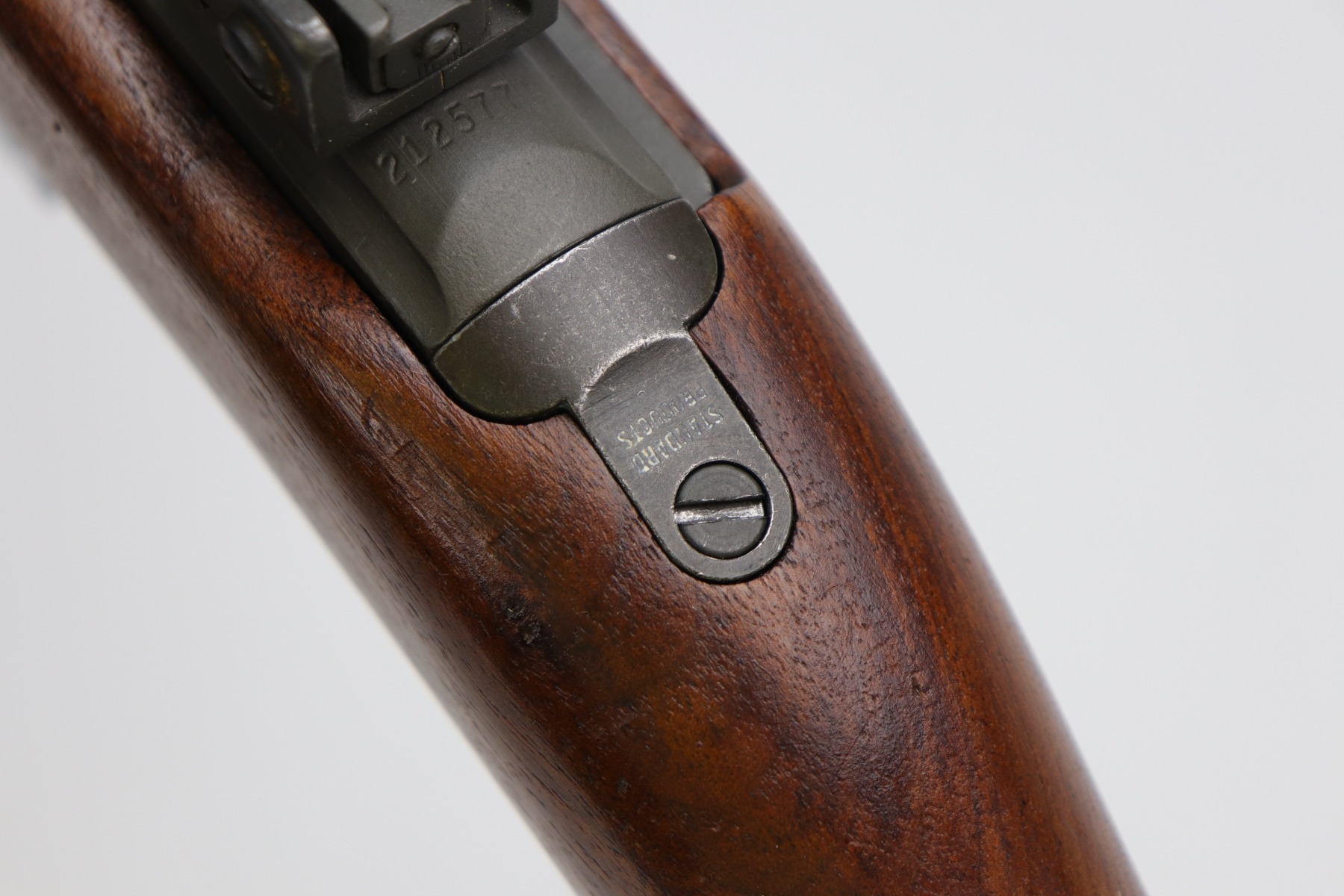 9/4/20 – This is a scarce Standard Products M1 Carbine, manufactured in 1944. Less than 250,000 of these guns were made, making up only about 4% of the total production during WW2. This particular gun was at least partially reworked for the Korean war as evidenced by the bayonet lug. A full parts list of all markings is included in the listing. Overall, the gun is in excellent condition. The appearance of the receiver leads us to believe it may have been touched up but the bolt is blued. The stock is excellent, just a few minor dings. It is smooth and may have been lightly sanded at some point. It is marked “W” on the grip and “S-HB” in the sling well. The bore is minty. Comes with one excellent magazine.