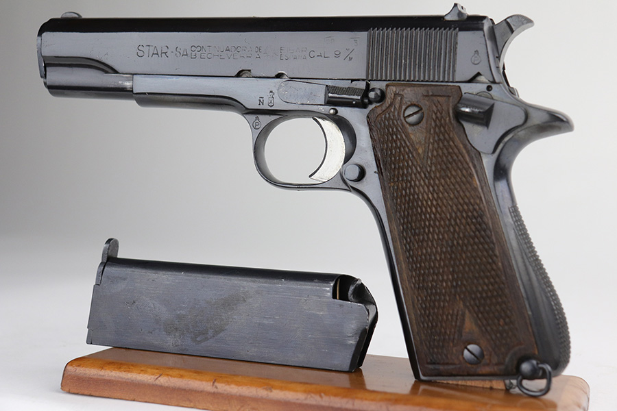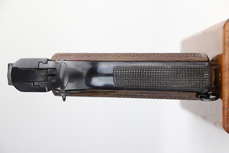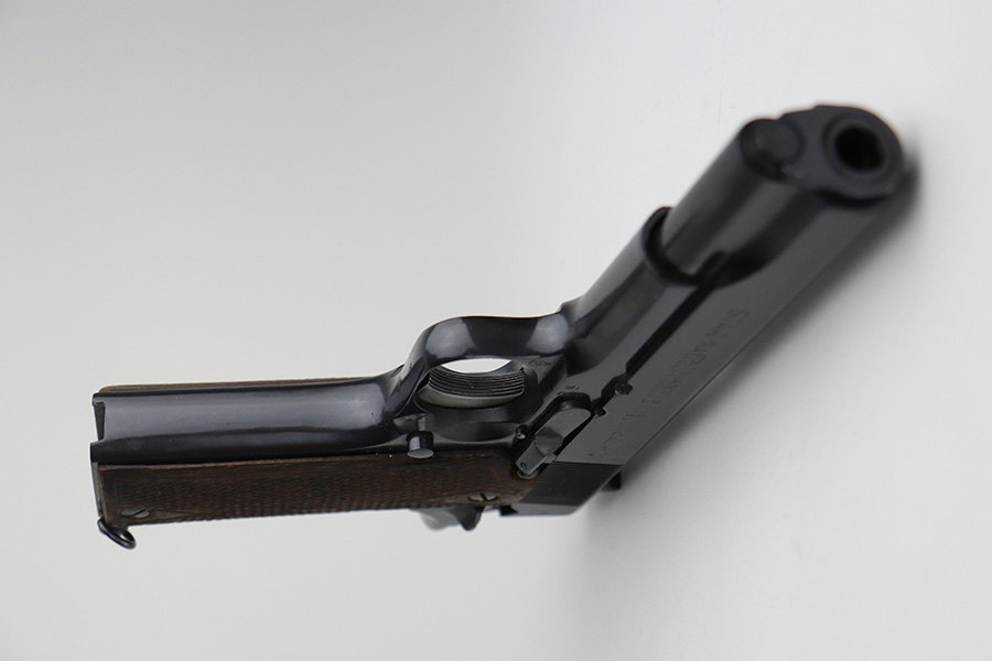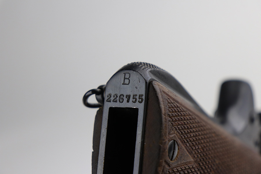 8/25/21 – This is a rare Star Model B pistol that was part of a small contract order by the Bulgarian government. There were three batches of Bulgarian shipments and this one was part of the first batch. The gun was made in 1943, and is in excellent condition though presumably arsenal refinished. Original grips with minor handling wear. Minty bore. Original Star B magazine. Import mark on right side of frame.