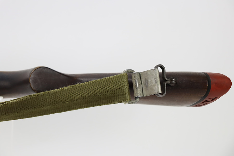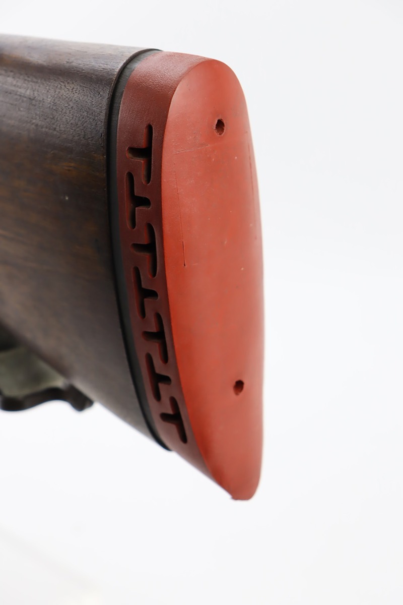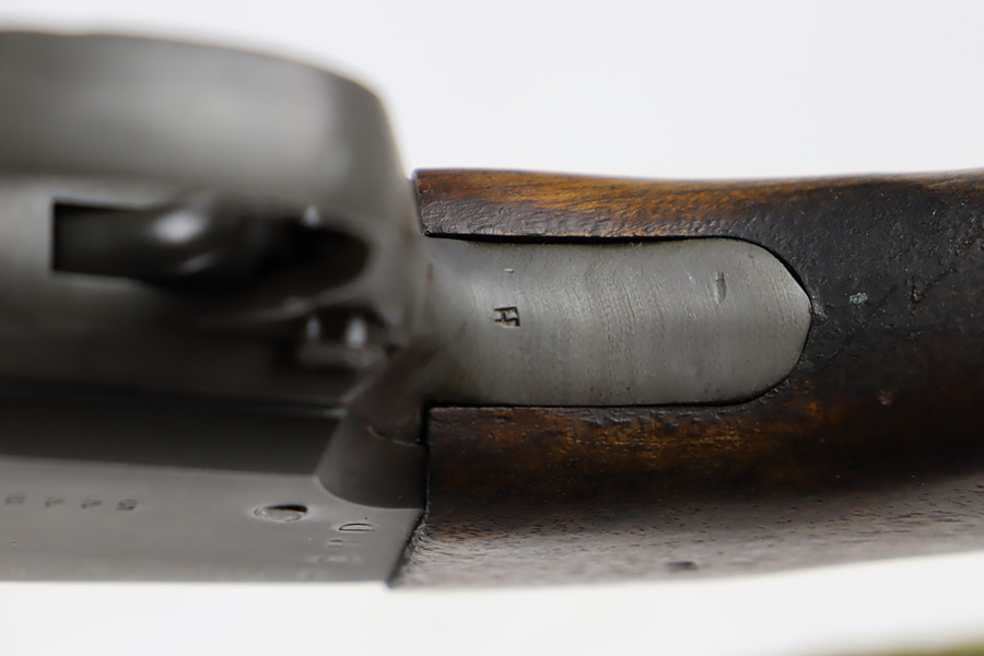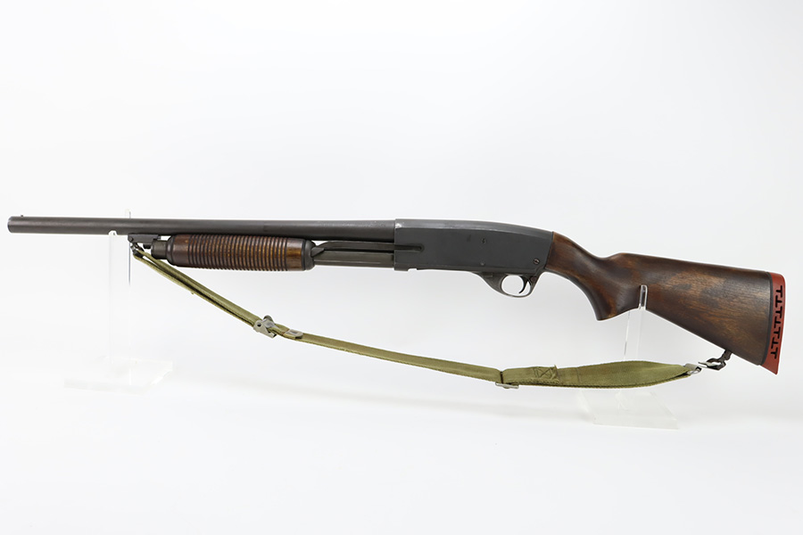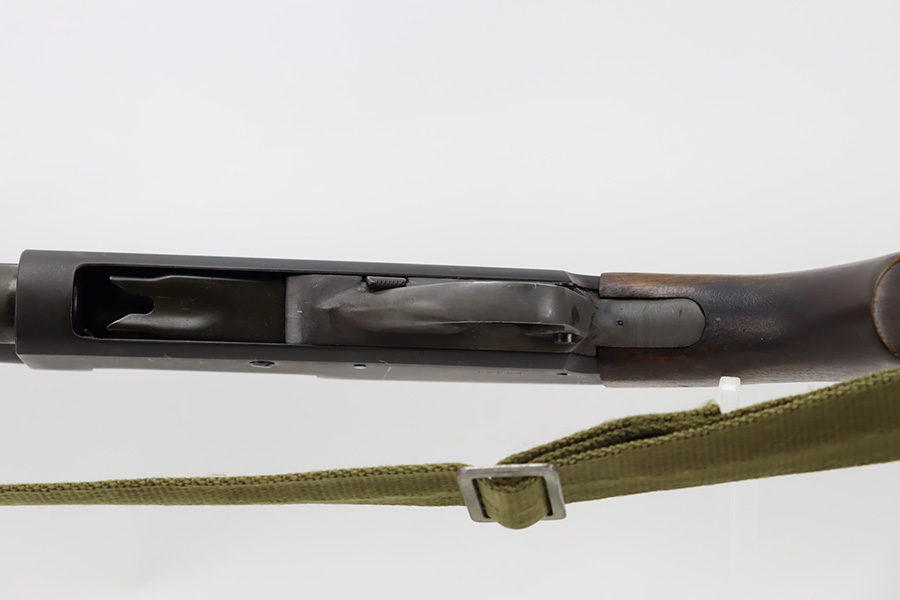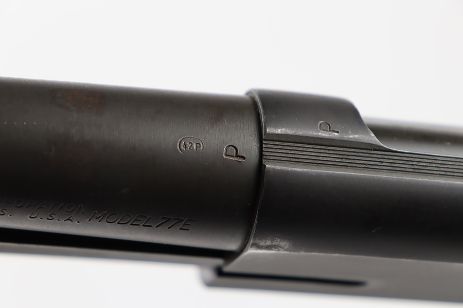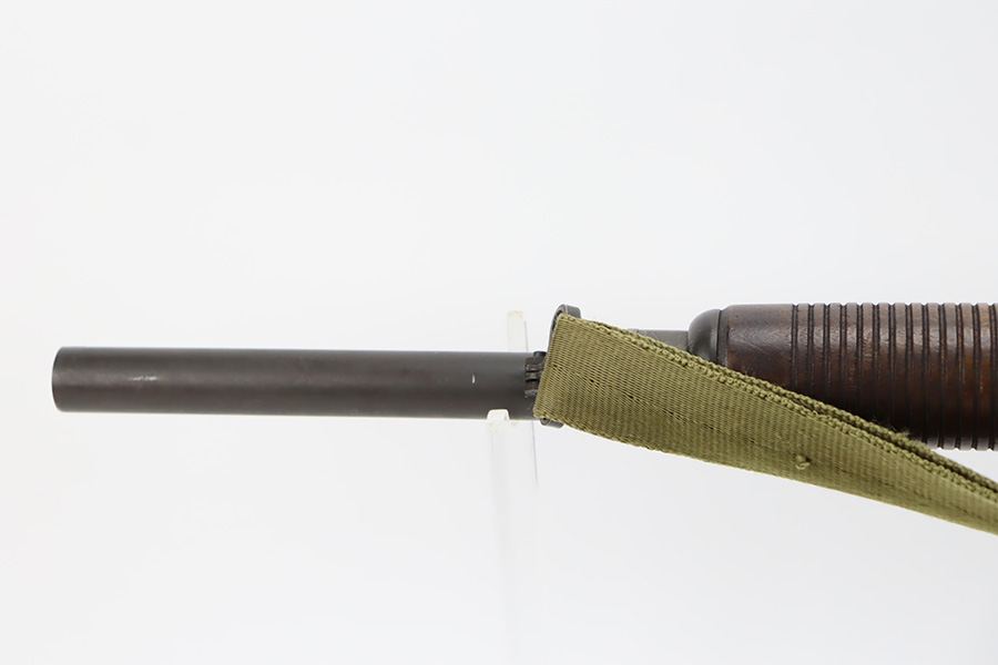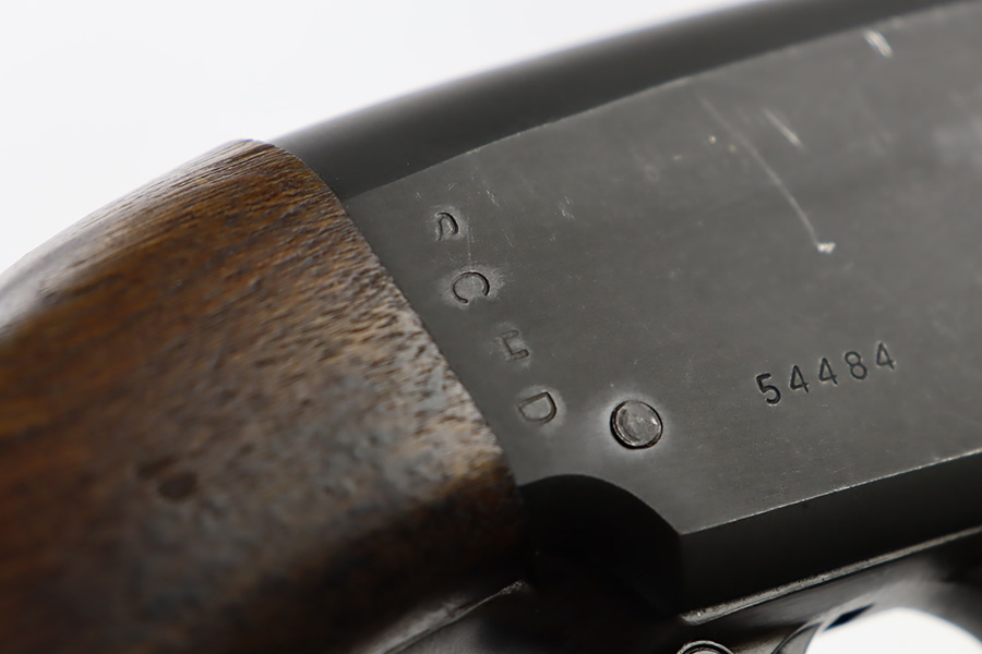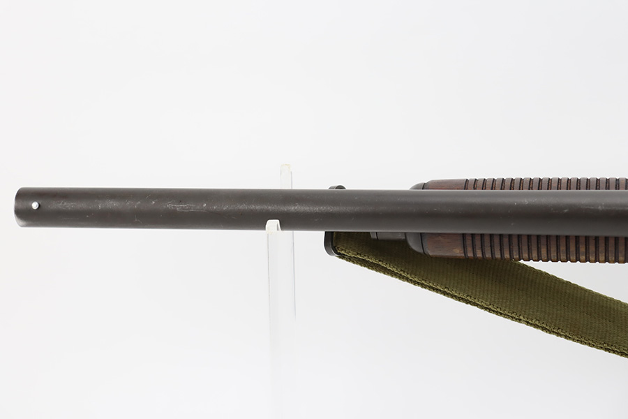 11/6/23 – This is a scarce example of a U.S. marked Stevens Savage Model 77E riot shotung, manufactured about 1963-1964. Beginning in 1963, the U.S. government purchased a total of 69,097 Model 77E riot shotguns from the Savage Arms Corporation for issue to the South Vietnamese Army; however, they were also widely used by U.S. Army and Marine units in Vietnam. Records indicate that 65,724 of the 69,097 Model 77E shotguns purchased under government contract were issued to the Republic of Vietnam or other allied forces. As a result, very few Model 77E shotguns returned from Vietnam, with estimates at only a few thousand. They have a shorter stock than other U.S. military shotguns as they were modified to accommodate South Vietnamese soldiers. They were also the first U.S. combat shotgun equipped with a rubber recoil pad. Military models are parkerized with sling swivels and wooden stocks. The right side of the receiver is ‘U.S.’ marked, and ‘P’ proofs are present on barrel and receiver. There is minimal finish loss on the gun, but the left side of the receiver does have a pattern of wear or imprint. Of the few that did return from Vietnam, many ended up at police arsenals in the states. This one is marked ‘SCHP’ on the right side, indicating it ended up with the South Carolina Highway Patrol. Just a very uncommon gun with an interesting history. Action is smooth and bore is shiny with only minor frost. Stock has no major cracks or chips.